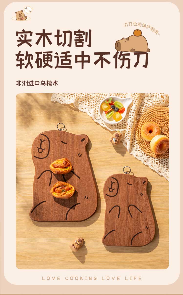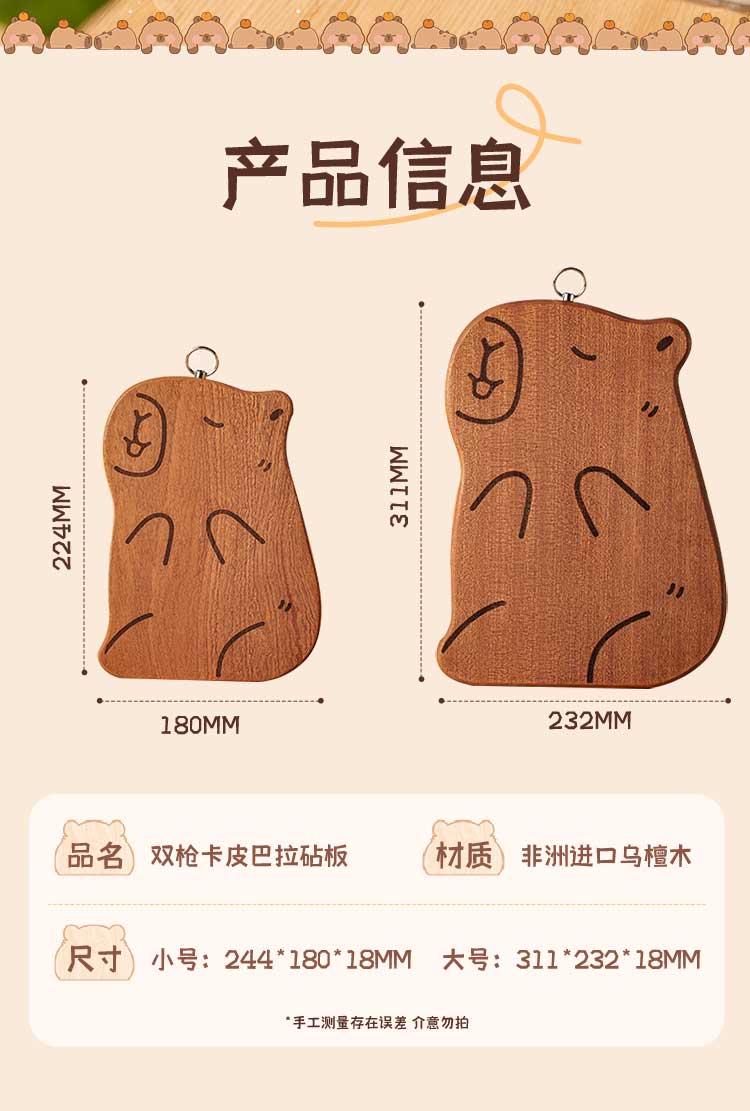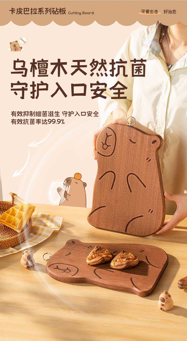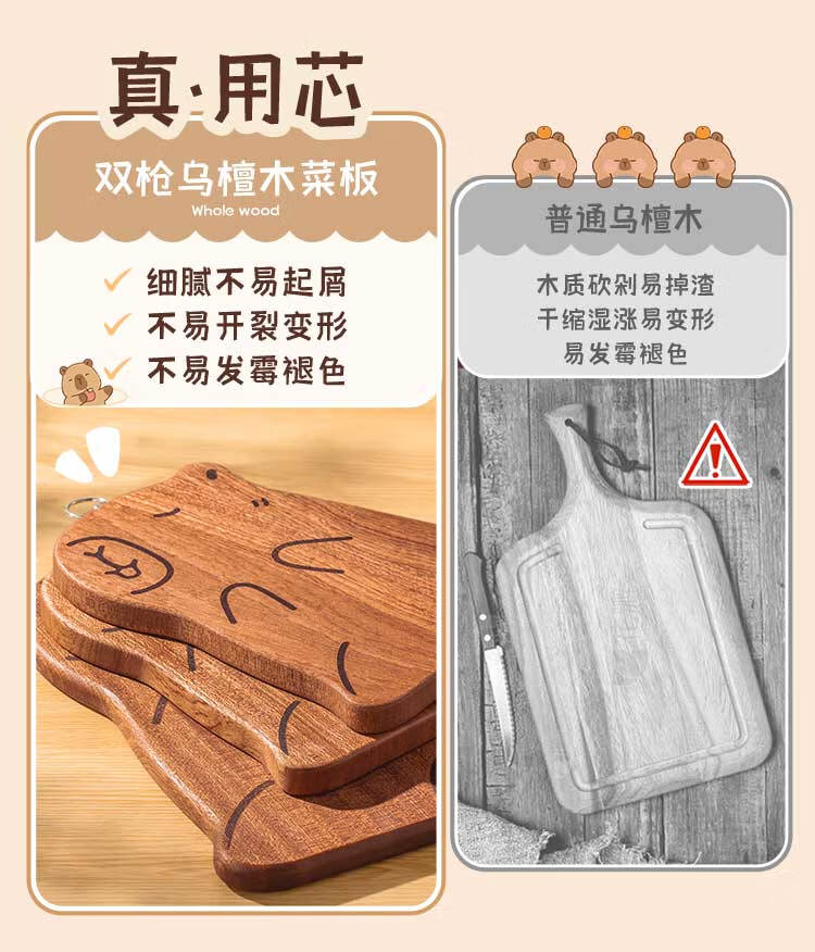 双枪乌檀木砧板家用婴儿辅食水果小菜板抗菌防滑便携粘板卡皮巴拉大号