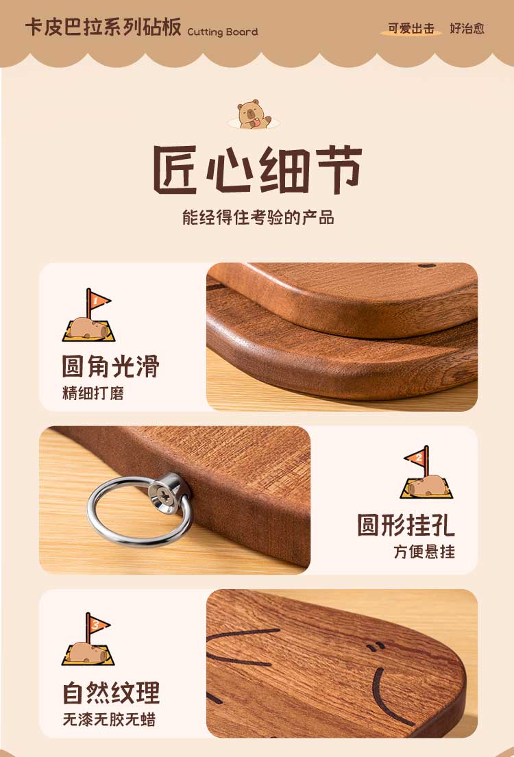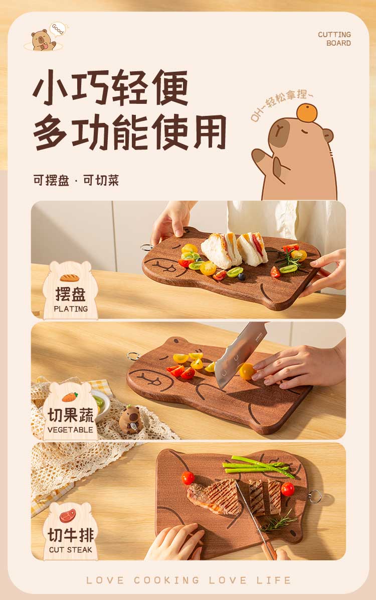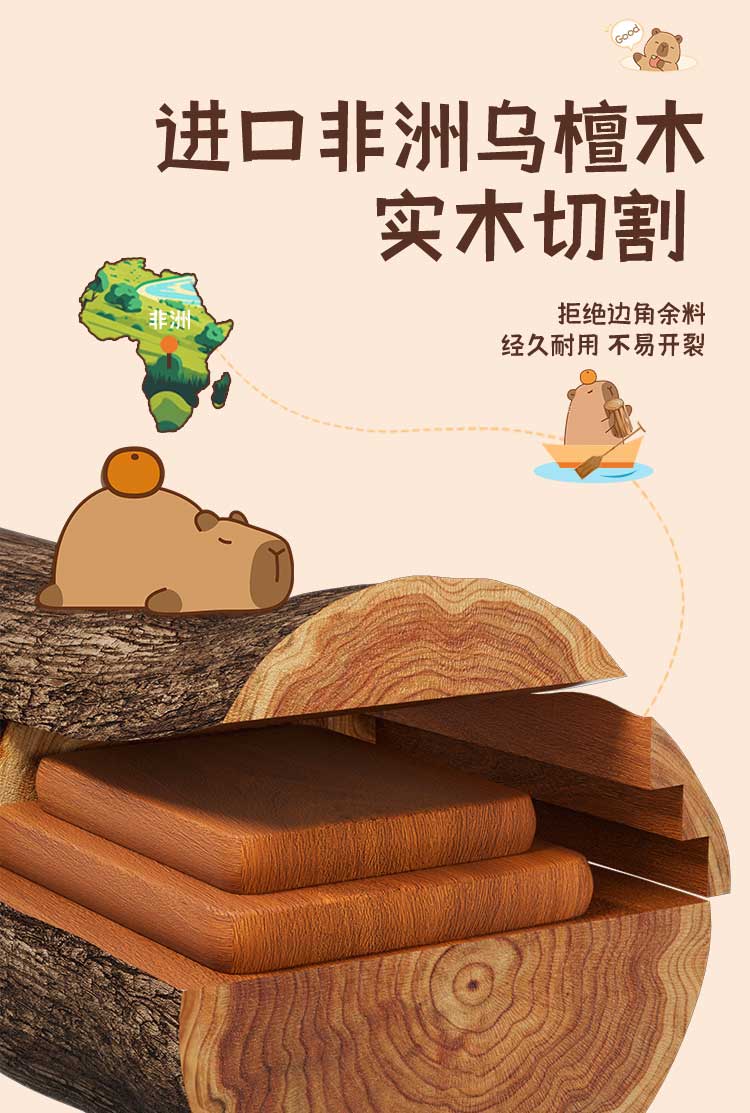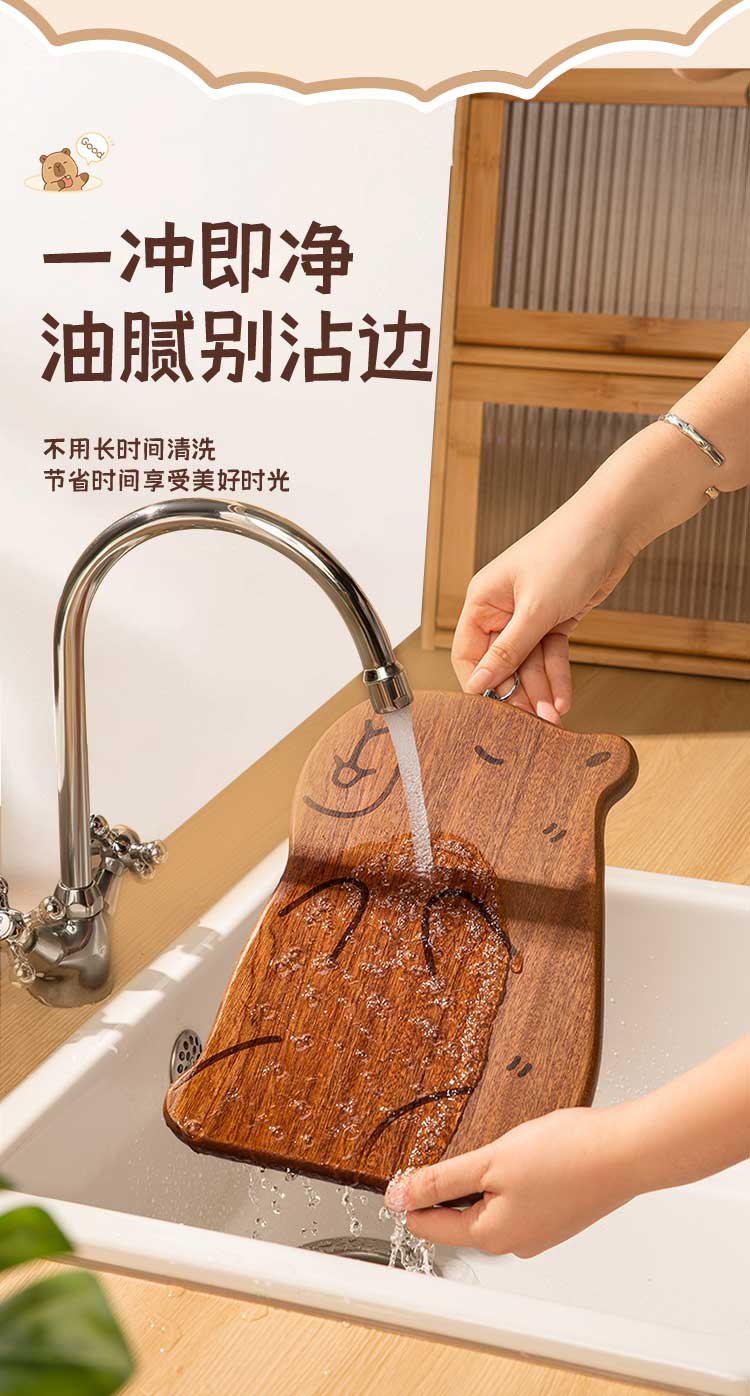 双枪乌檀木砧板家用婴儿辅食水果小菜板抗菌防滑便携粘板卡皮巴拉大号