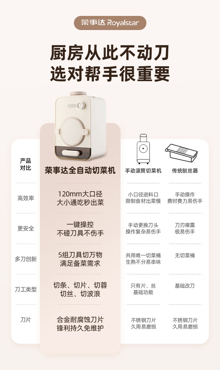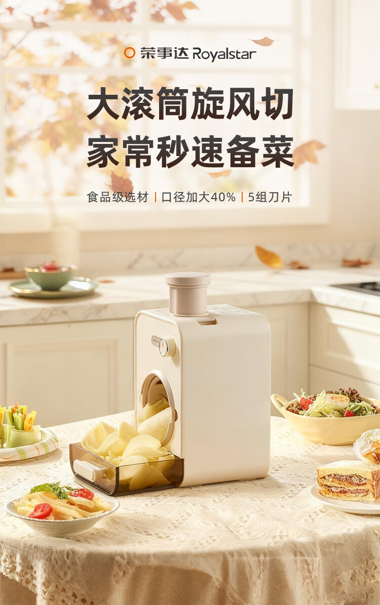 荣事达多功能切菜神器家用厨房电动切菜机切菜器全自动切丝切片机全自动 自动切菜机-五合一款(片+丝+条+蓉+波浪)