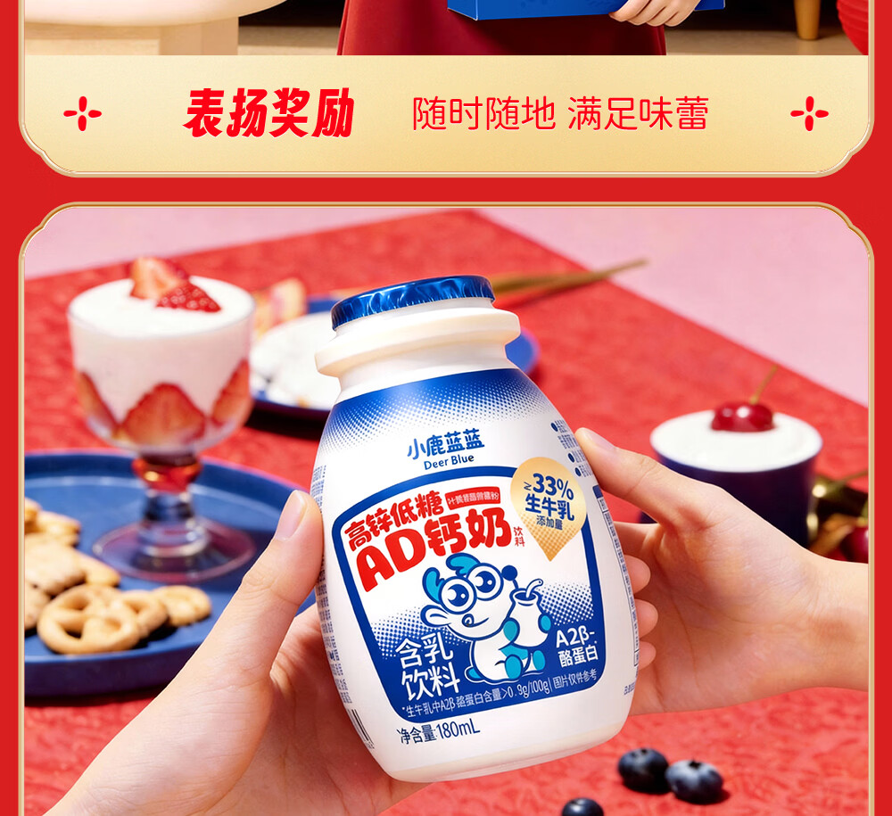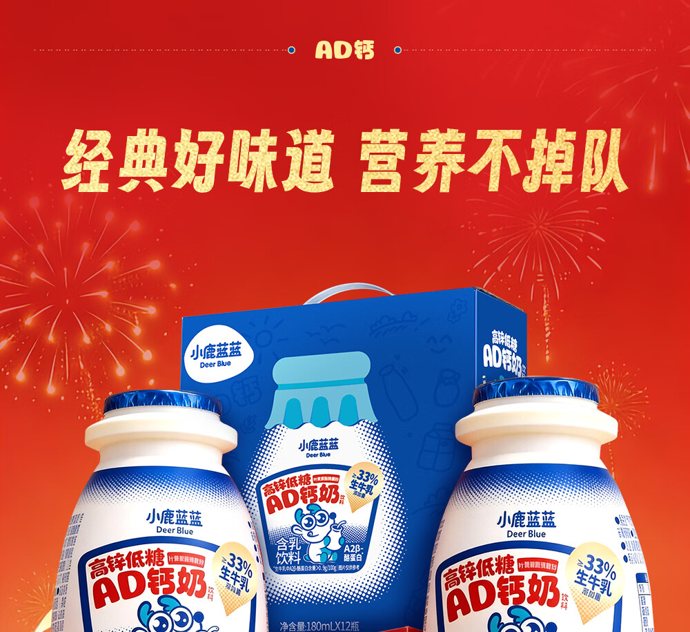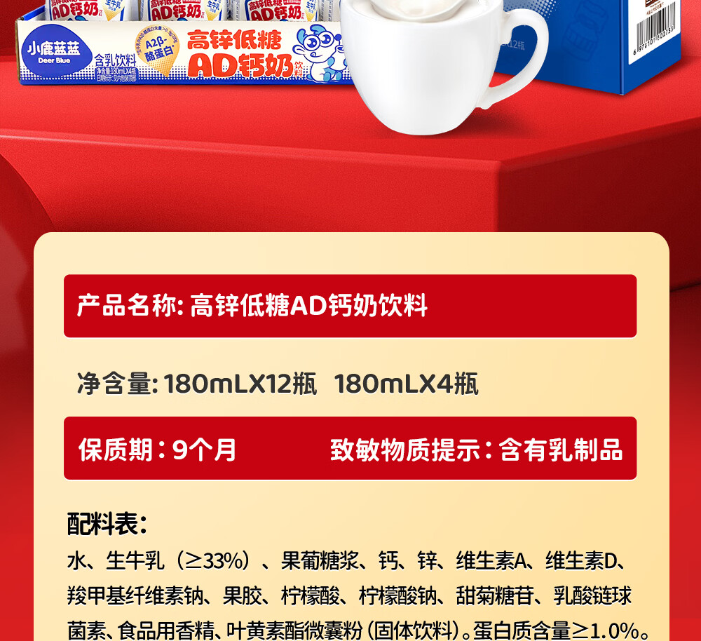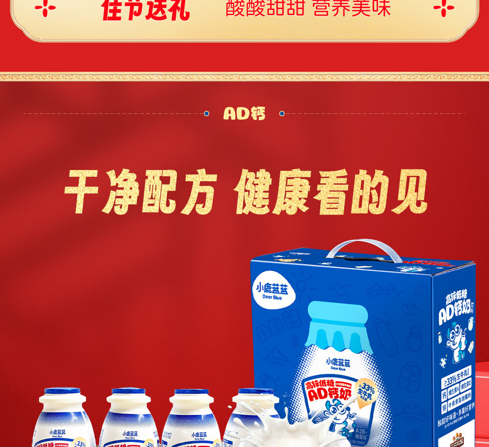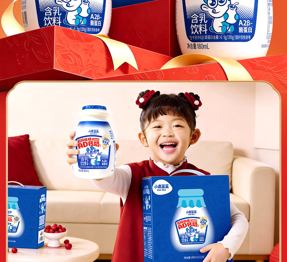小鹿蓝蓝宝宝儿童零食饮料A2蛋白AD钙奶/180ml*12 送礼必备 高锌低糖礼盒