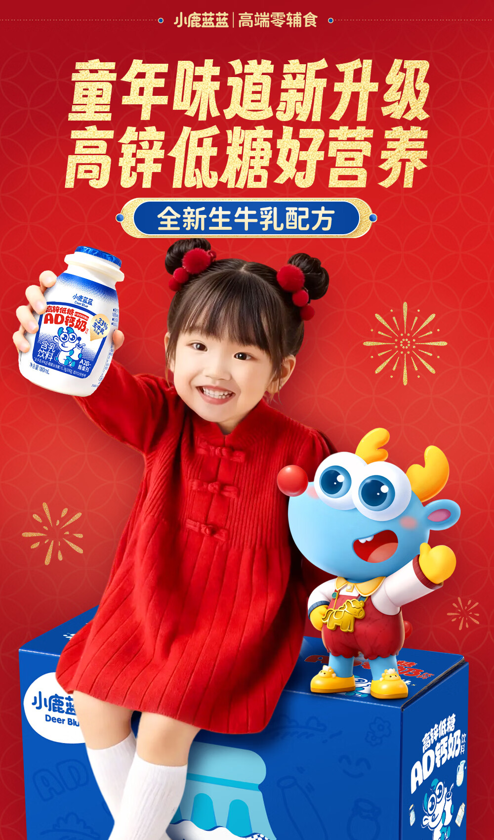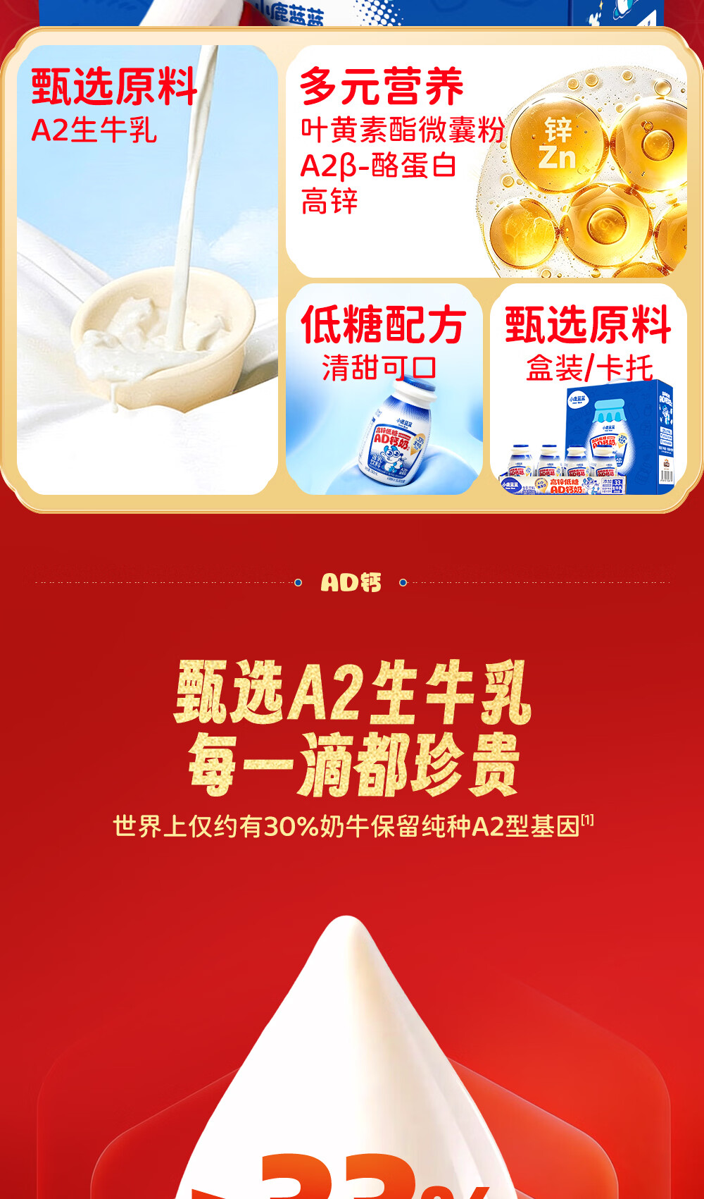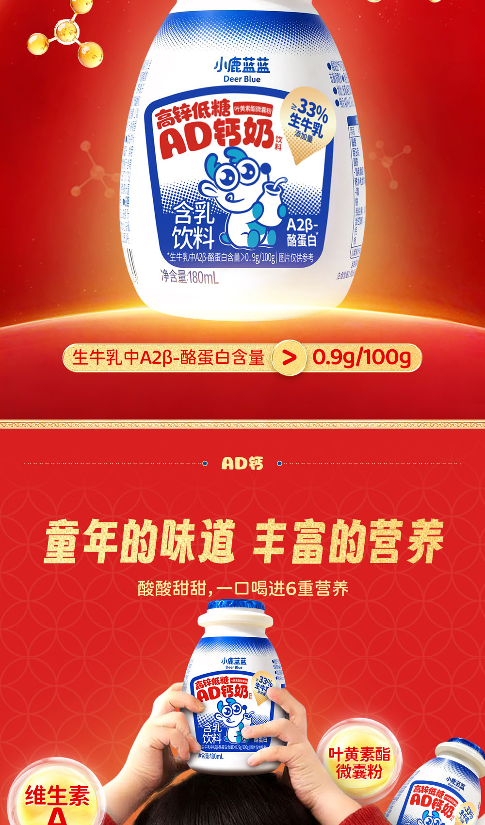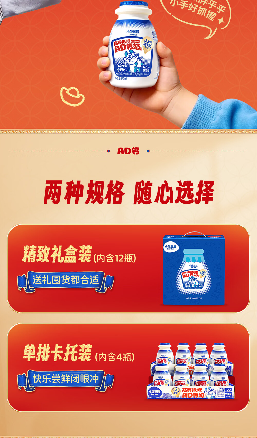 小鹿蓝蓝宝宝儿童零食饮料A2蛋白AD钙奶/180ml*12 送礼必备 高锌低糖礼盒