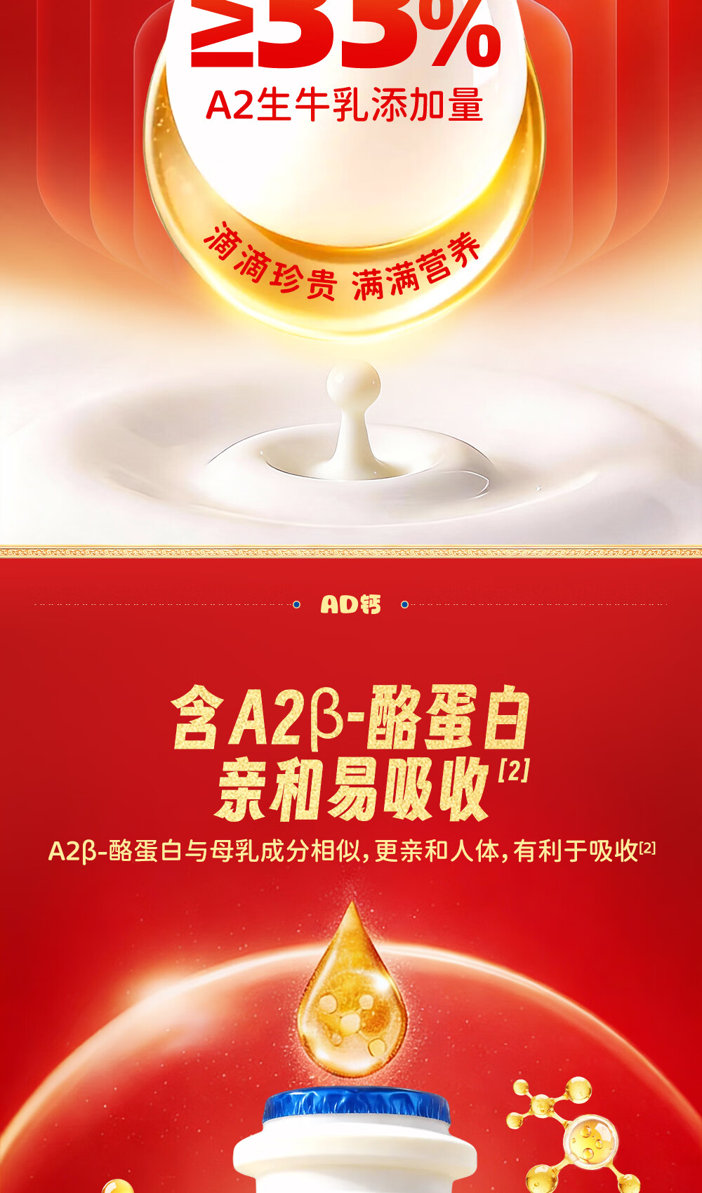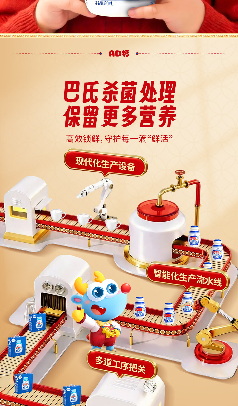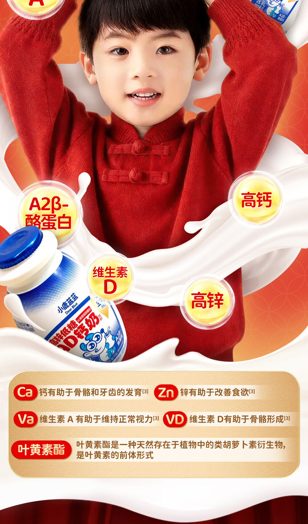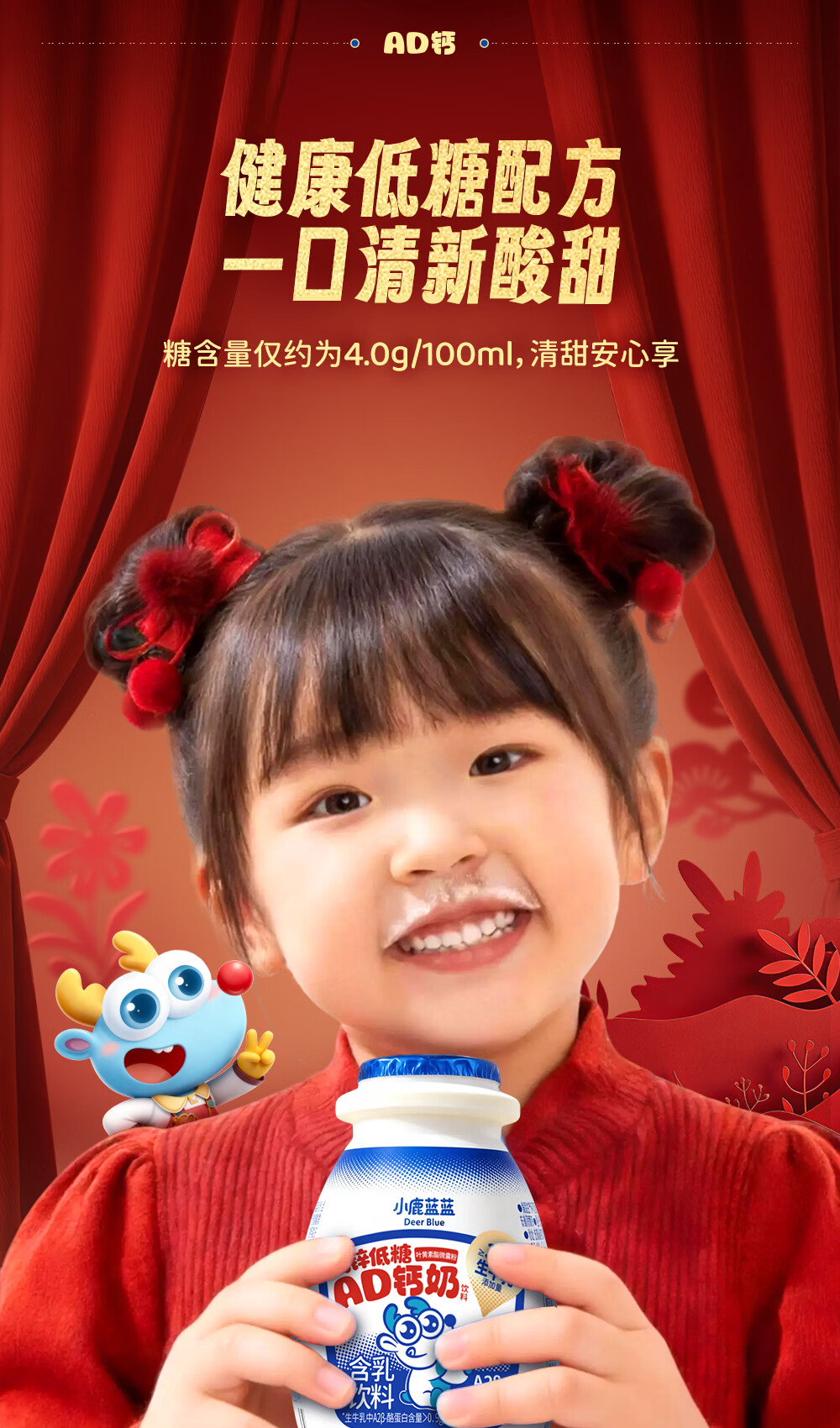 小鹿蓝蓝宝宝儿童零食饮料A2蛋白AD钙奶/180ml*12 送礼必备 高锌低糖礼盒