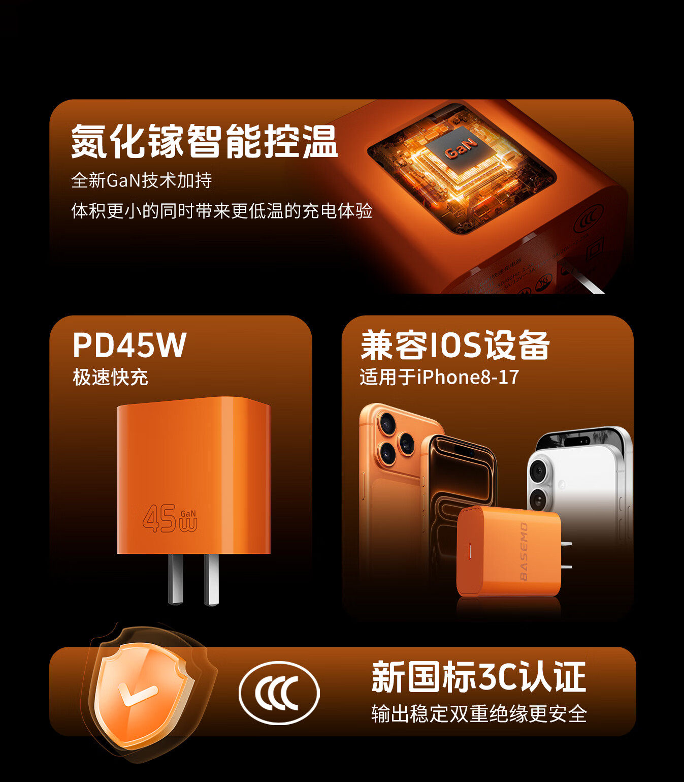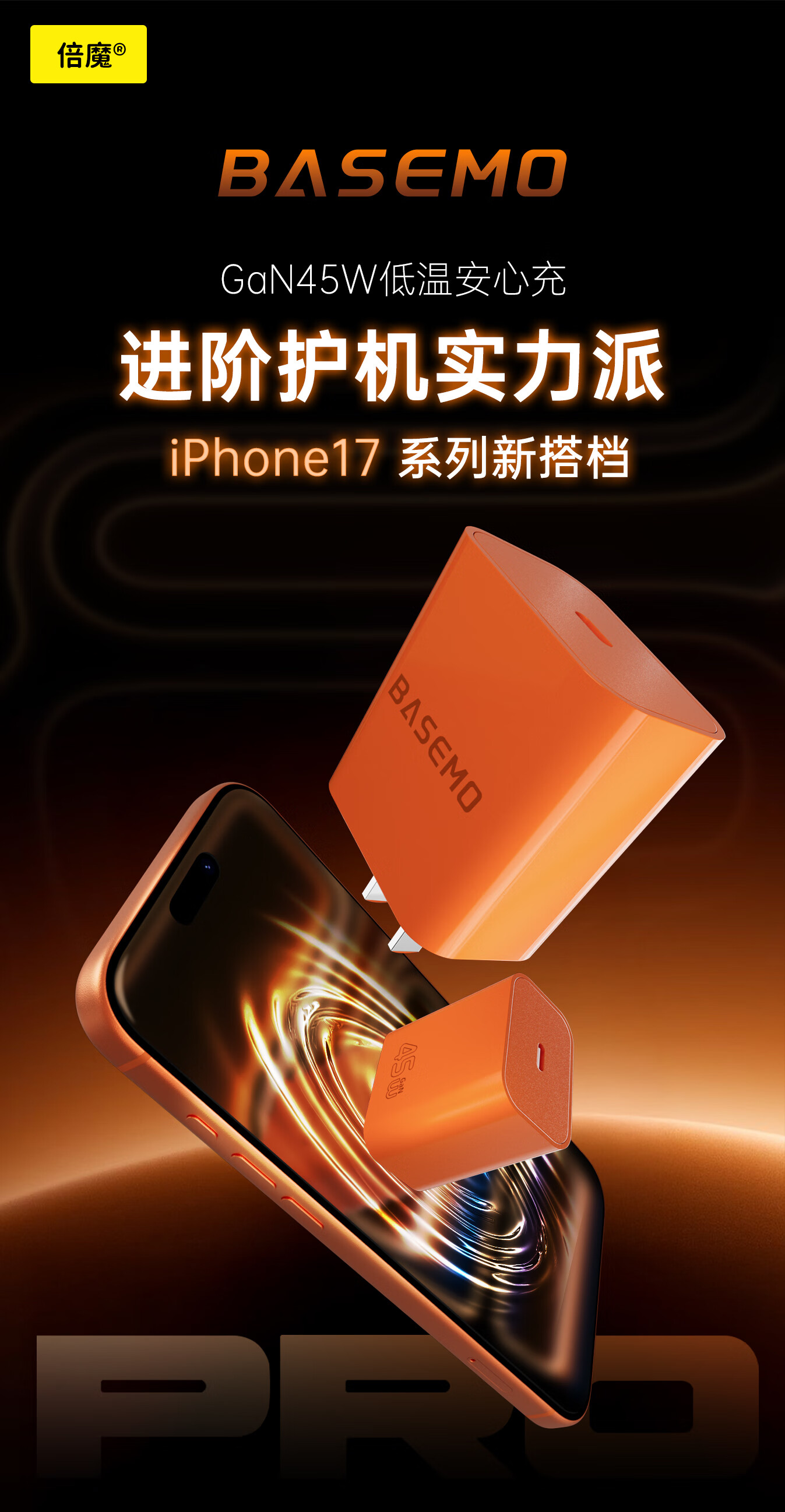 倍魔PD45W氮化镓充电器适配新机40W苹果17ProMax插头Type-C快充适用iPhone16华为小米三星手机平板 苹果【15-17】45W套装白色