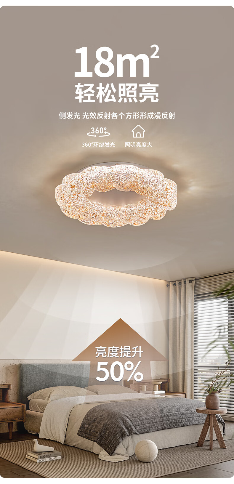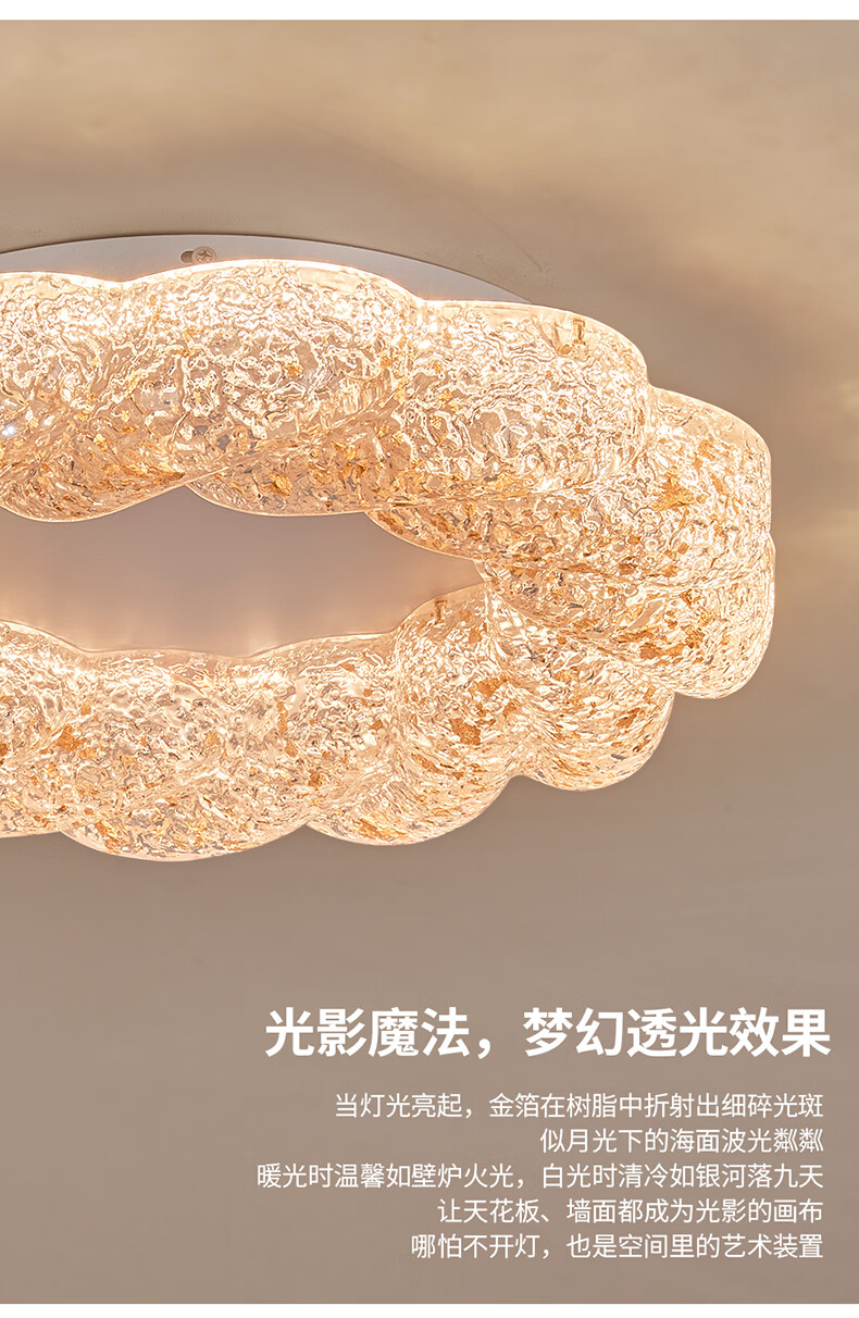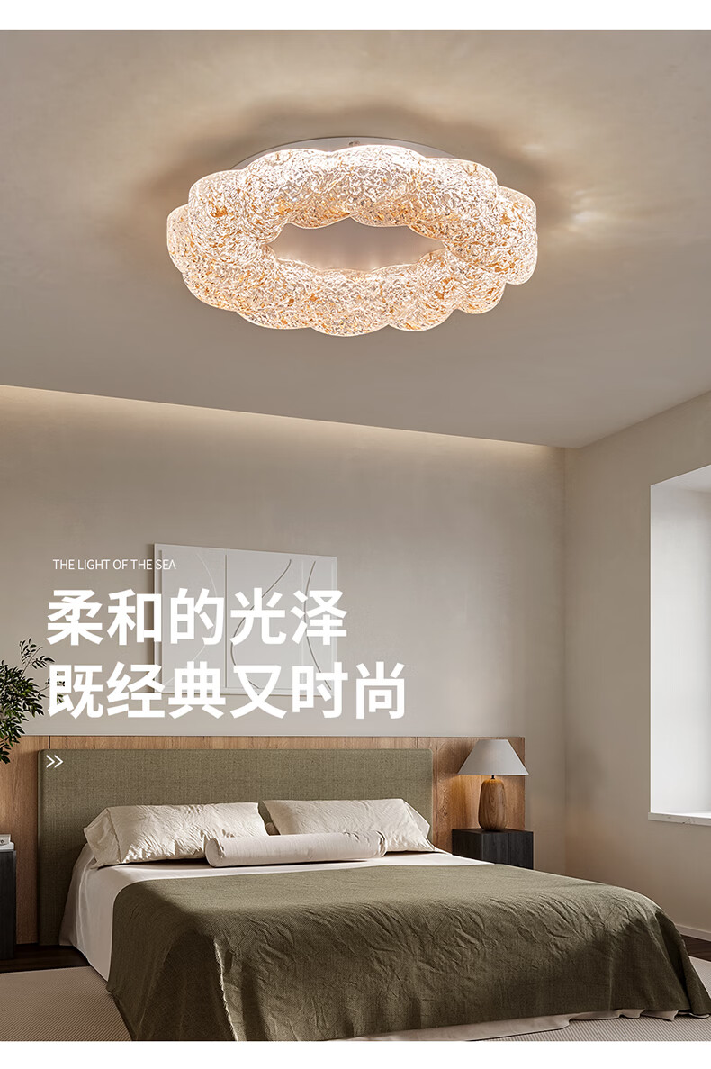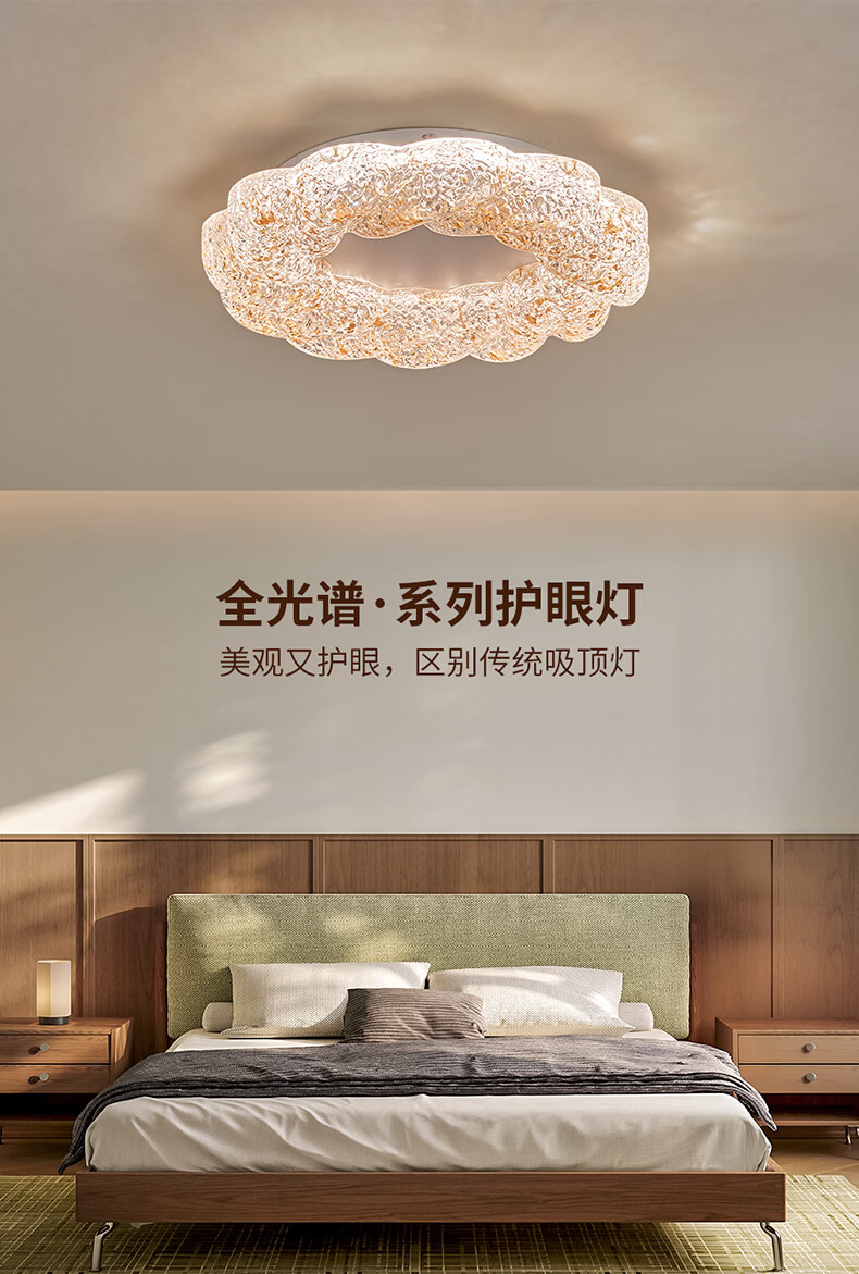 卡伯森主卧室吸顶灯现代轻奢大气设计师款创意高级感全光谱护眼书房灯 砂白色-直径50cm【三色变光】【全光谱】