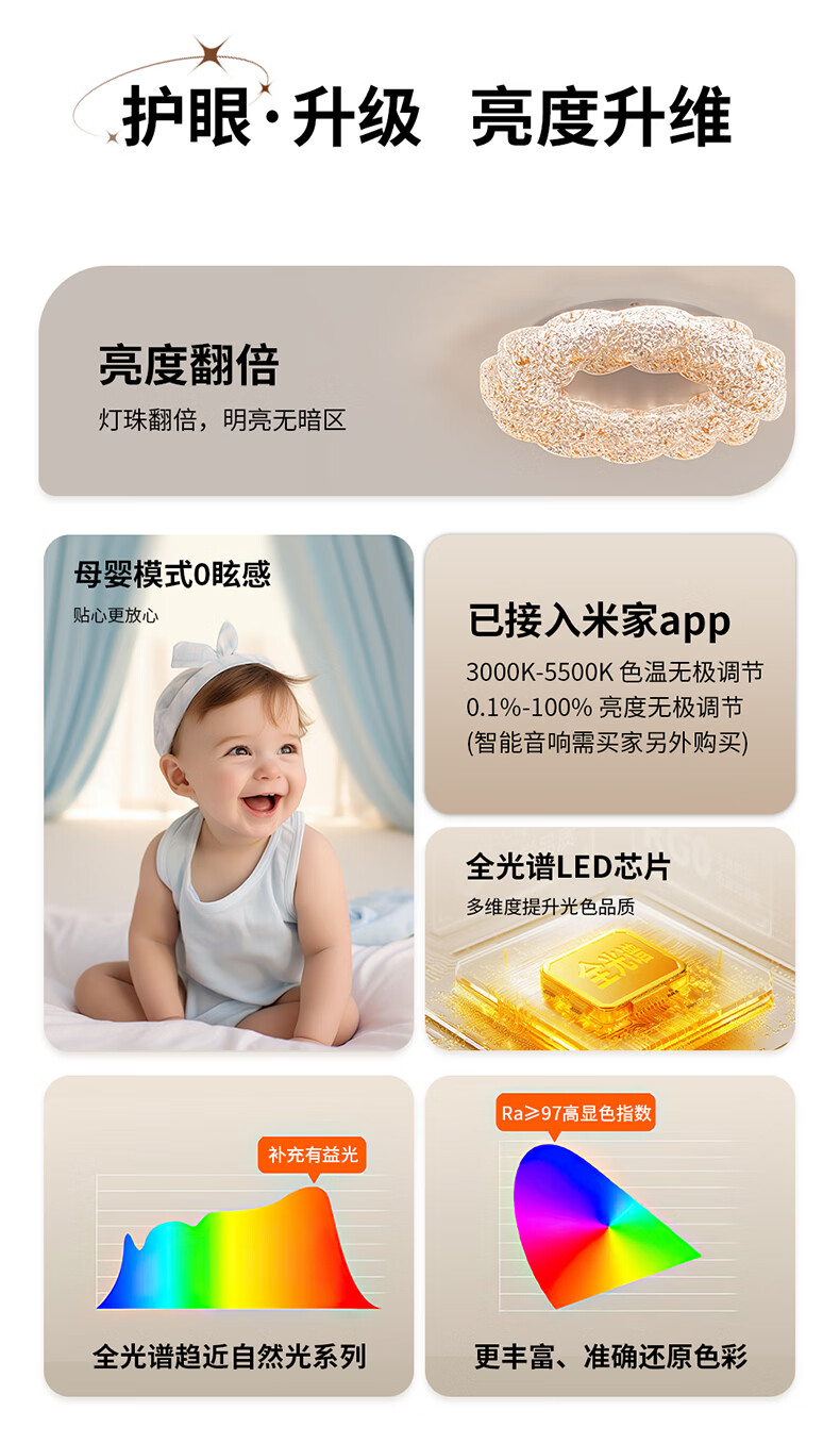 鹿屋中古卧室灯南洋风主卧灯复古包豪斯吸顶灯法式多巴胺书房灯2026 全光谱护眼铬色【45CM】B款-智能小爱
