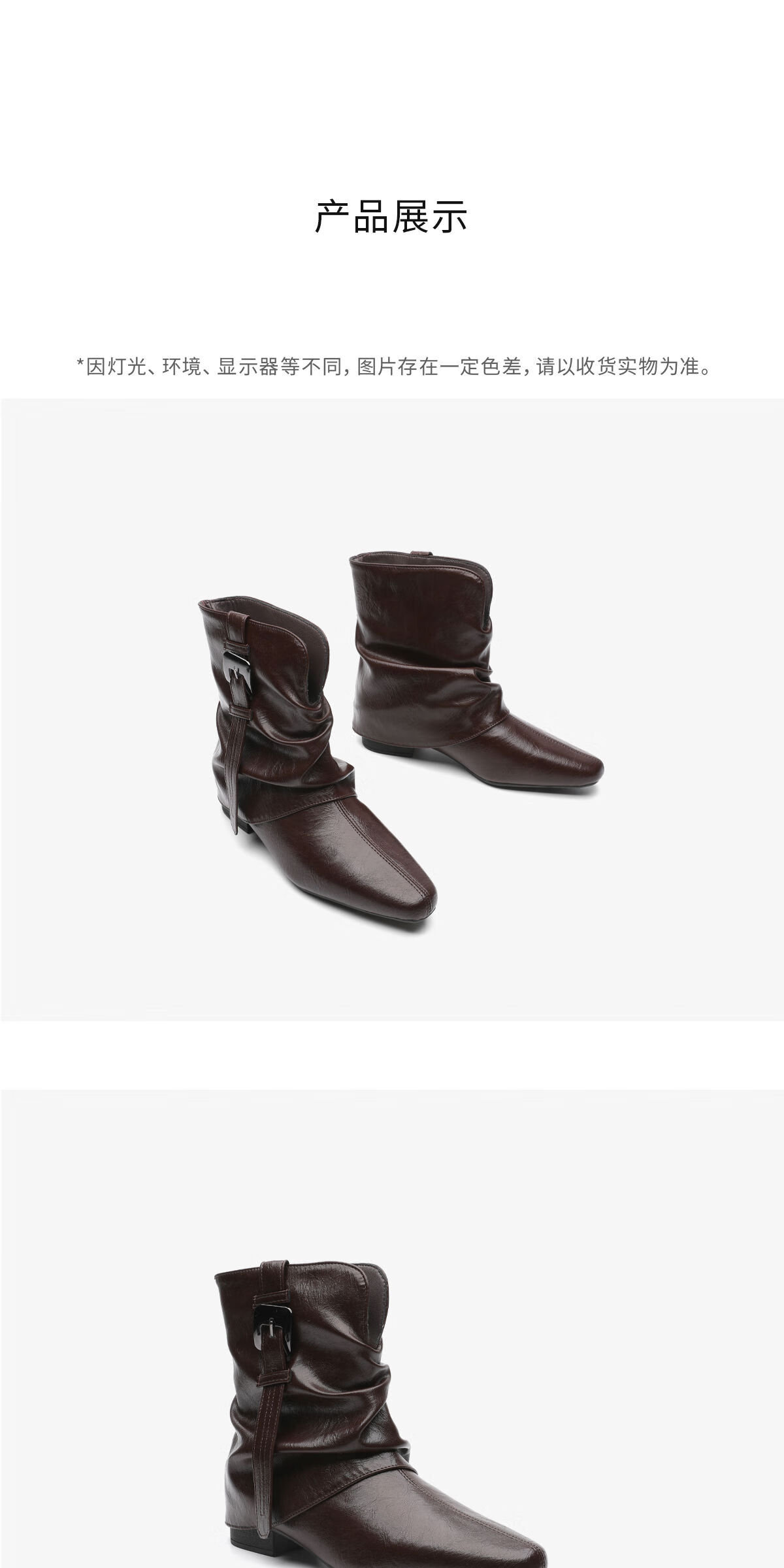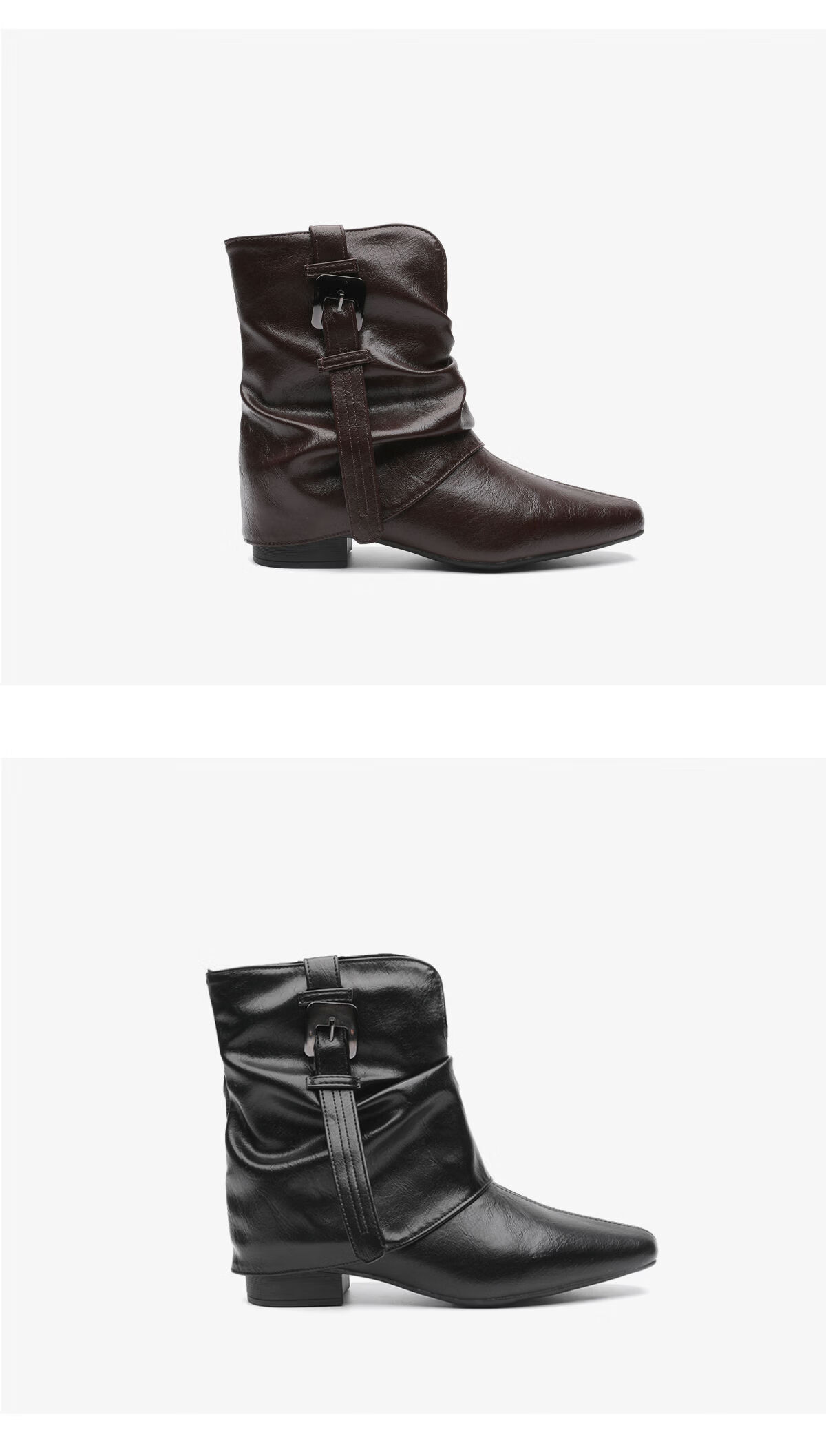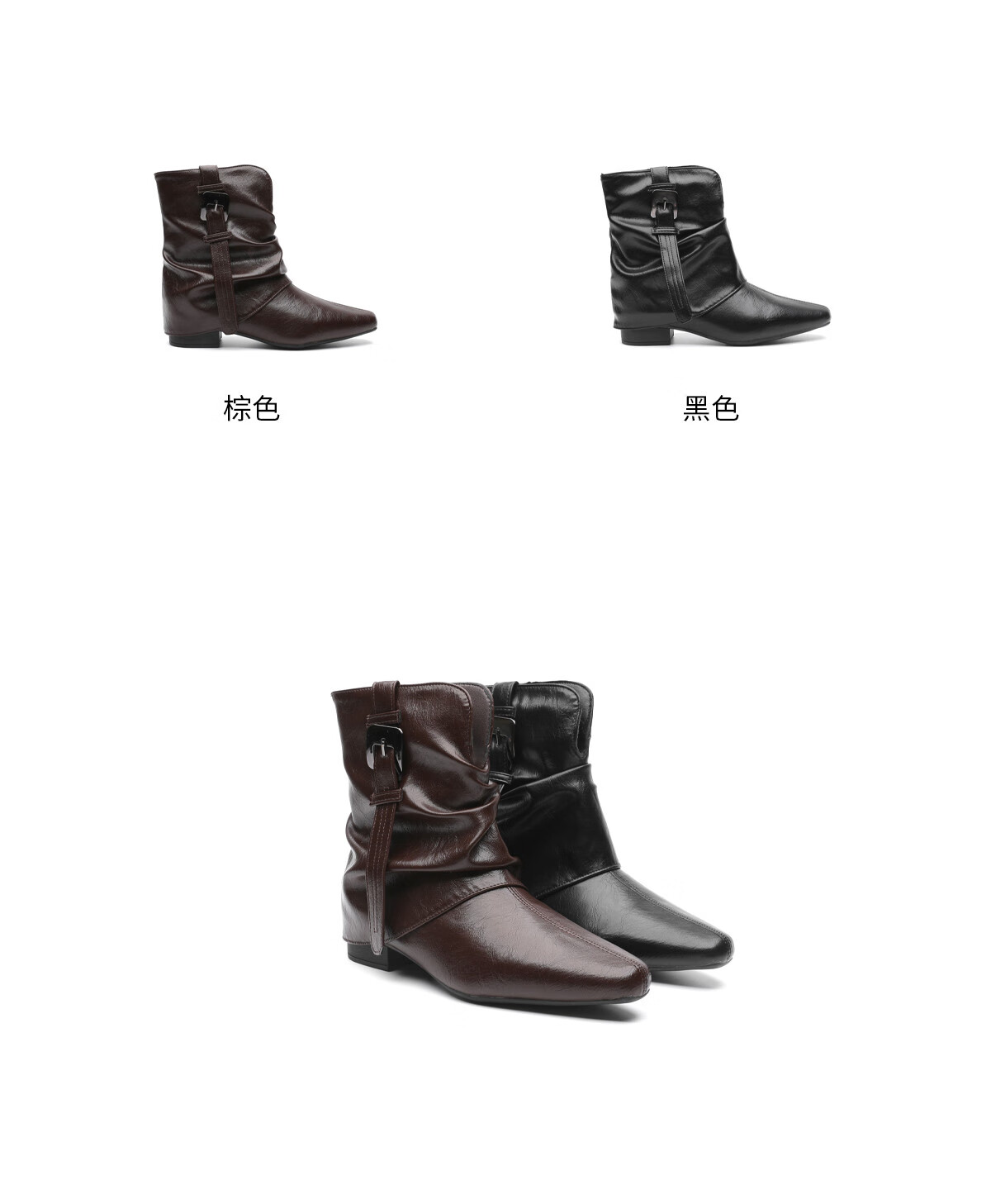 月芽儿2025冬季复古皮带扣堆堆短靴女棕色尖头瘦瘦靴裤管靴时装靴 绒里黑色01T 34