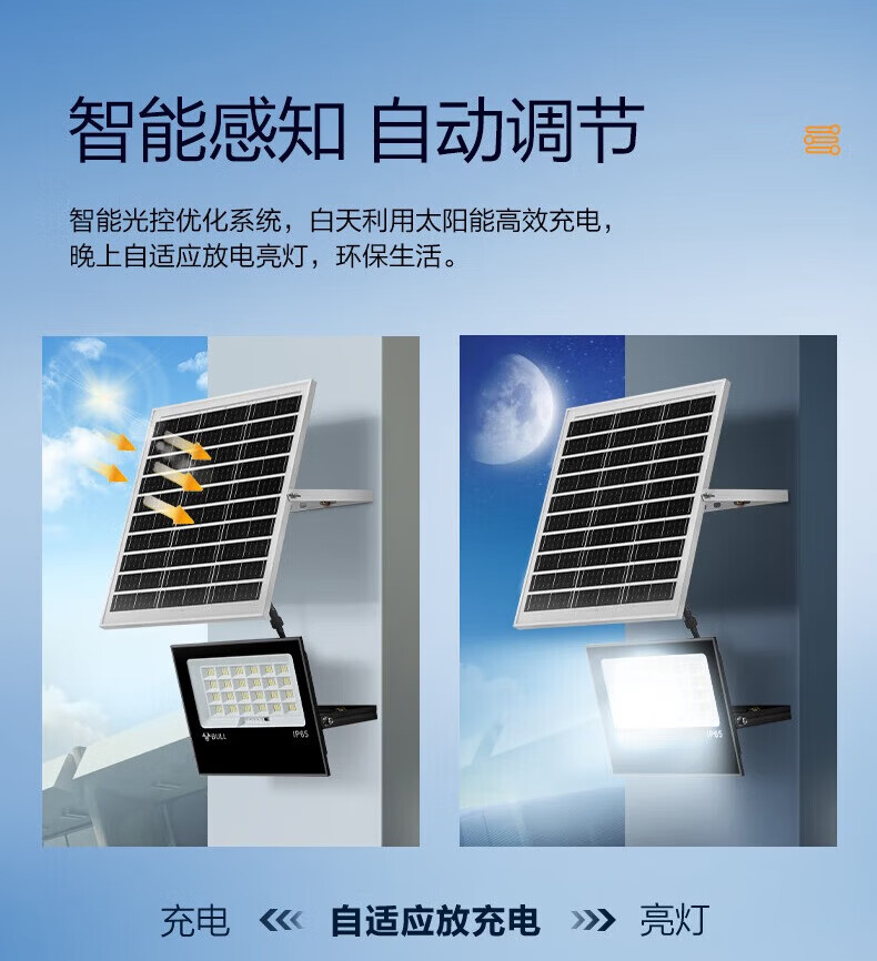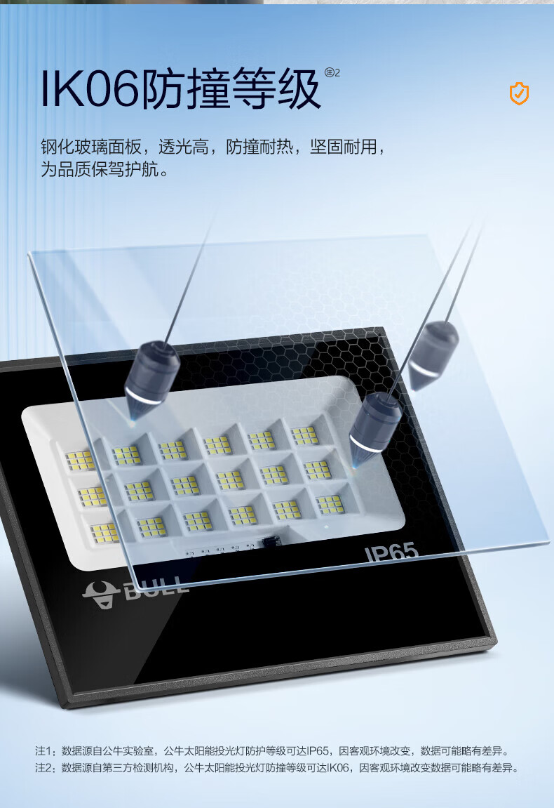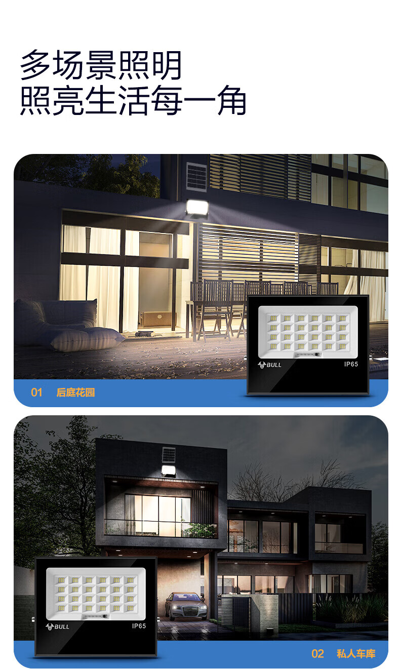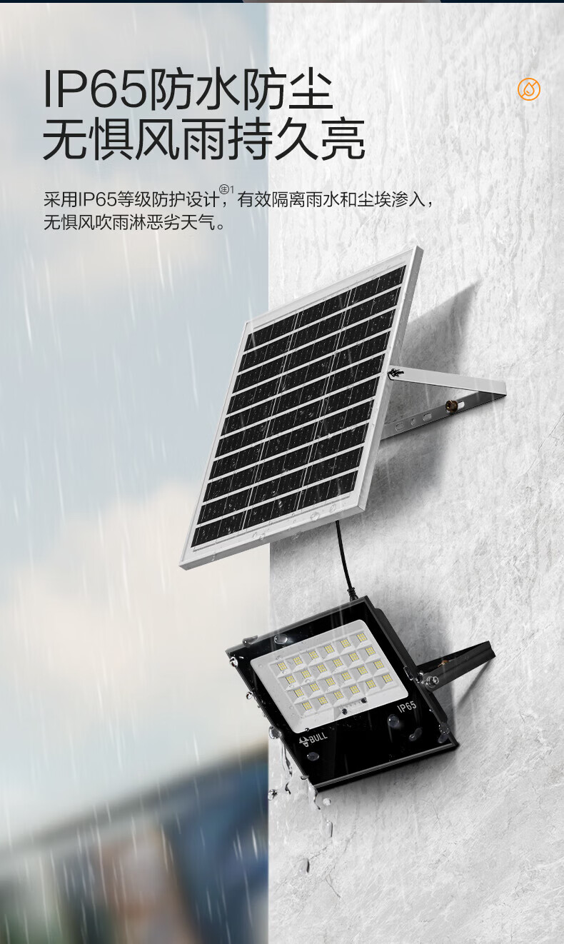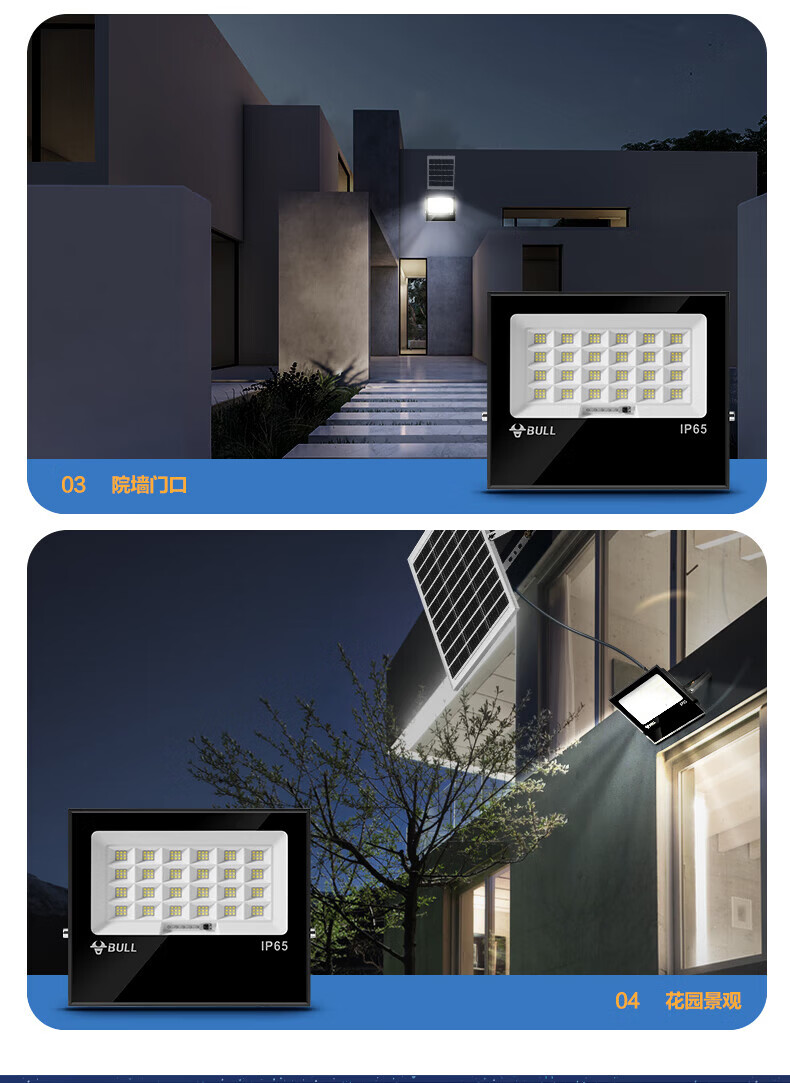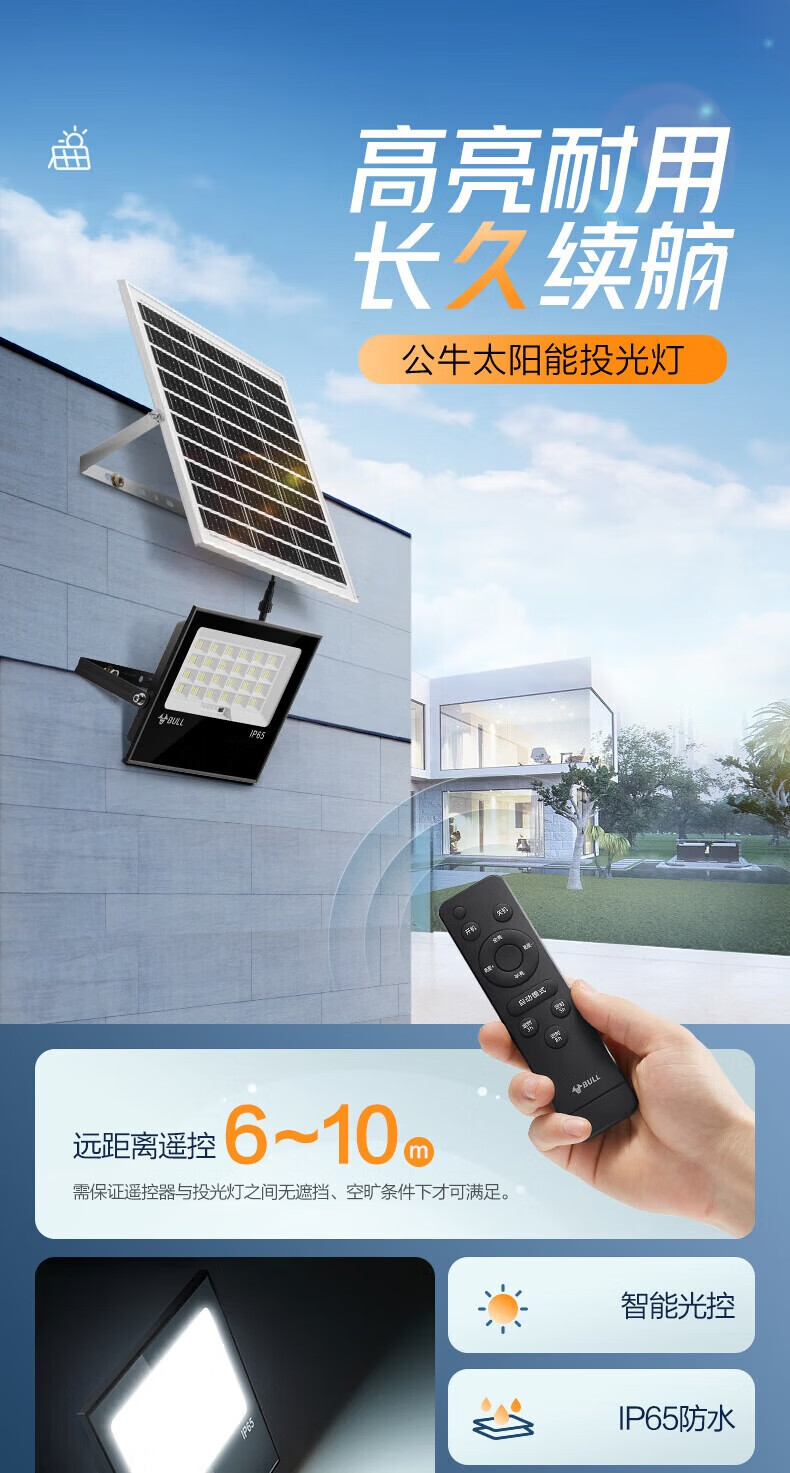 公牛太阳能投光灯户外路灯防水超亮家用照明庭院农村大功率高杆草坪灯 聚光款/80W型/白光/照明80m²