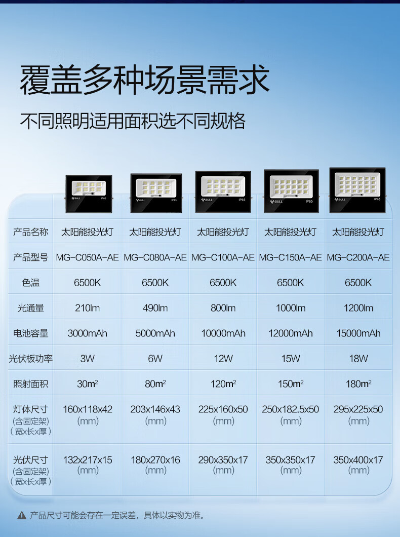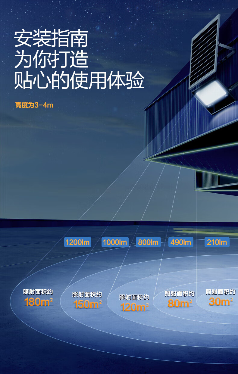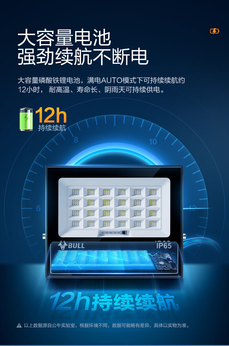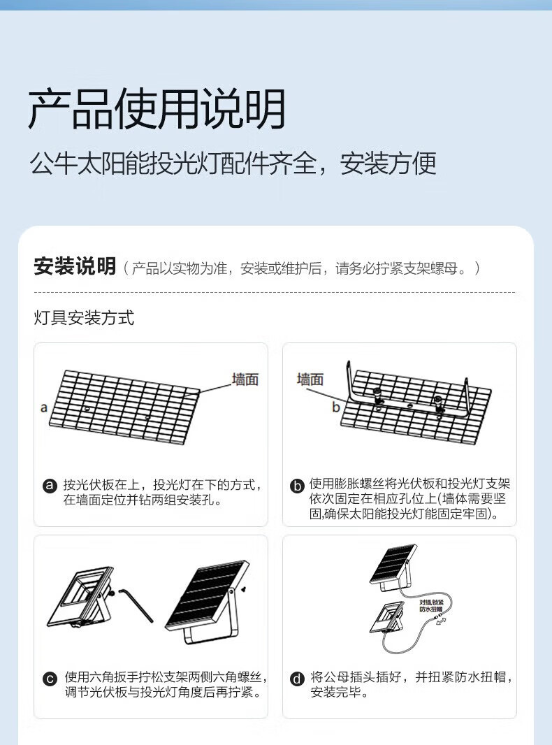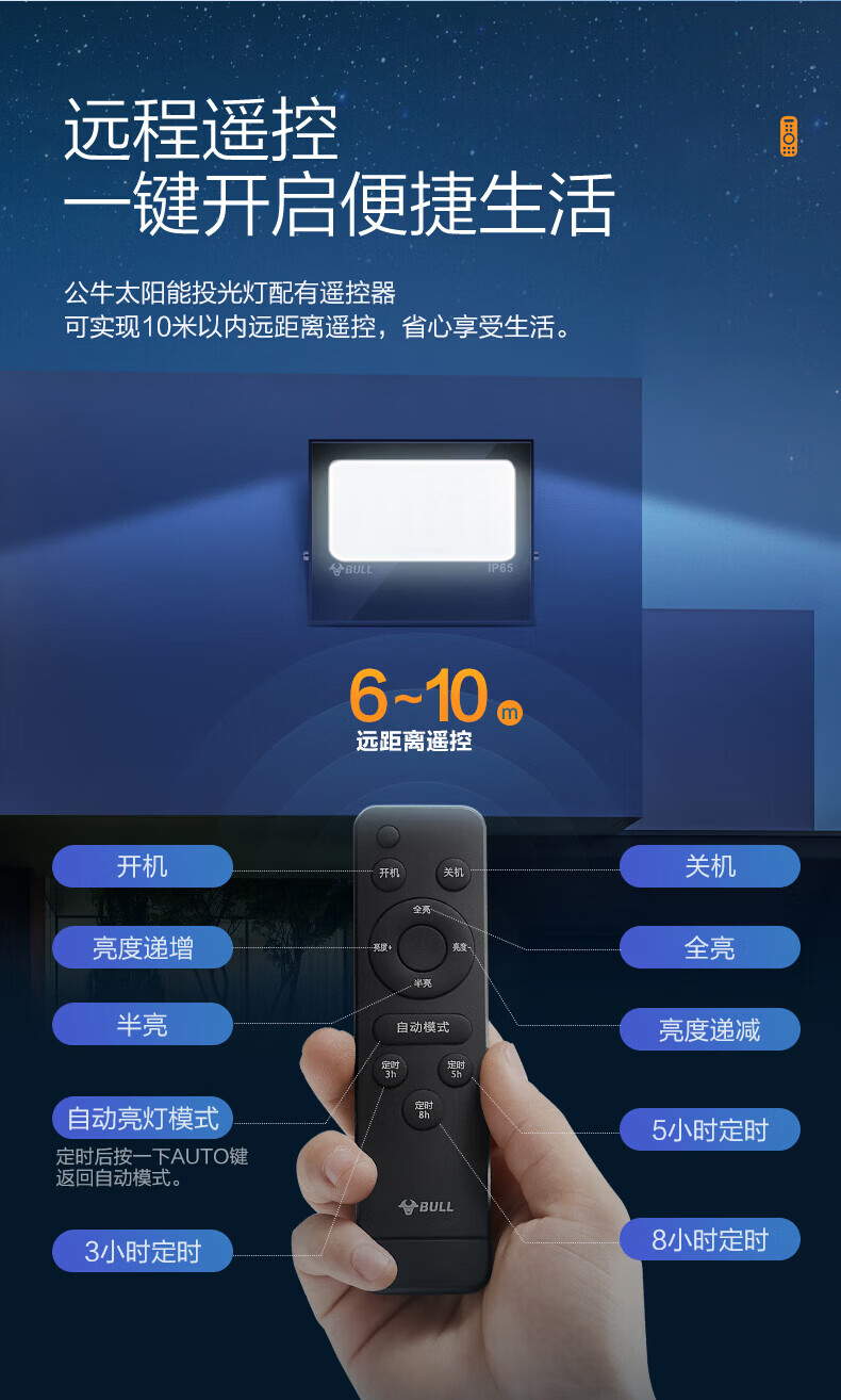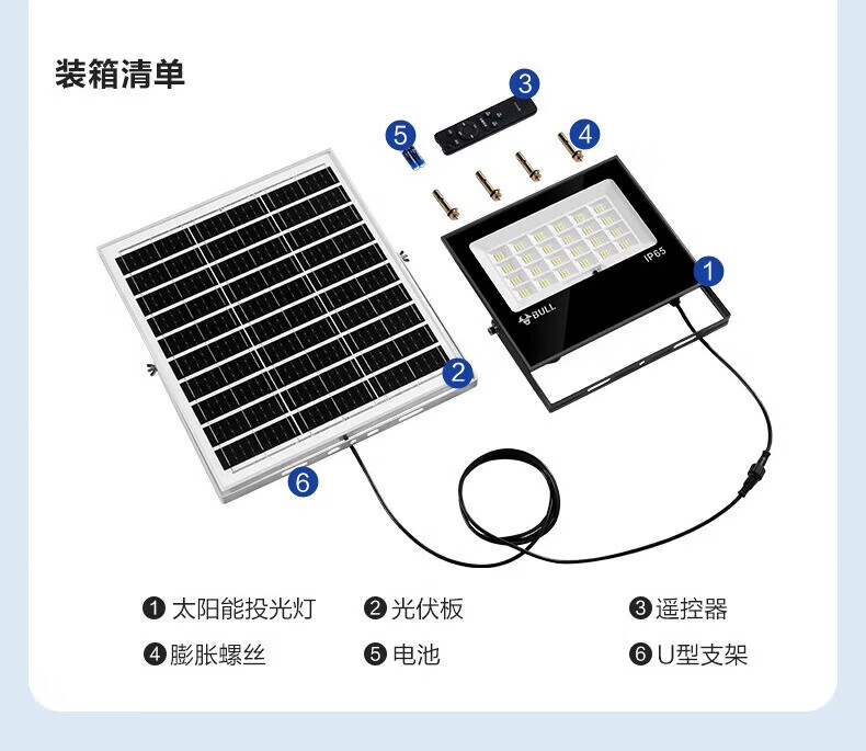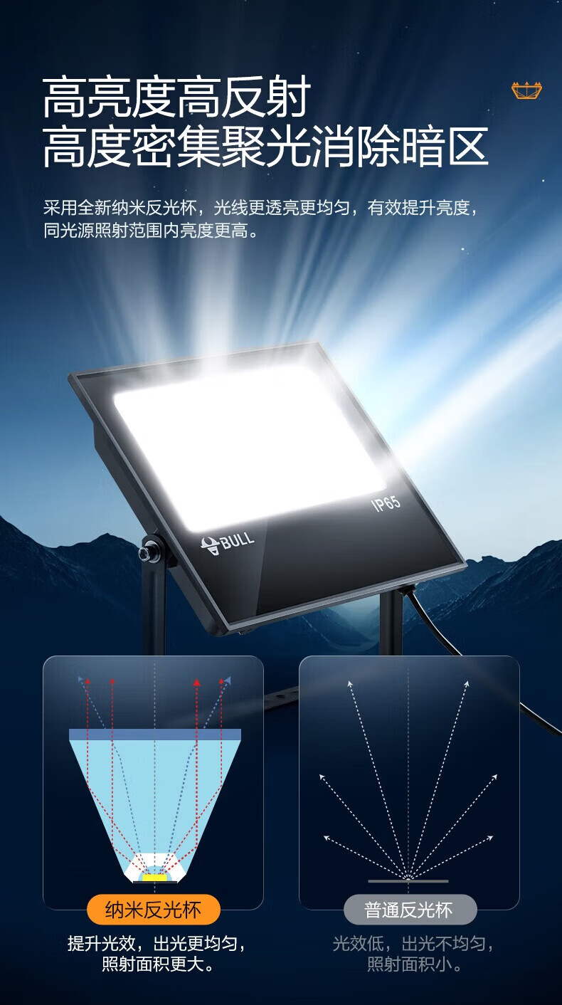公牛太阳能投光灯户外路灯防水超亮家用照明庭院农村大功率高杆草坪灯 聚光款/80W型/白光/照明80m²