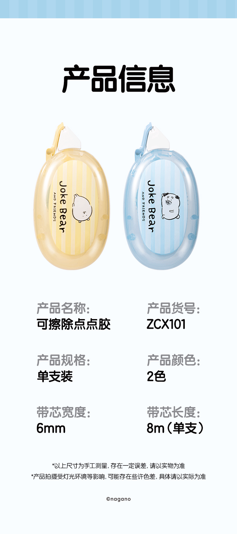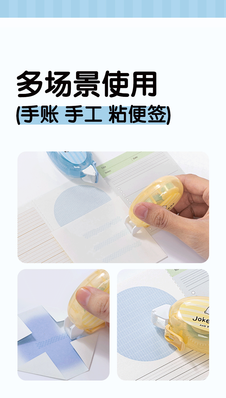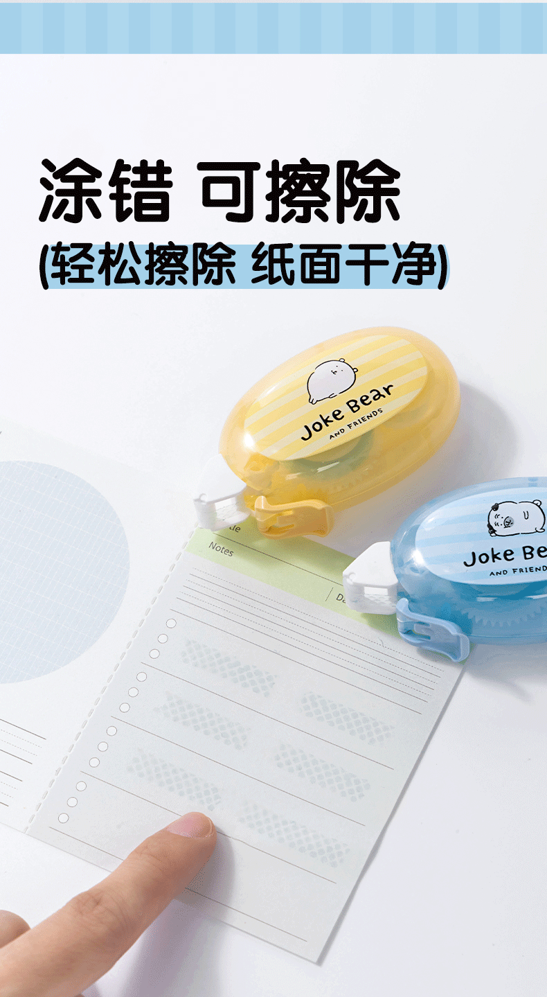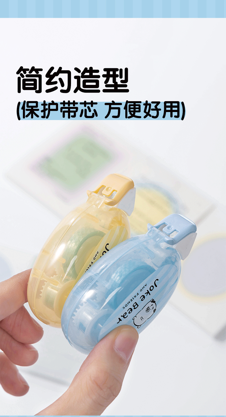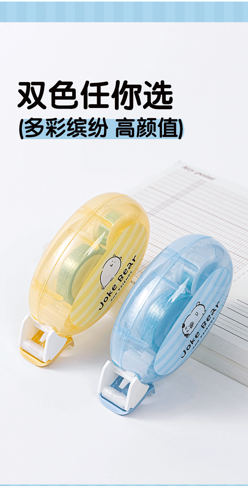 得力自嘲熊联名点点胶双面胶透明胶带小学生专用双面胶高粘度点点胶卡通粘贴胶带高颜值2026新款 【自嘲熊联名】蓝色+黄色/各2个