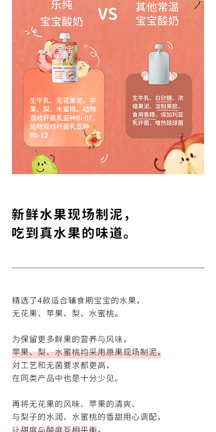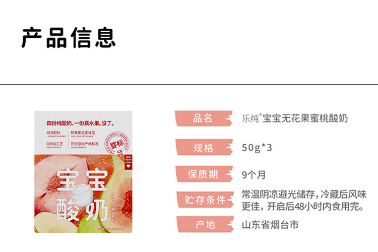乐纯婴标宝宝酸奶无花果50g*3支 常温辅食0添加0蔗糖儿童零食(6个月+)