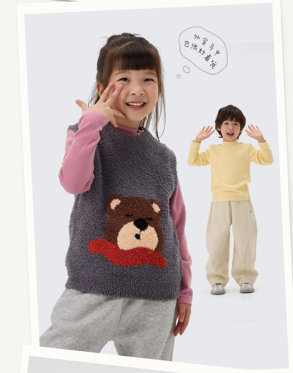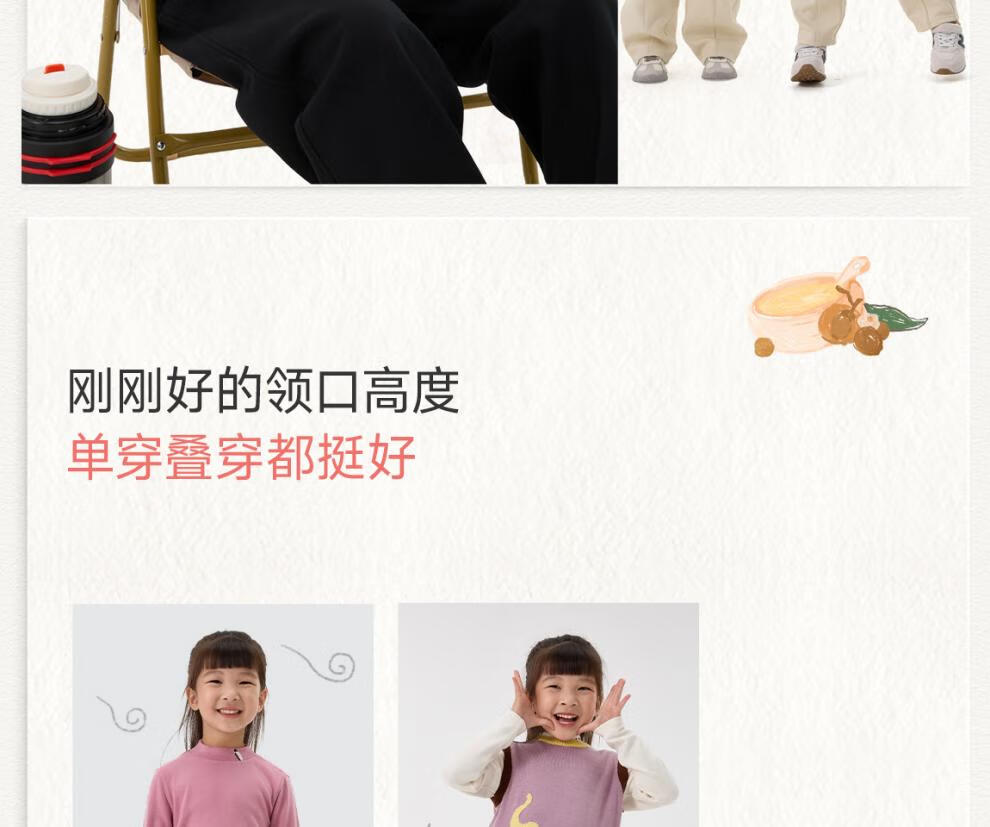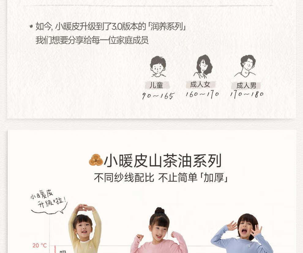 Q21【直播厚暖】小暖皮山茶油儿童秋衣男女孩A类保暖发热内衣打底 舒芙蕾米 140 cm