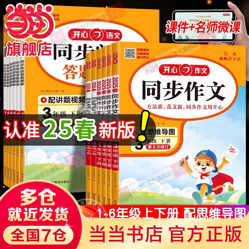 当当【年级自选 当当正版】2026新版 小学生开心同步作文 一二三四五六年级下册上册 同步部编人教版RJ小学语文教材作文辅导书思维导图视频讲解 开心作文 【2026春】开心同步作文 三年级下册
