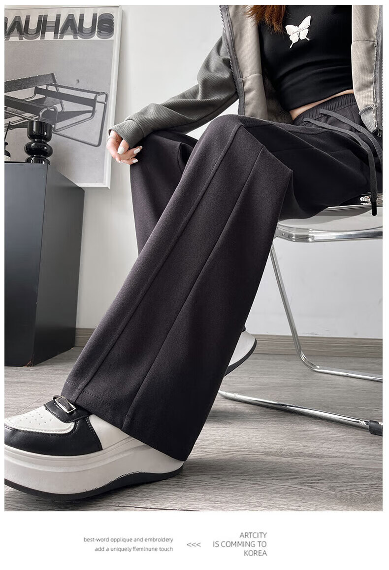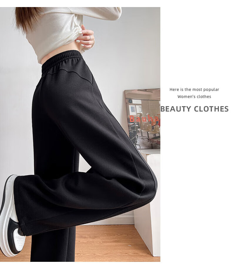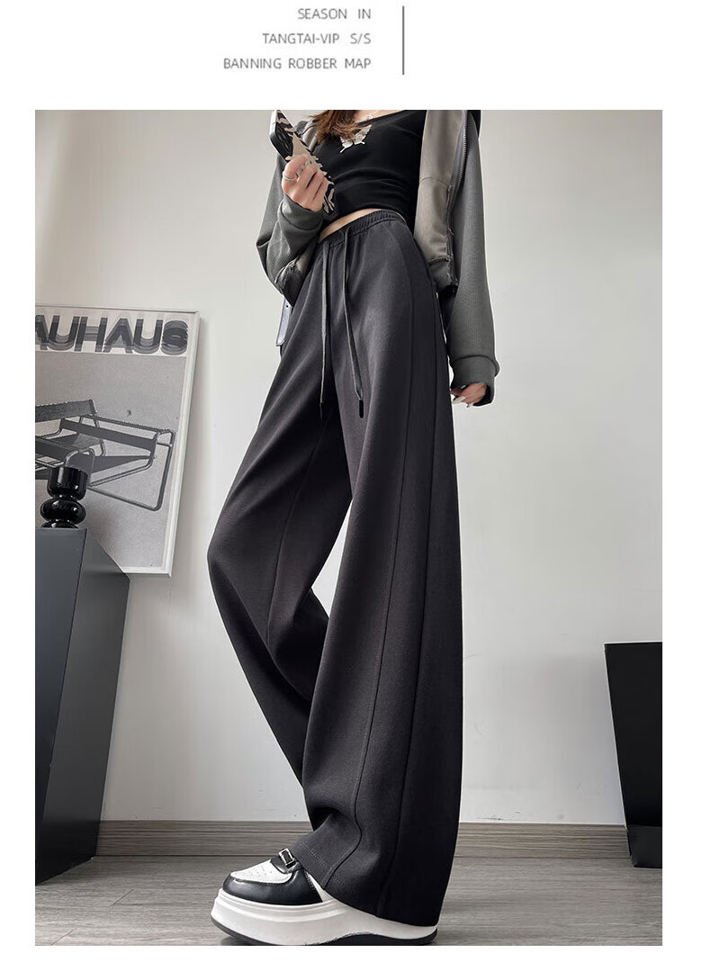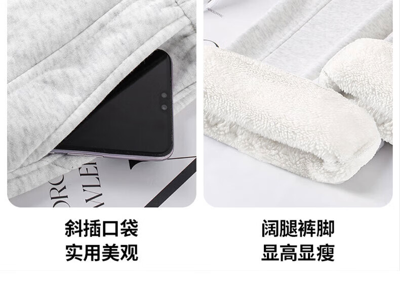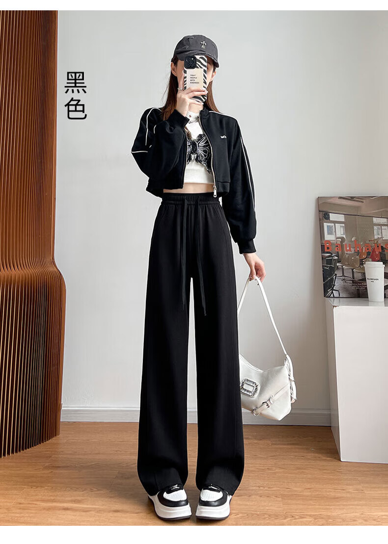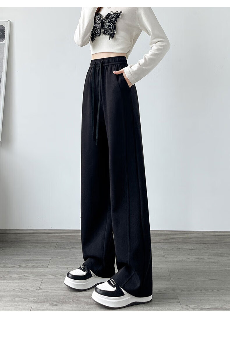 浪莎窄版阔腿运动裤女加绒秋冬款宽松直筒显瘦垂感小个子休闲香蕉裤女 黑色 【特厚羊羔绒】 XL 【推荐120-135斤】