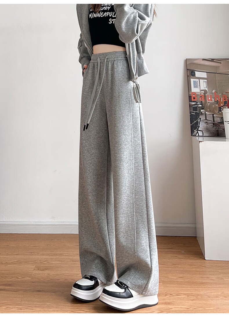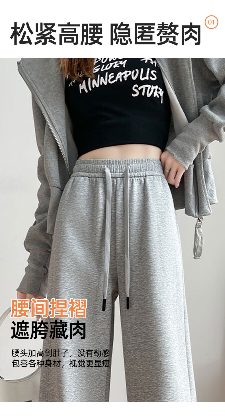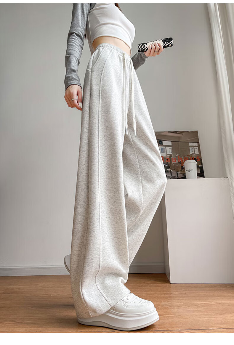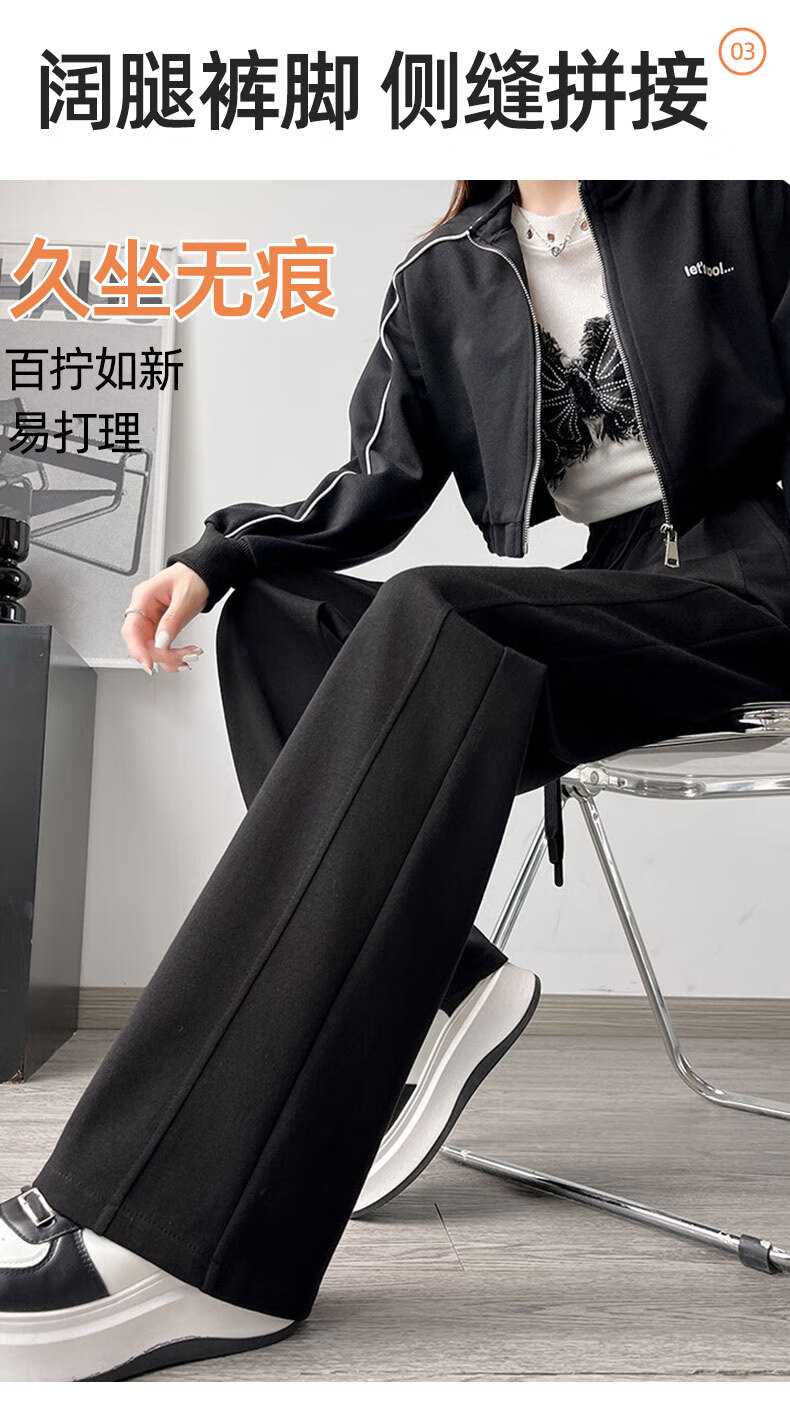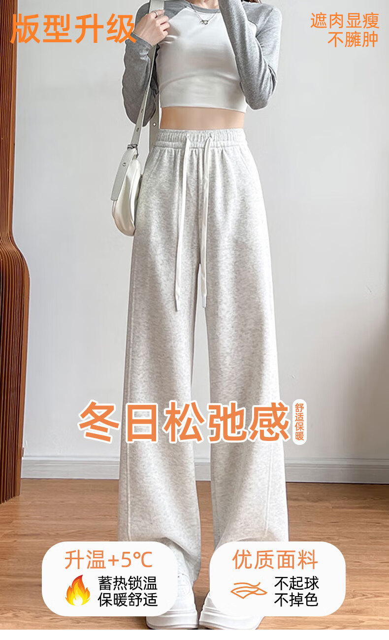 浪莎窄版阔腿运动裤女加绒秋冬款宽松直筒显瘦垂感小个子休闲香蕉裤女 黑色 【特厚羊羔绒】 XL 【推荐120-135斤】