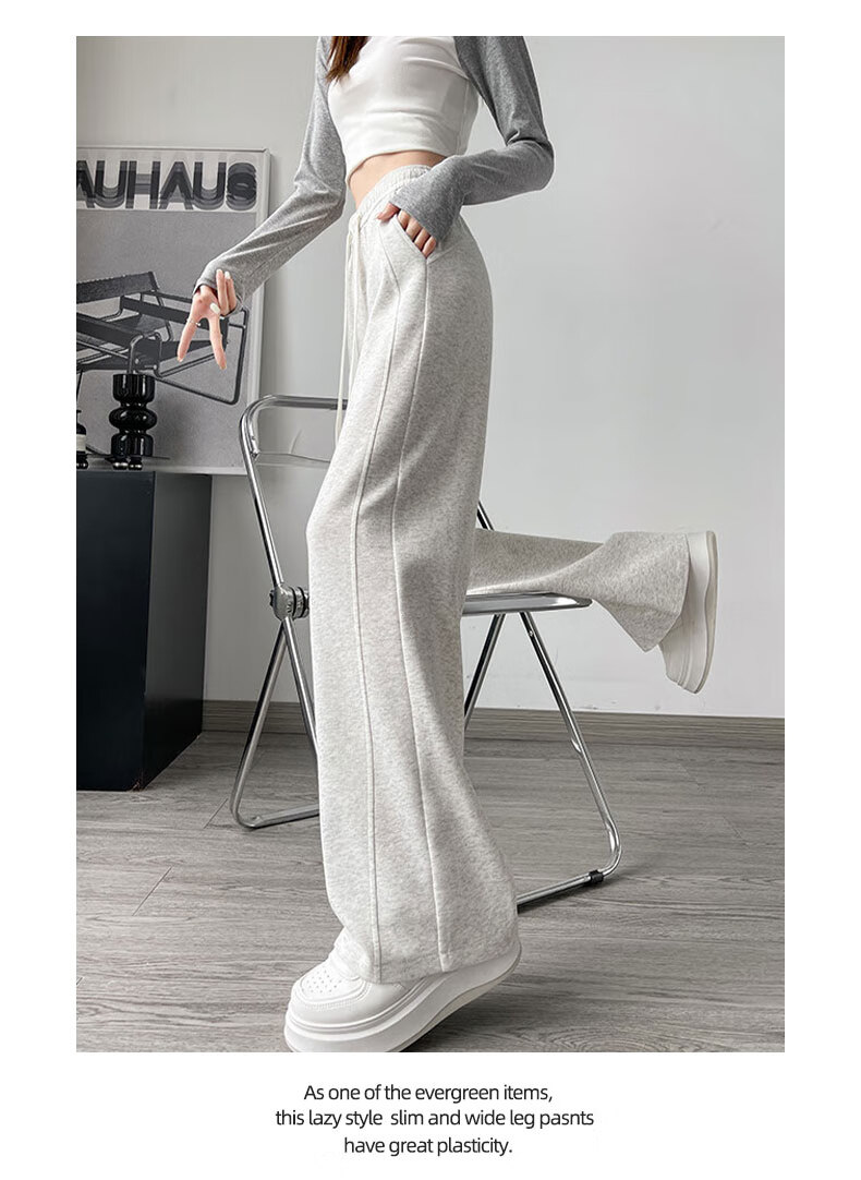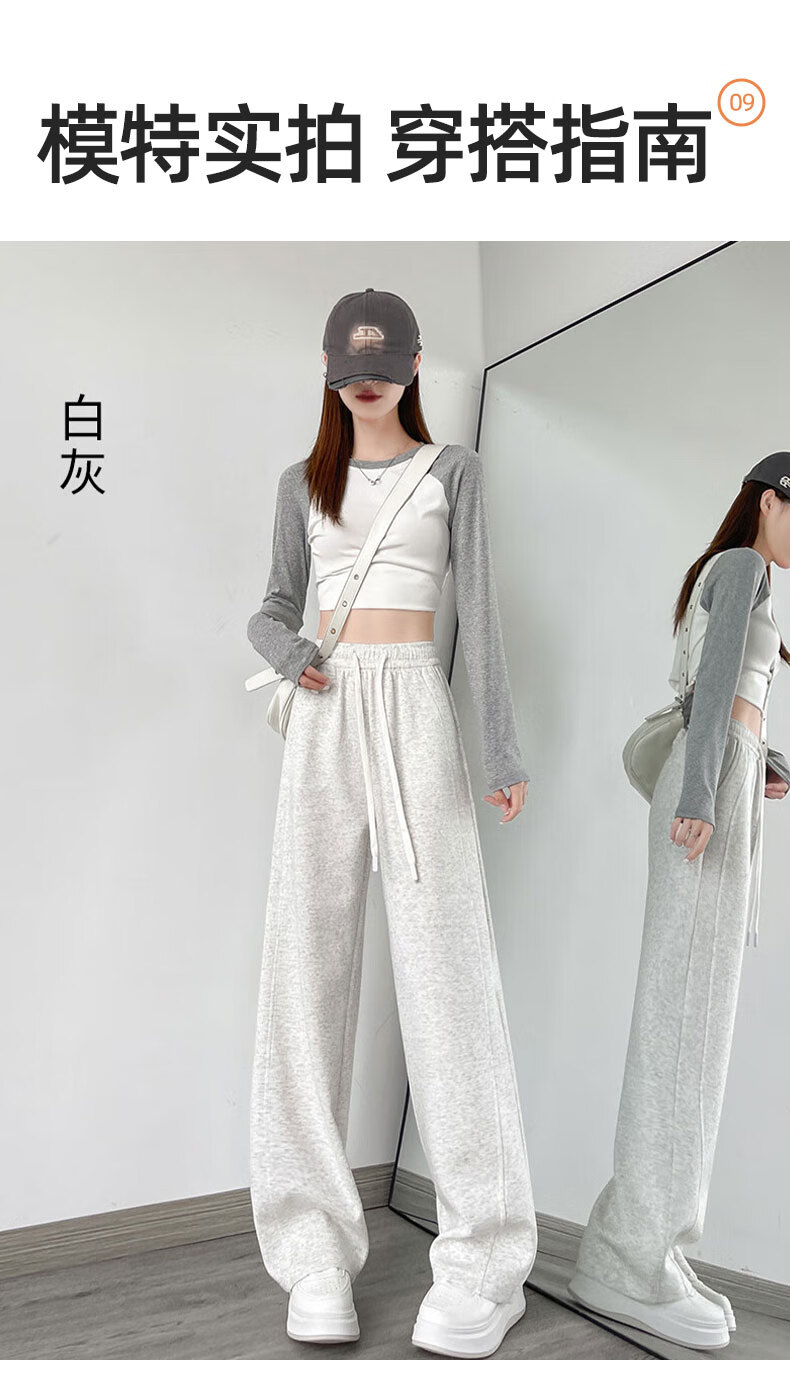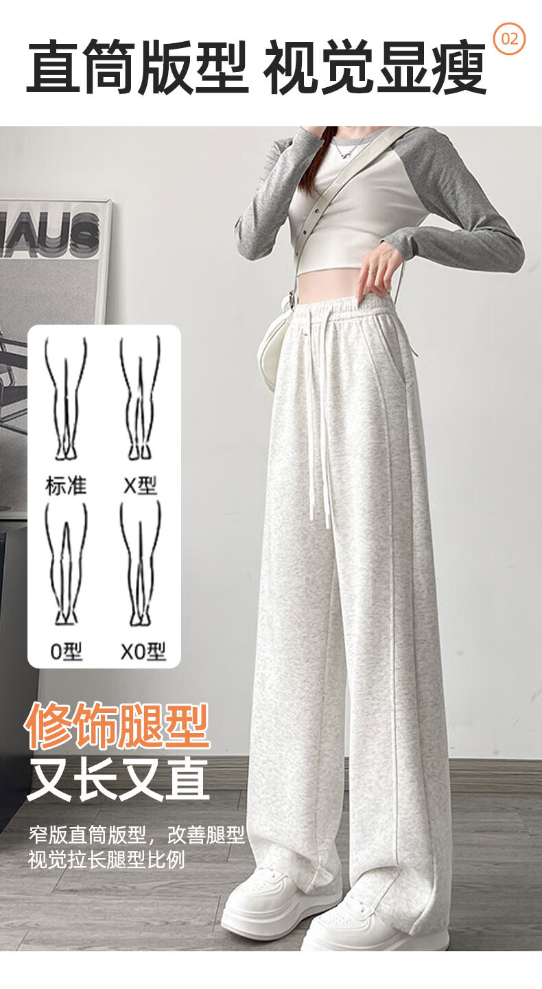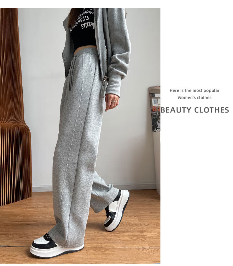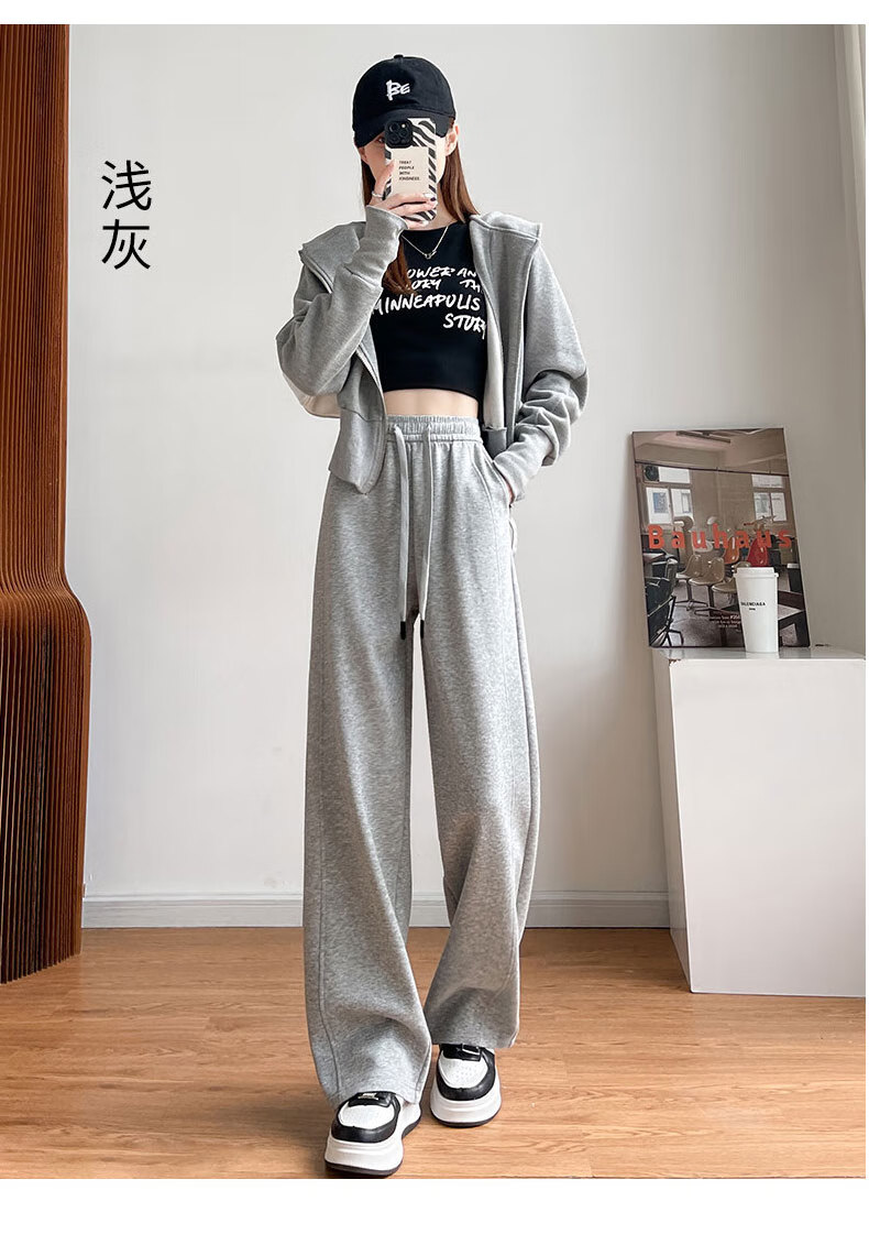 浪莎窄版阔腿运动裤女加绒秋冬款宽松直筒显瘦垂感小个子休闲香蕉裤女 黑色 【特厚羊羔绒】 XL 【推荐120-135斤】