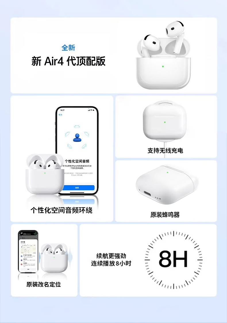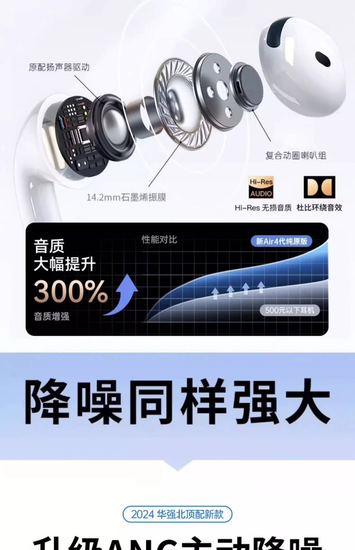 【华强北顶配弹窗款丨Air4代降噪款】蓝牙耳机适配苹果无线2025新款半入耳式 【原版可弹窗全功能ANC降噪版】6代半入耳式 主动降噪+空间音頻+三真电量+弹窗