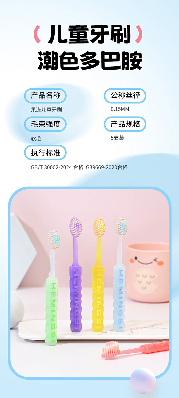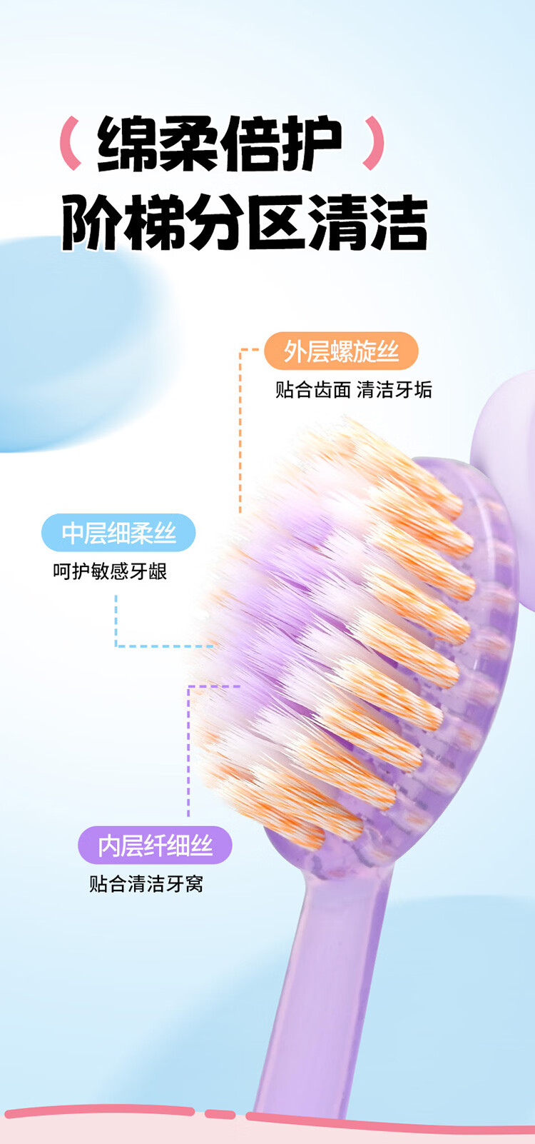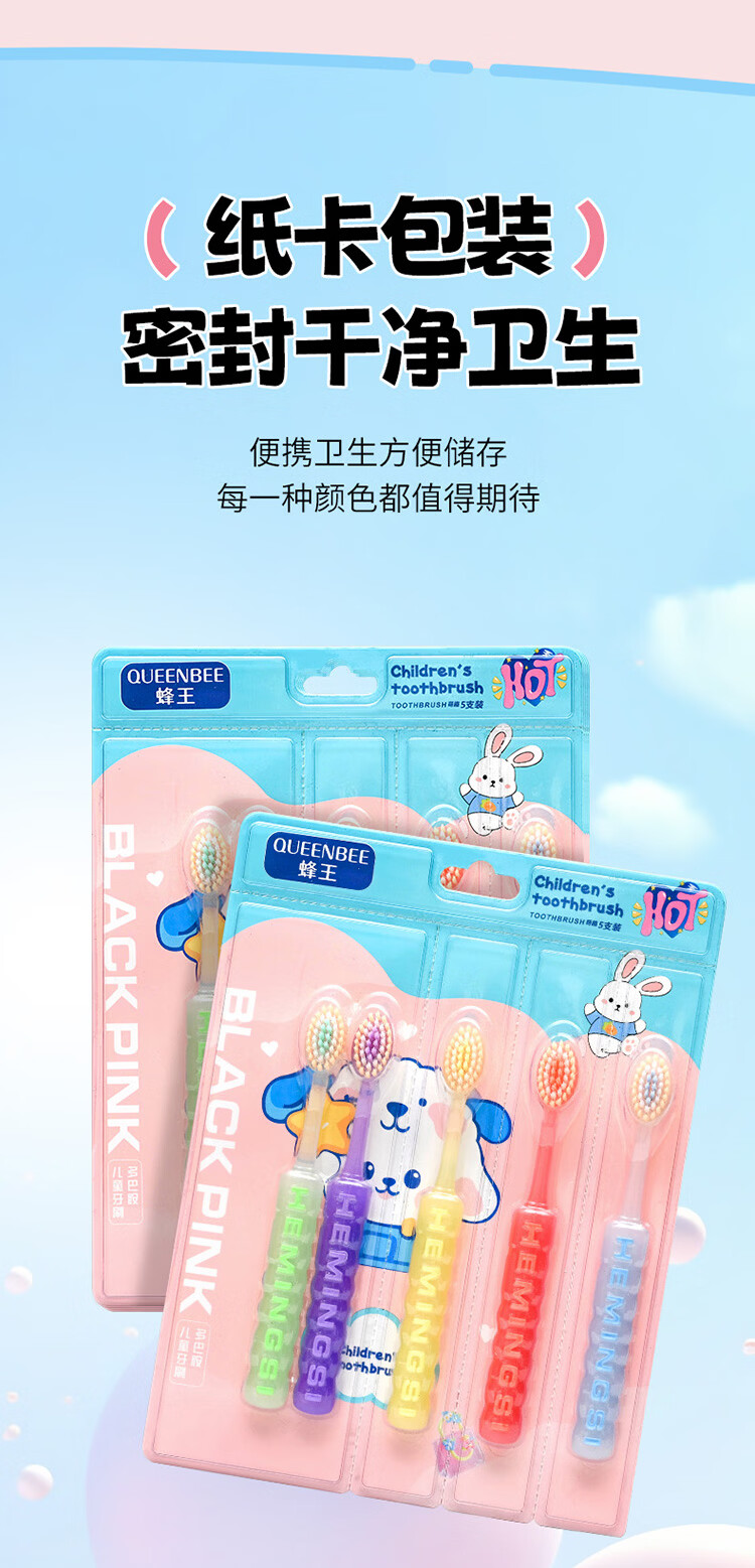 QUEENBEE【果冻多巴胺】新款儿童牙刷软毛护龈3-18岁超细超软绵柔清洁 【果冻多巴胺】儿童牙刷*5支
