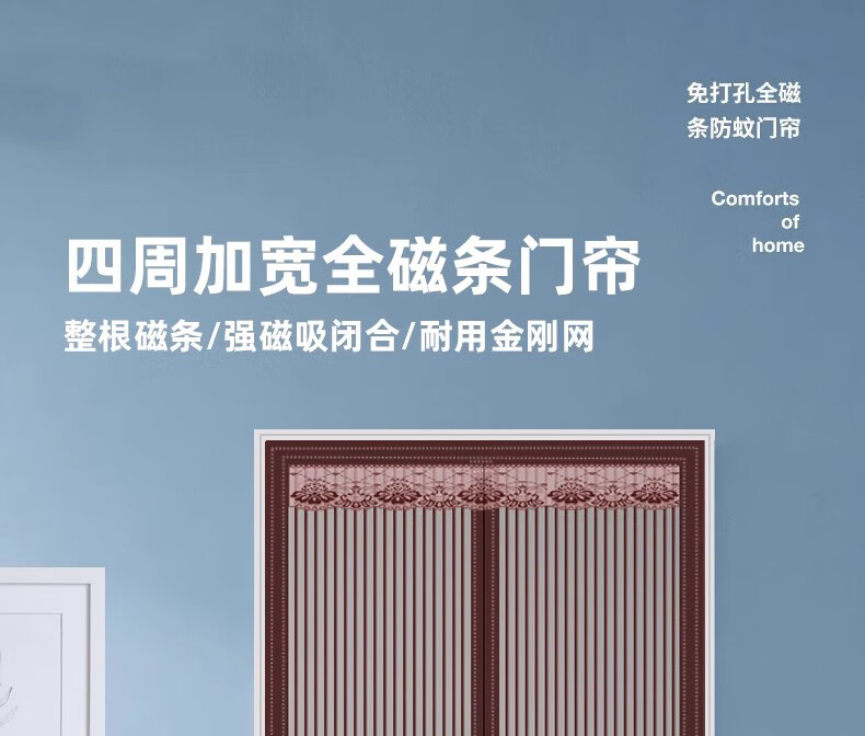 朔朔居全磁条防蚊门帘磁性自吸磁吸免打孔大门防蚊门帘夏季防蝇入户沙门 【全磁条】纯灰色三边加宽 90cm*200cm 宽*高