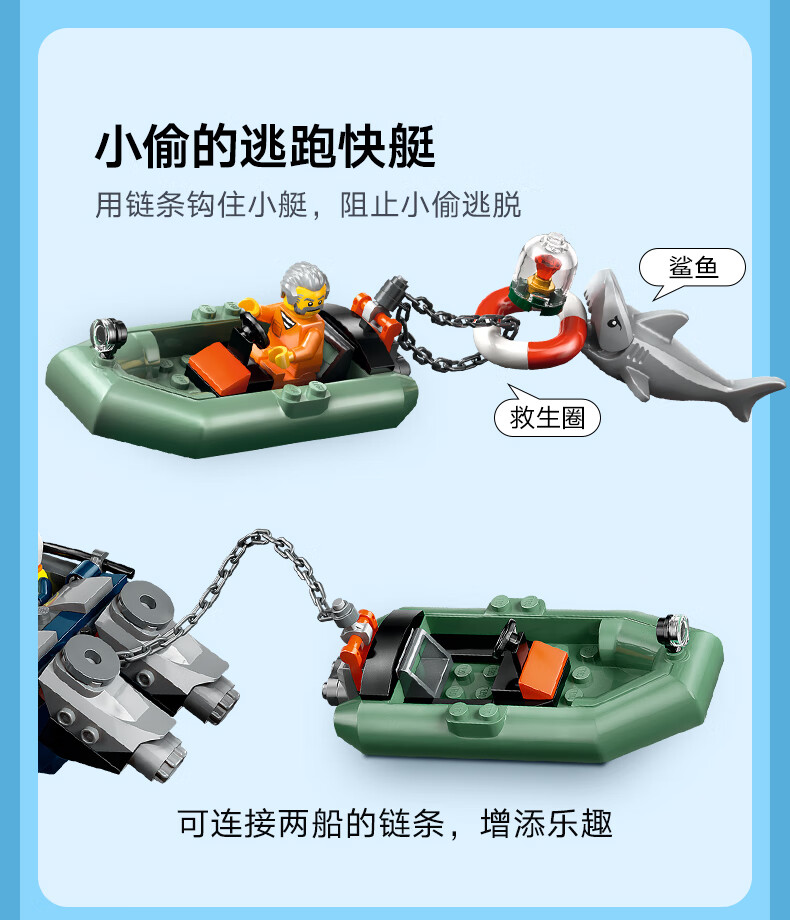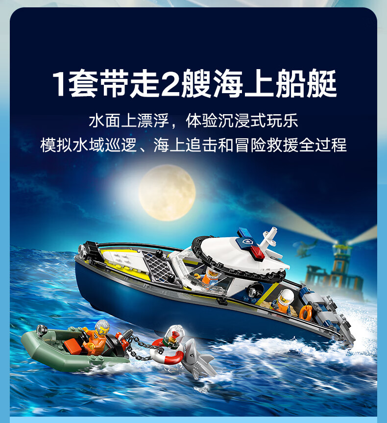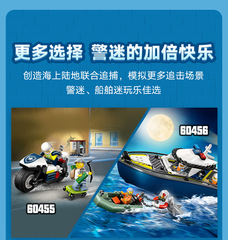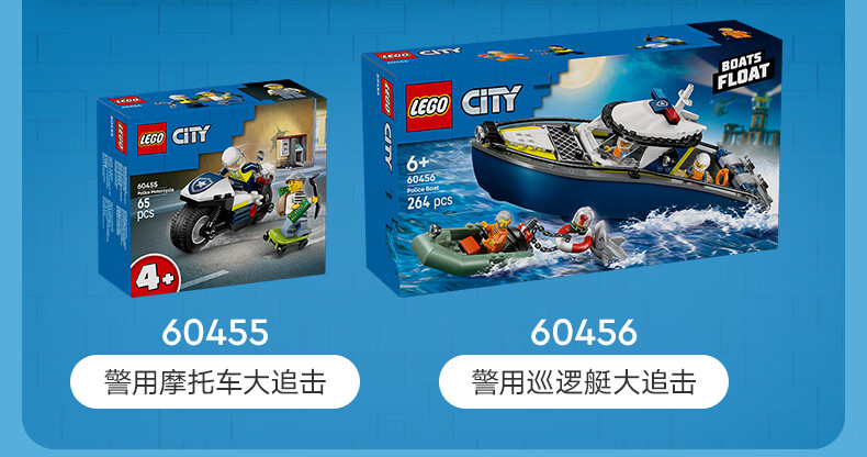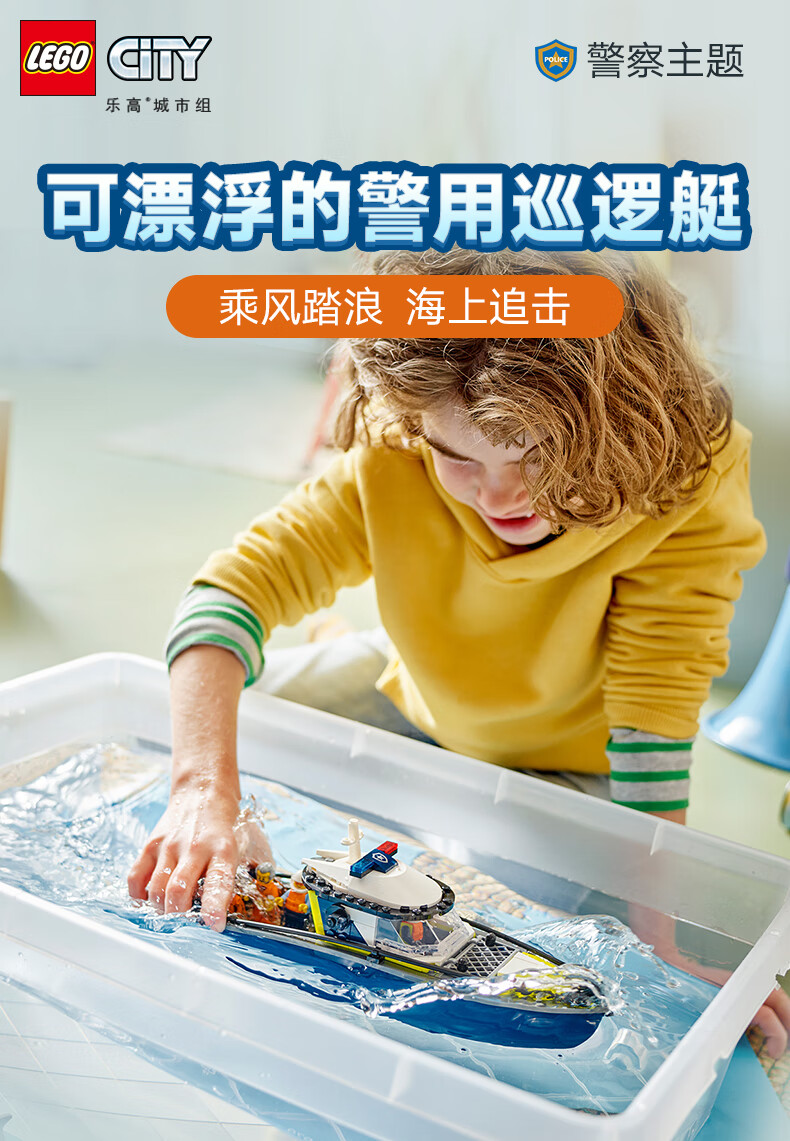 乐高(LEGO)积木城市60456 警用巡逻艇大追击男孩儿童玩具生日礼物新年货装饰