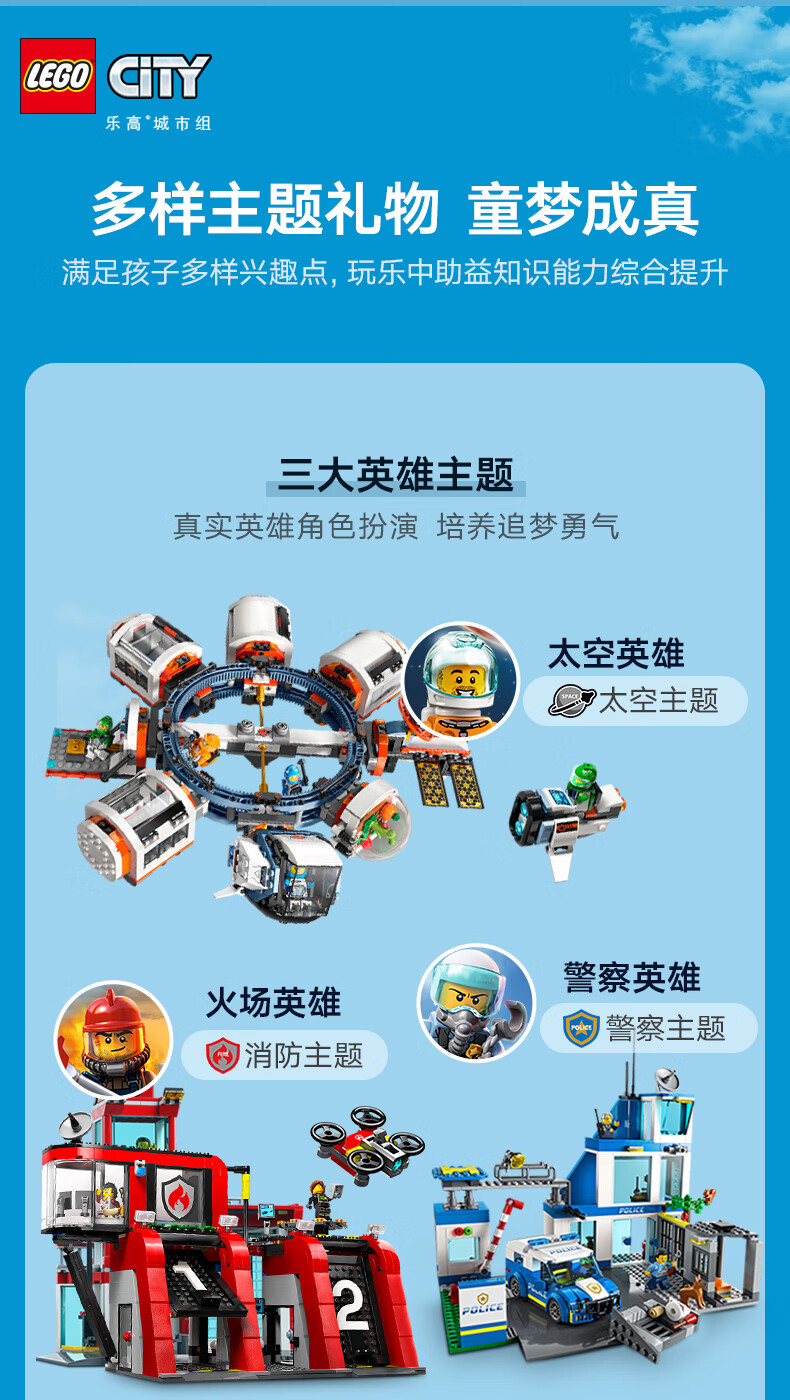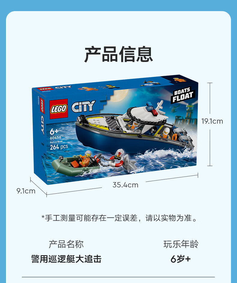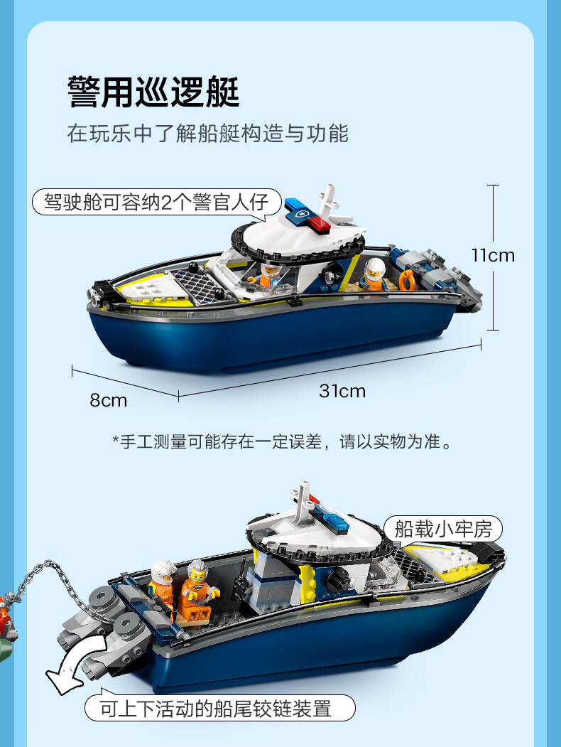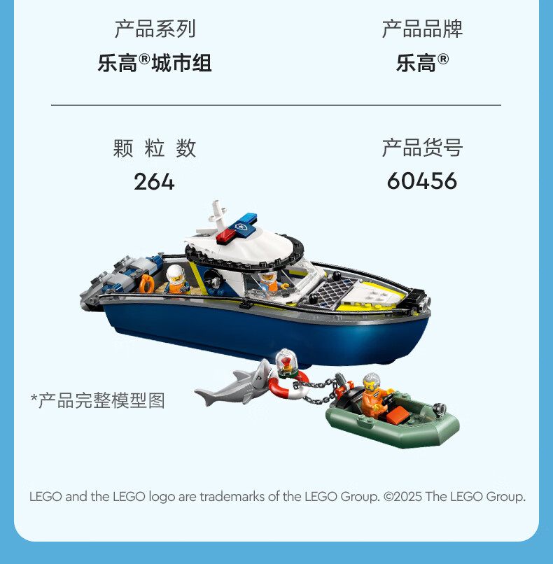 乐高(LEGO)积木城市60456 警用巡逻艇大追击男孩儿童玩具生日礼物新年货装饰