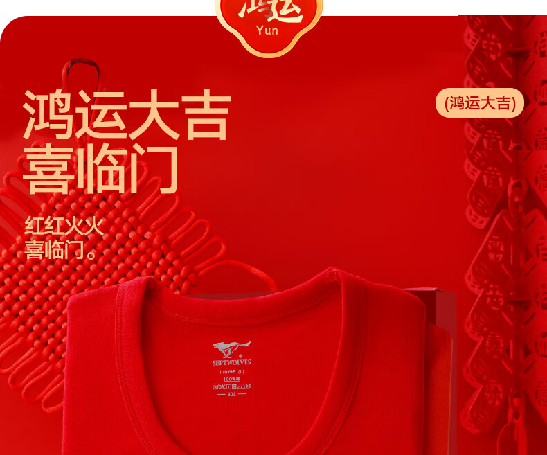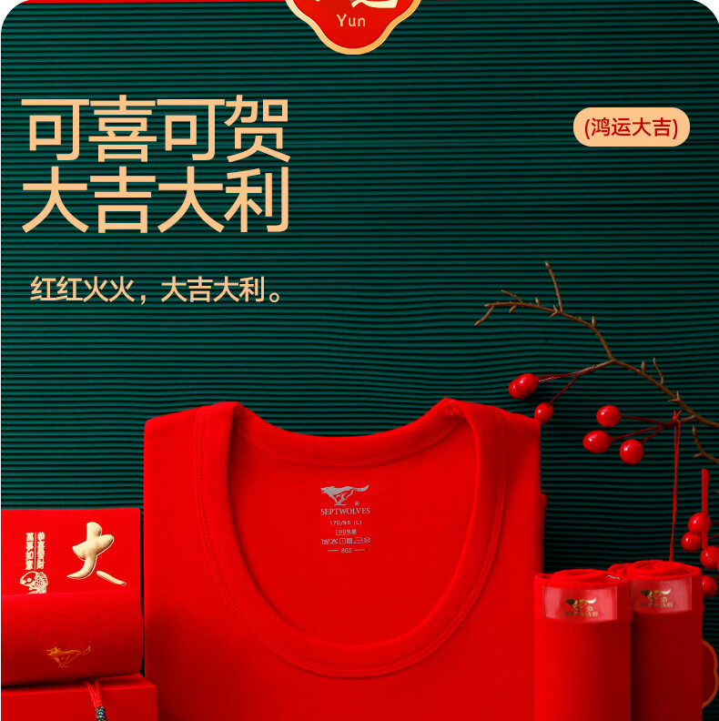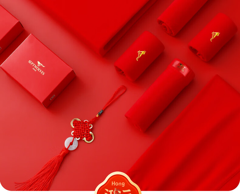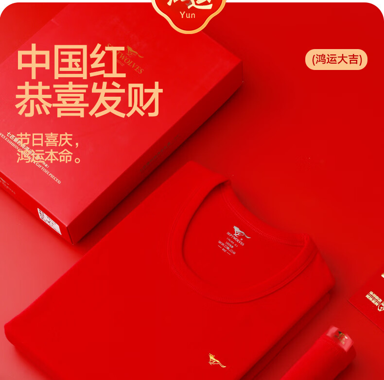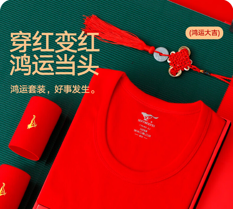 七匹狼【鸿运6件】本命年骐骥红秋衣秋裤套装袜子内裤马年大红保暖礼盒