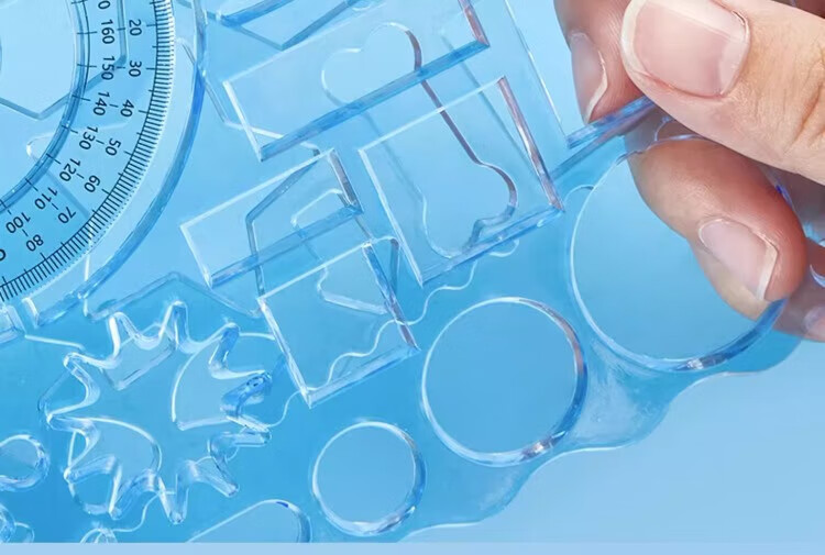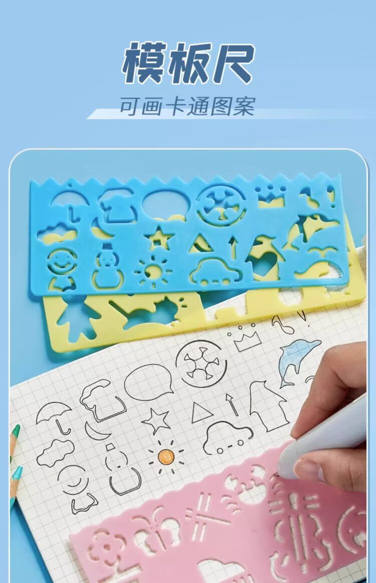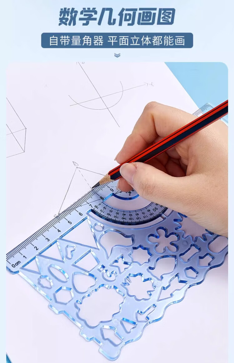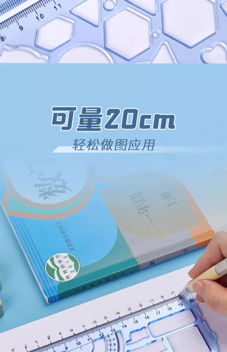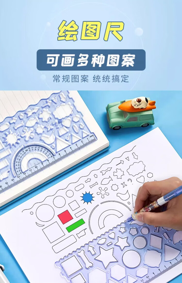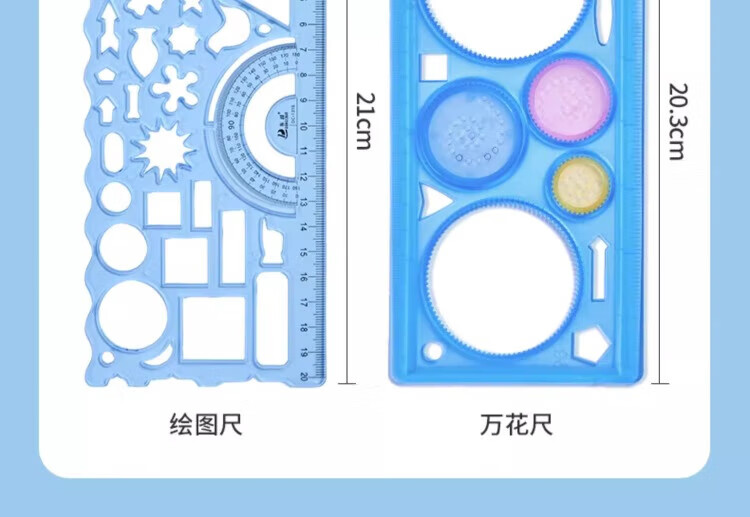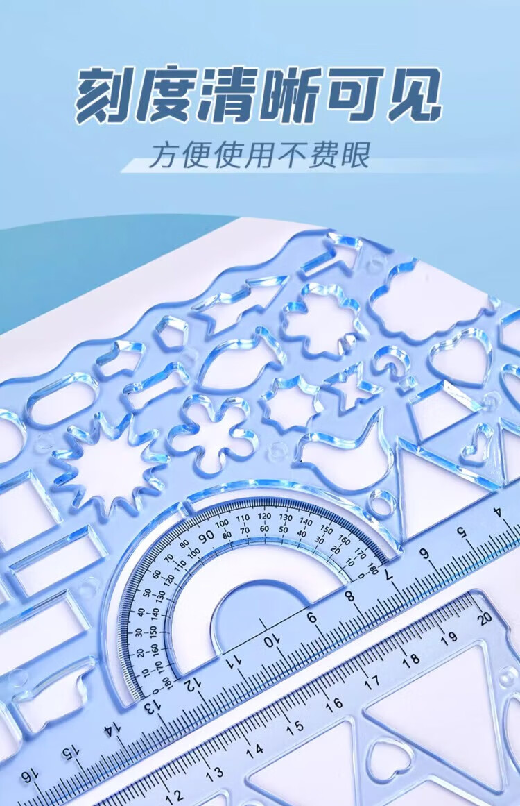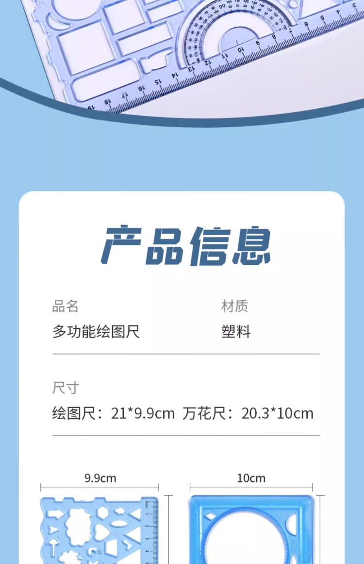 离草 多功能尺子春节手抄报尺子新年手抄报神器万花尺尺子小学生模板多功能尺一年级几何数学七件套 蓝