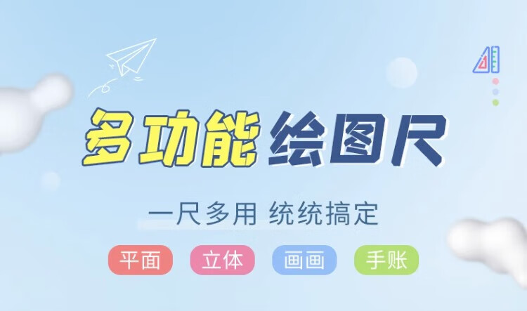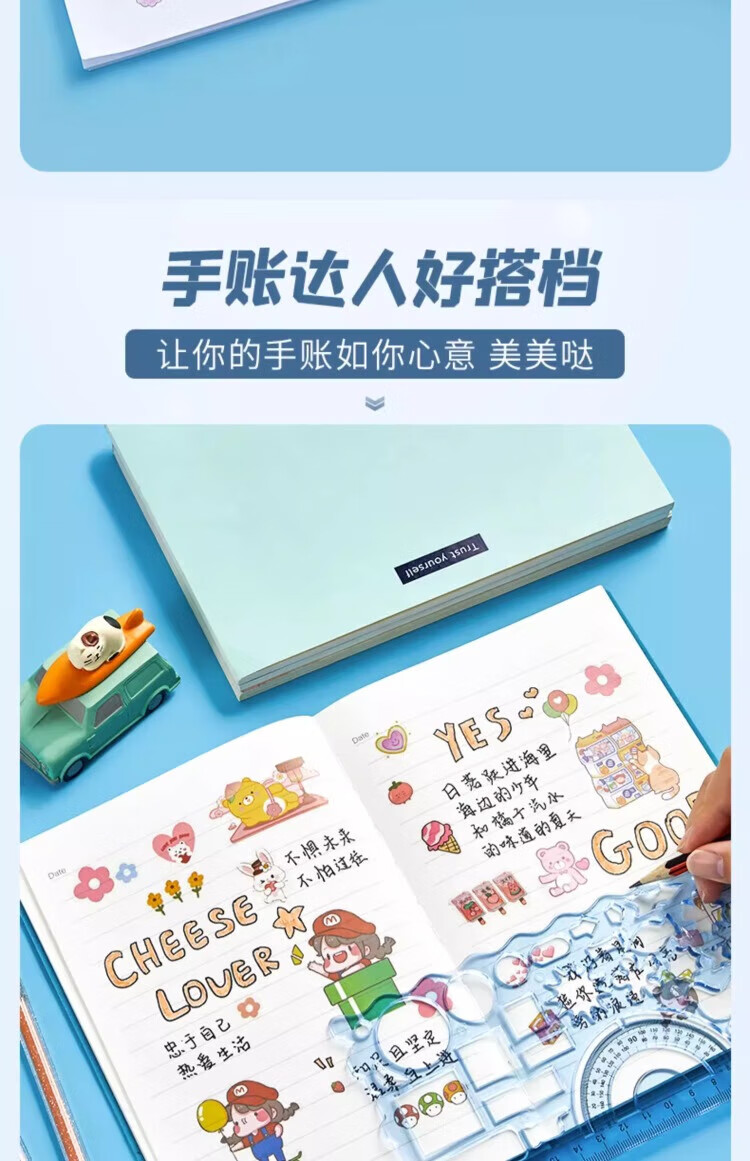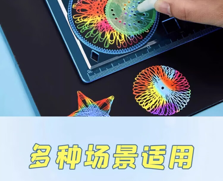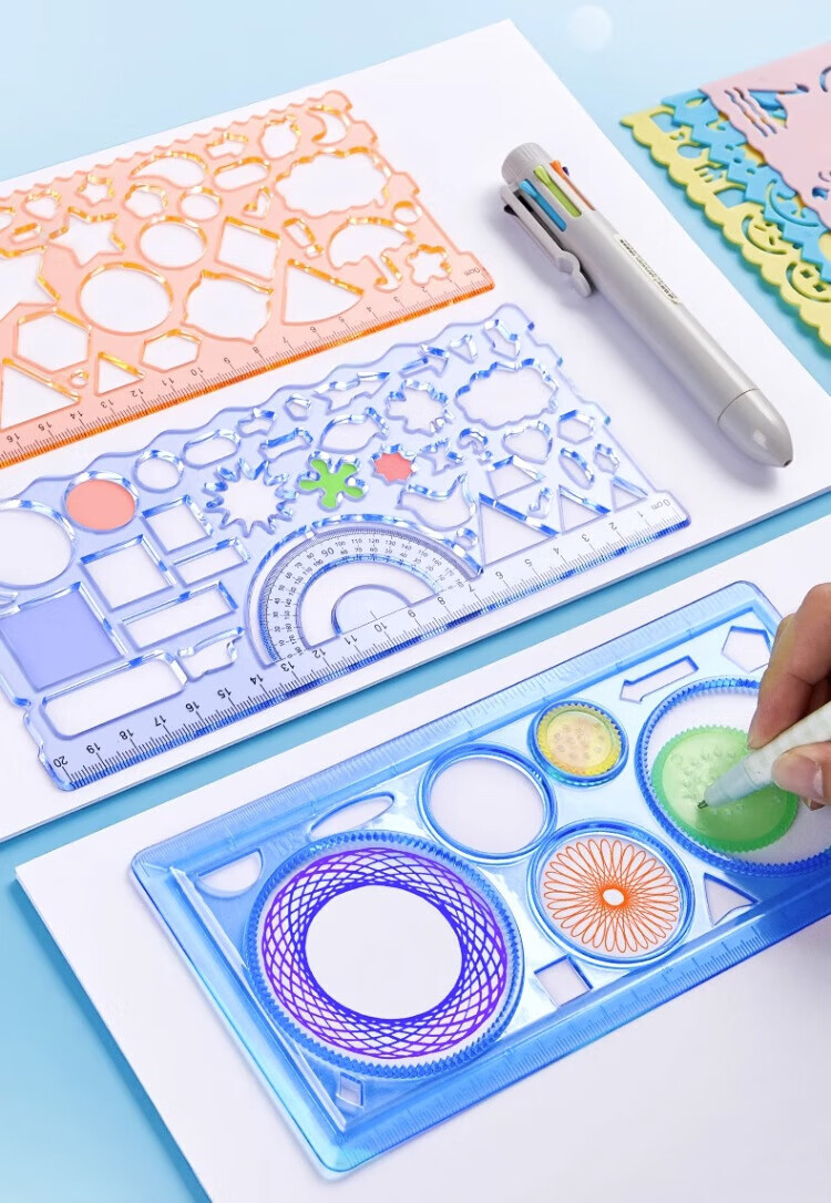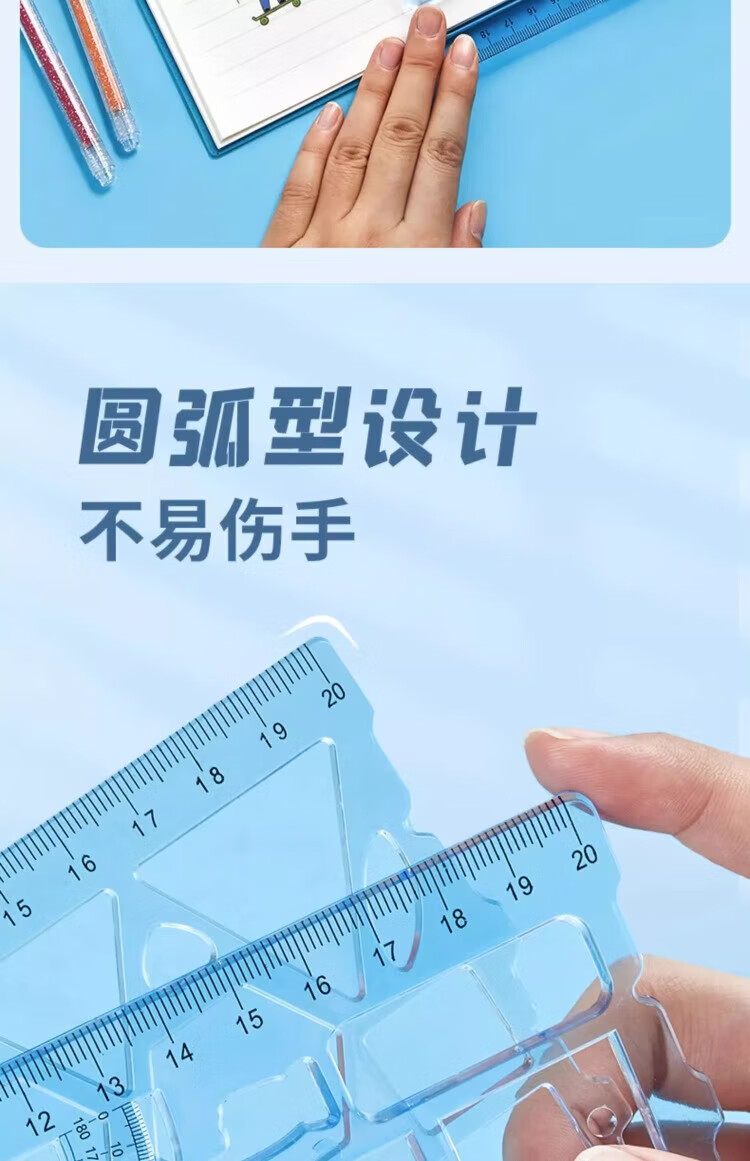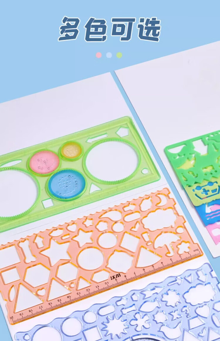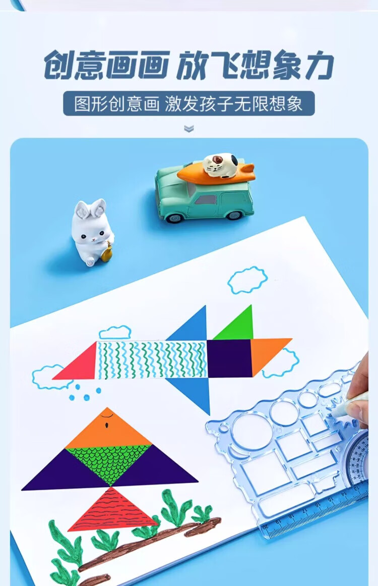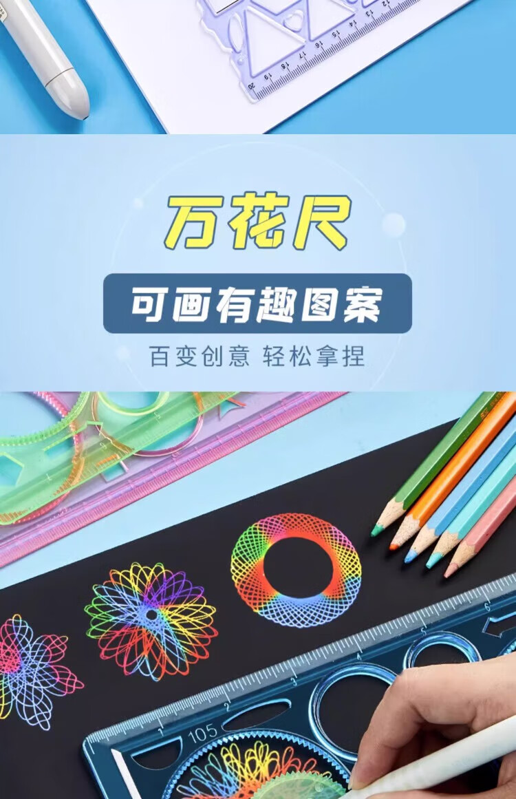 离草 多功能尺子春节手抄报尺子新年手抄报神器万花尺尺子小学生模板多功能尺一年级几何数学七件套 蓝