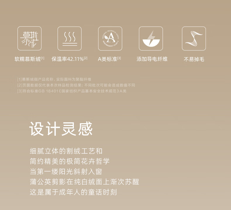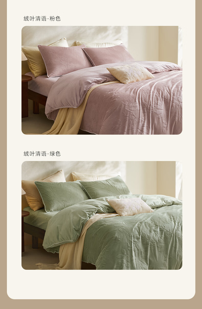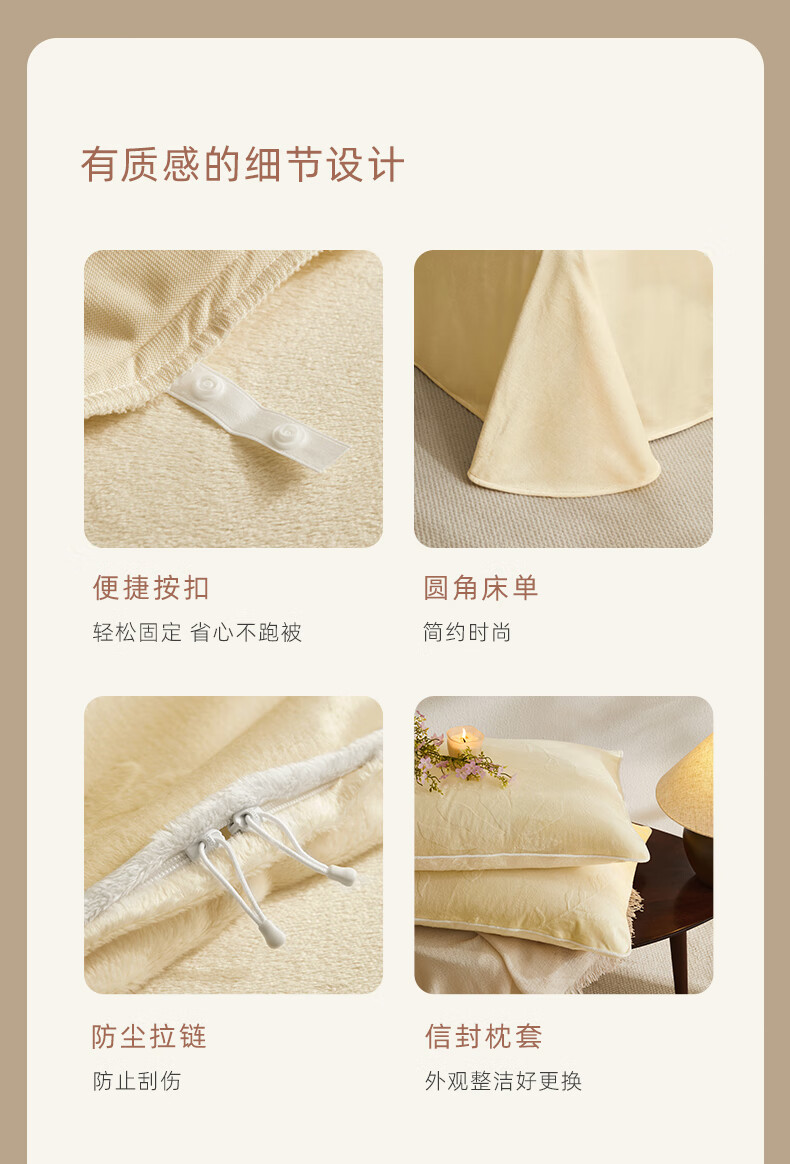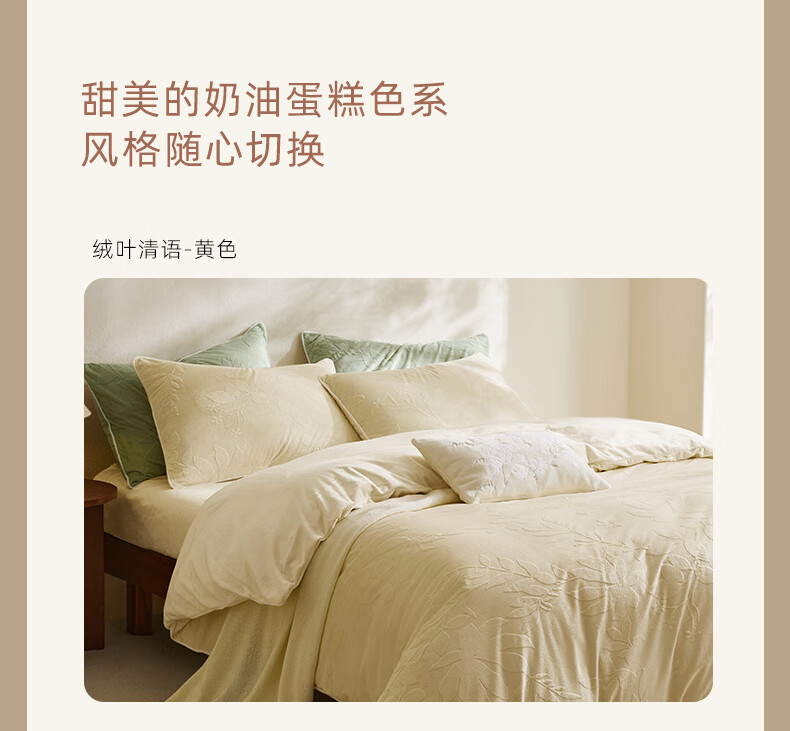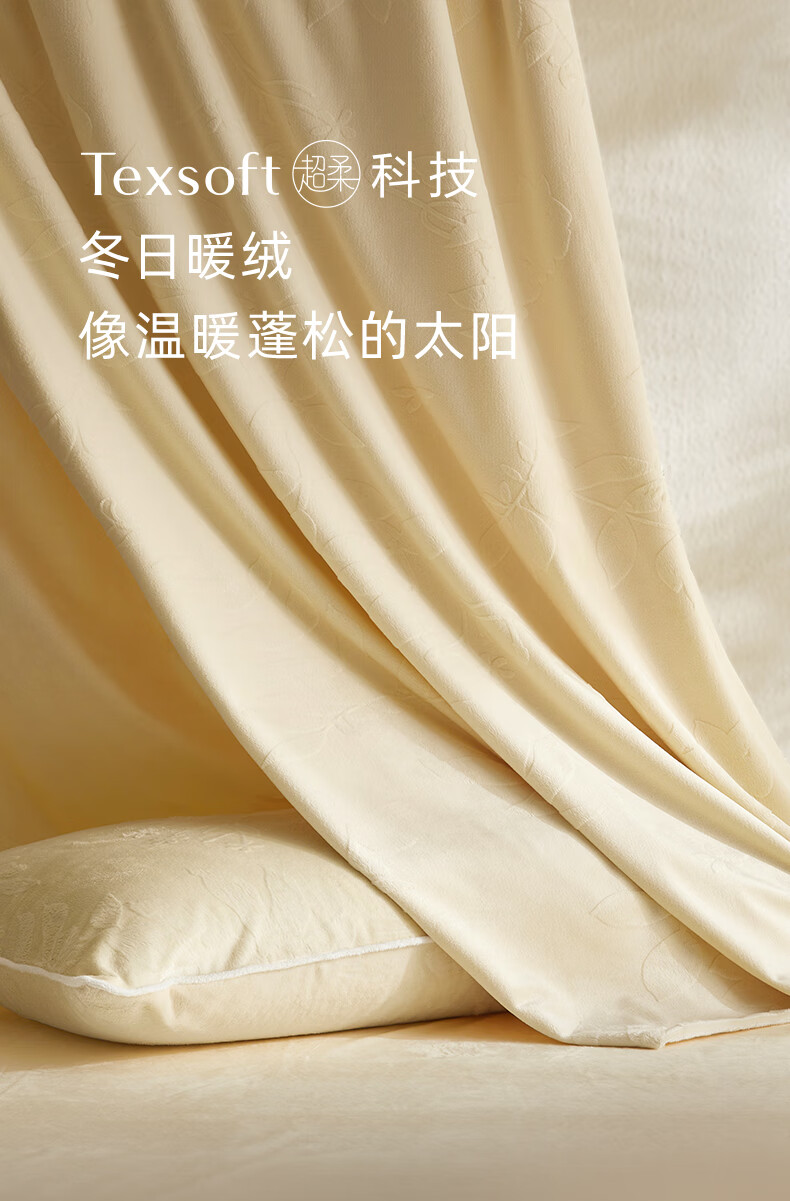 罗莱家纺 A类慕斯绒冬季加绒四件套牛奶绒套件珊瑚绒 浅黄色220*250