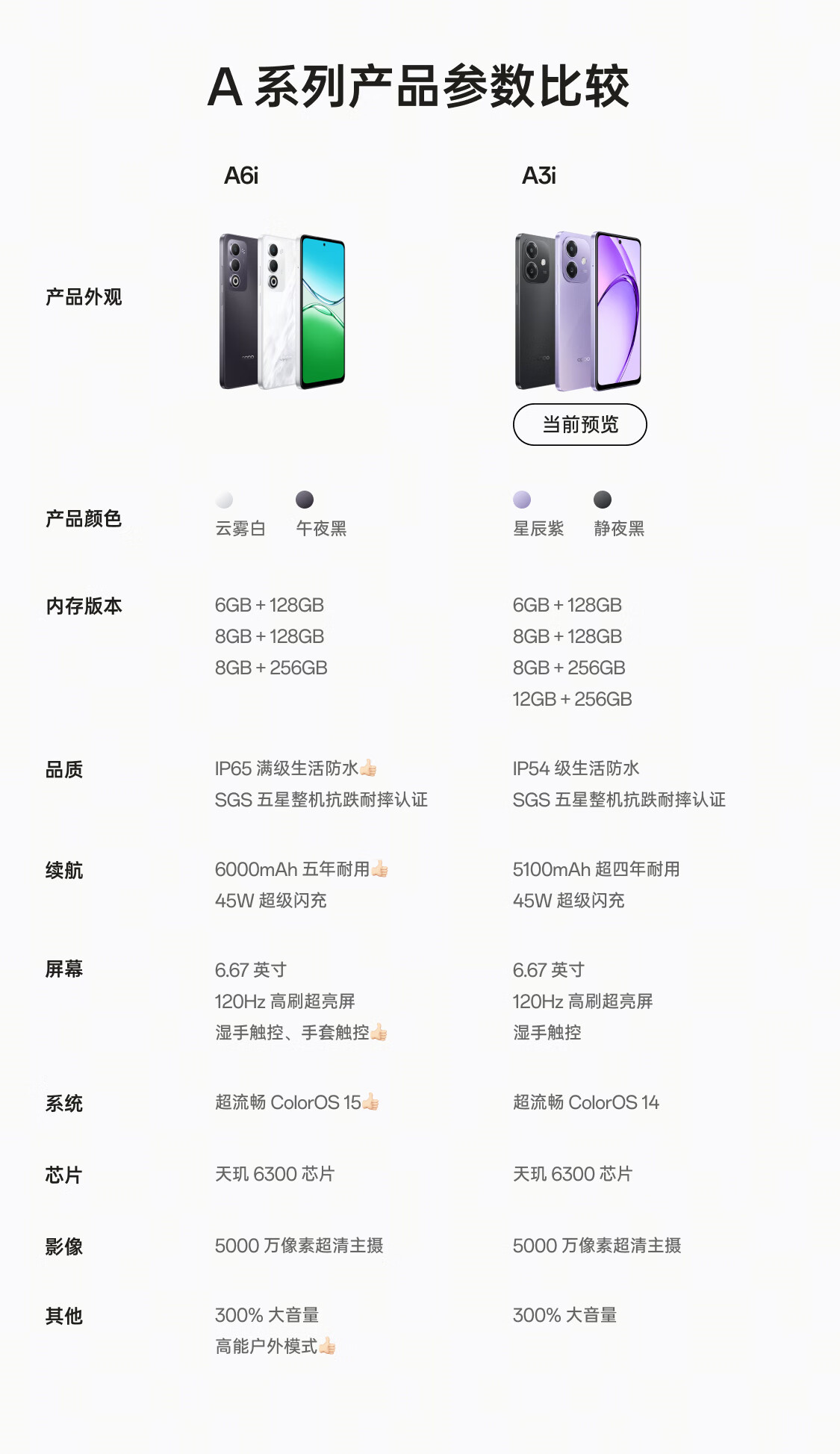 OPPO A3i 8GB+128GB 静夜黑 抗摔抗水溅 5100mAh大电池 45W闪充 120Hz高刷 5G 老人智能手机 国家补贴