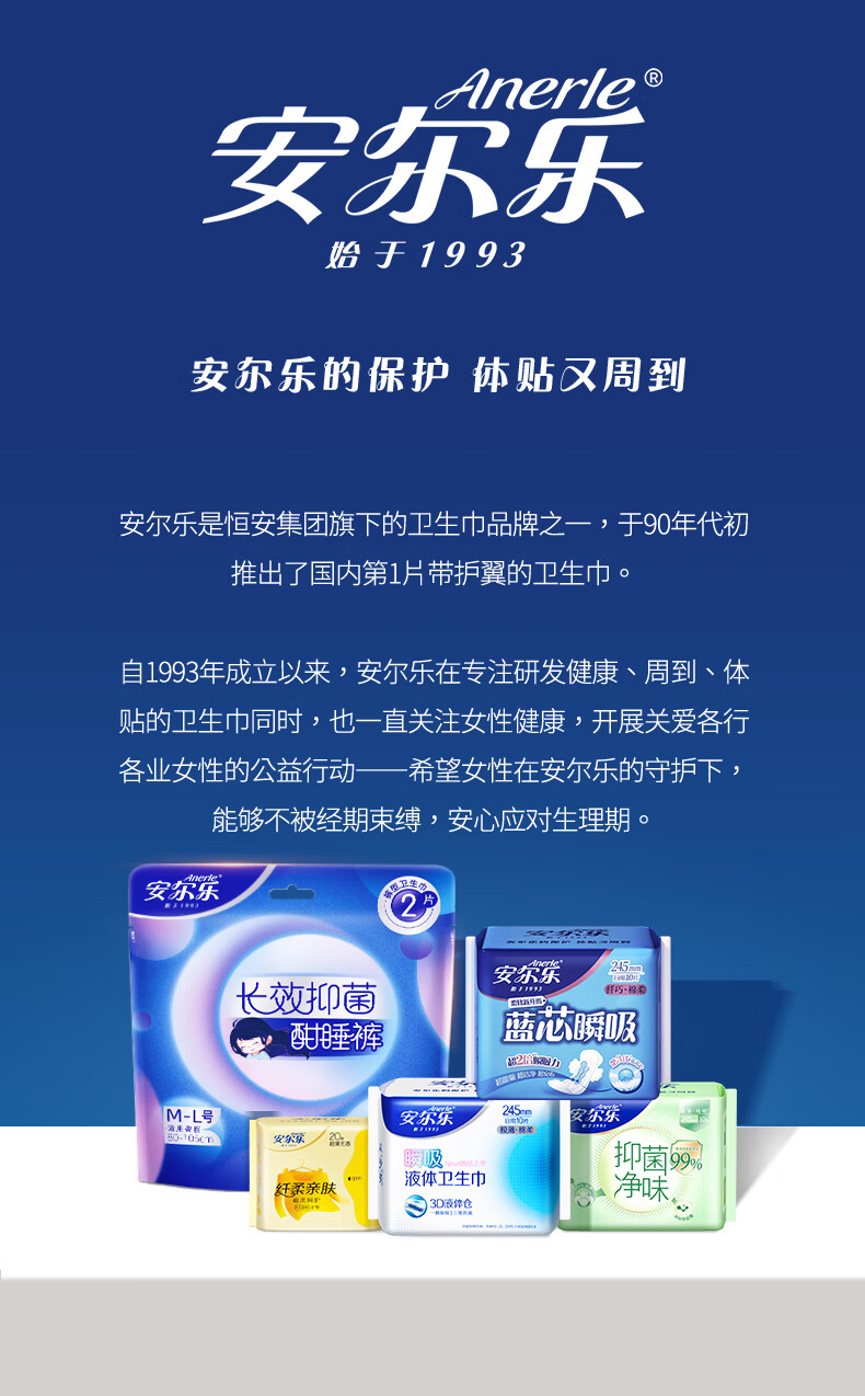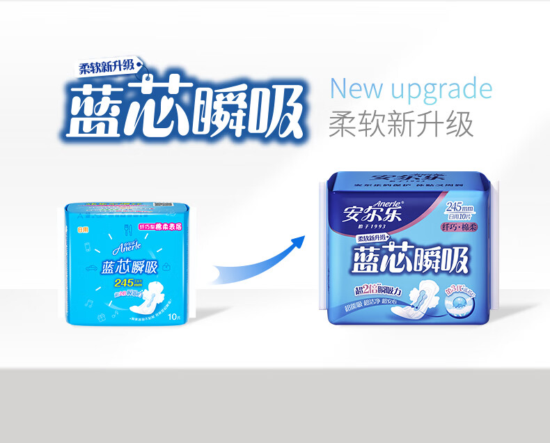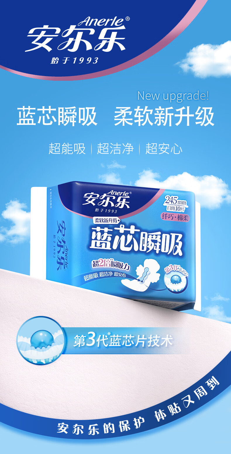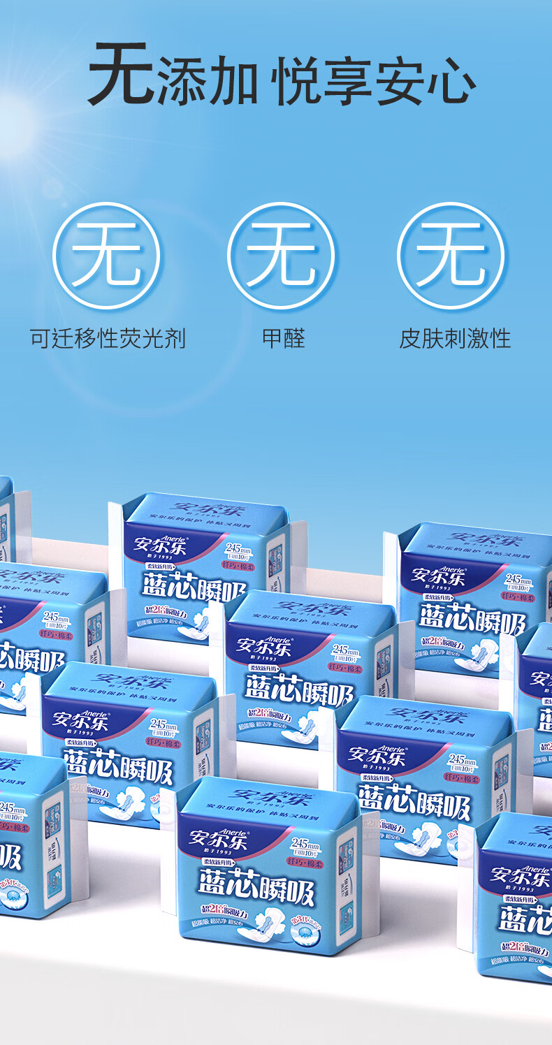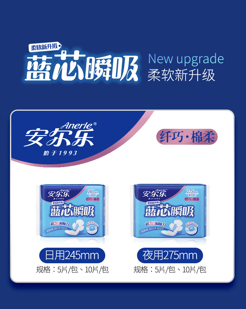 安尔乐卫生巾日夜蓝芯瞬吸245mm15片+275mm5片【品牌直供 安心品质】