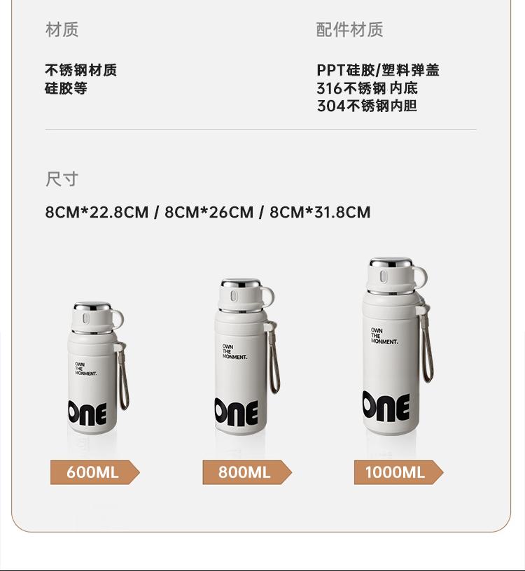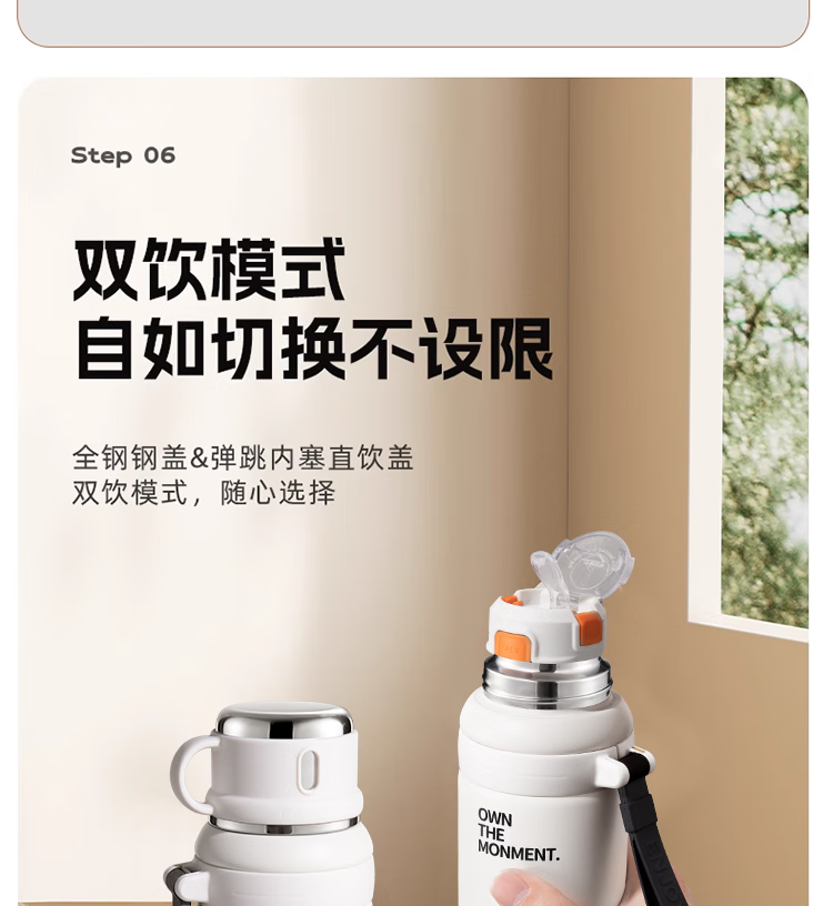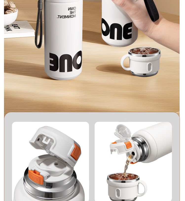 松册304保温杯男女生吸管水杯初中生高颜值大容量上学专用运动水杯 304钢保温杯-茉莉白 600ml /一杯三饮