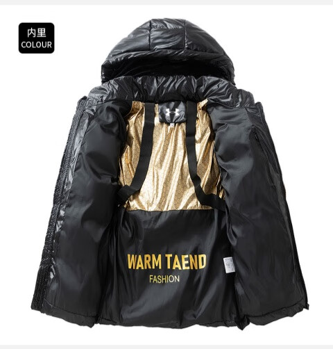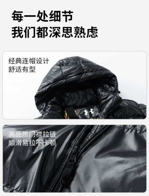 安德玛冬季新款男士加厚羽绒棉服防风防水时尚经典外套保暖休闲大码上衣 黑色 3XL 建议体重170-190斤