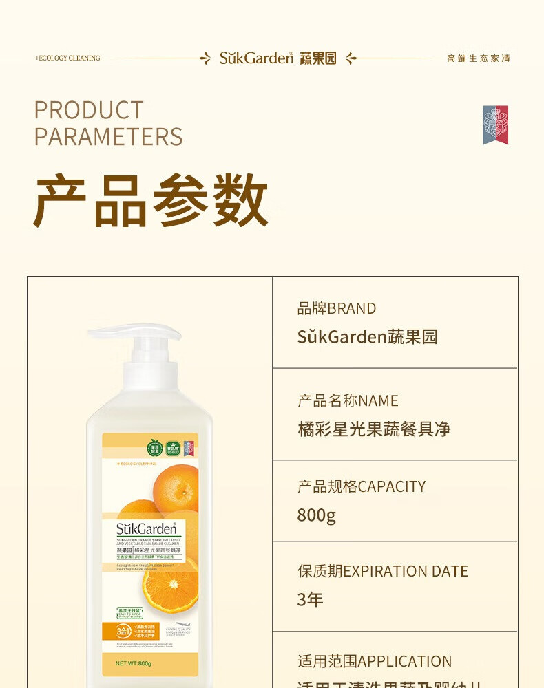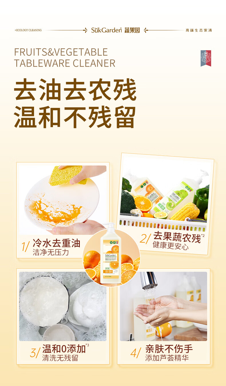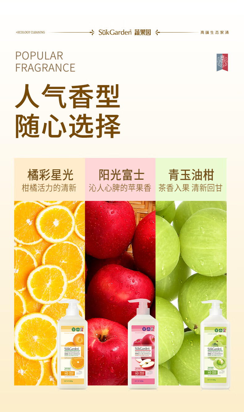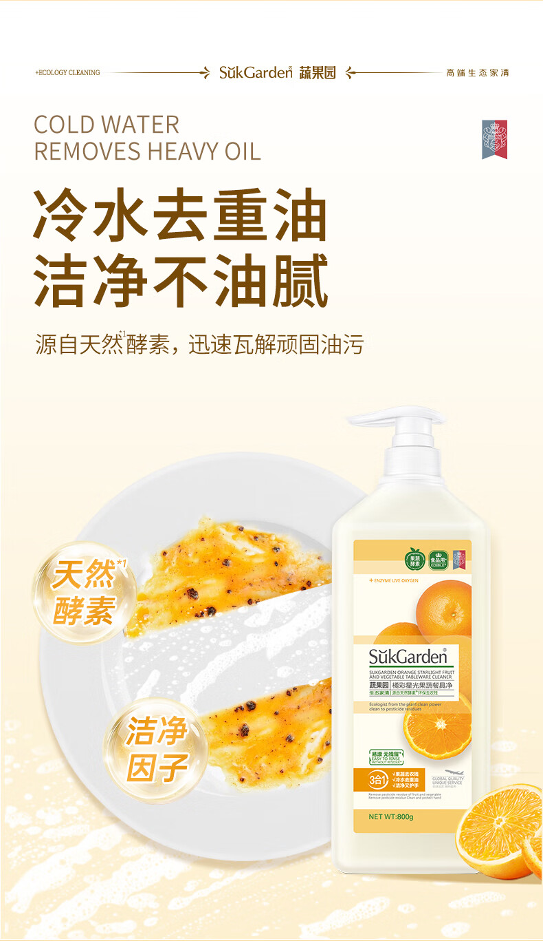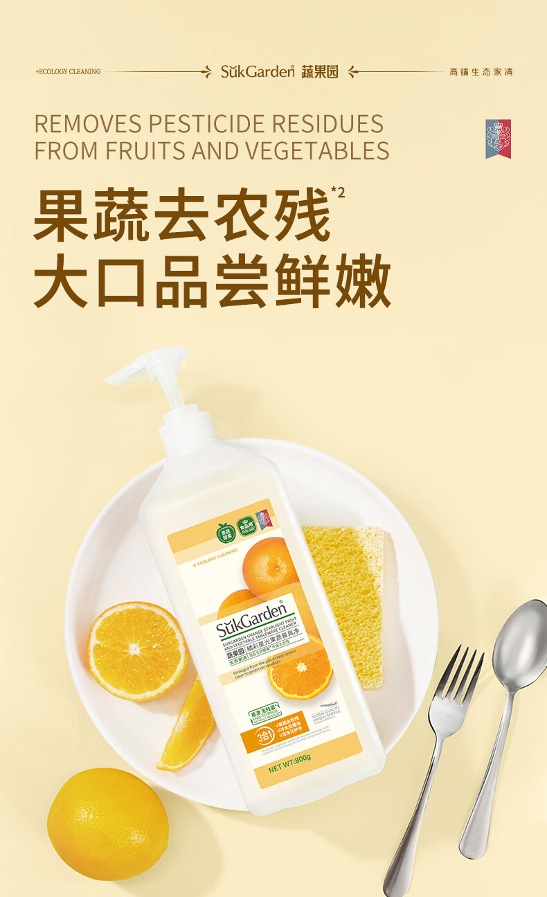 蔬果园果蔬洗洁精食品用a类轻松去油蔬果去农残洗碗液洗涤灵餐具净 【青玉油柑】洗洁精800g*3