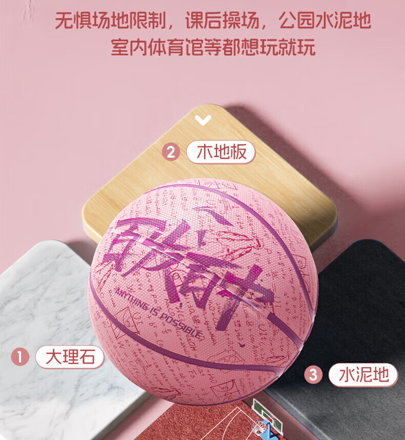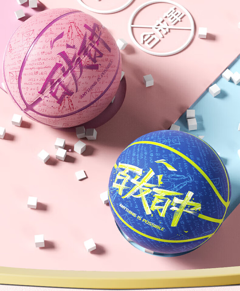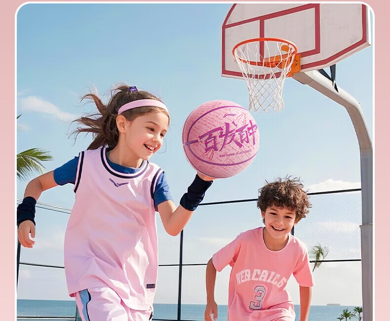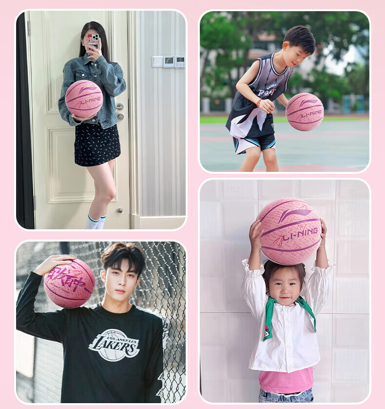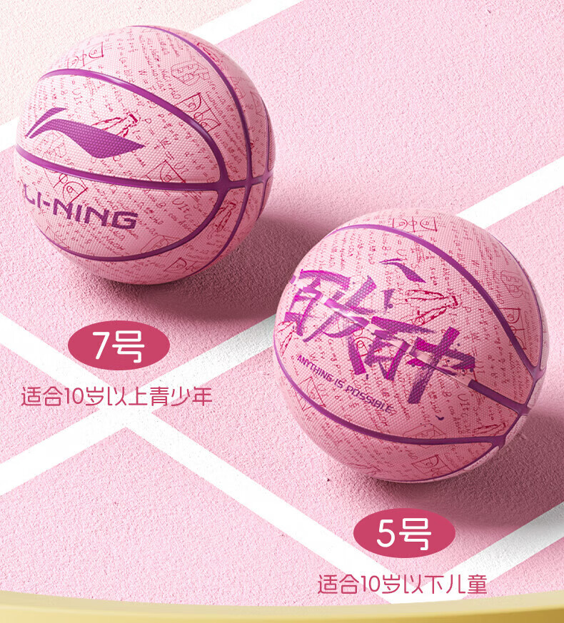 李宁(LI-NING)儿童篮球5号成人7号青少年女比赛训练专业室内外吸湿防滑标准蓝球 百发百中-青绿 5号/青少年