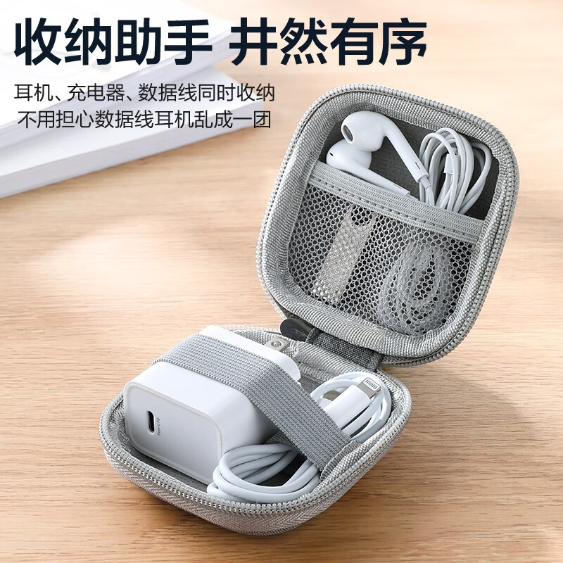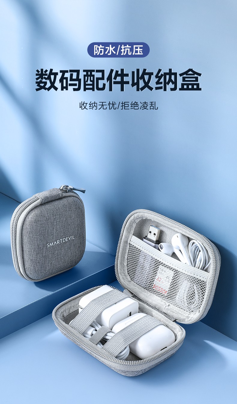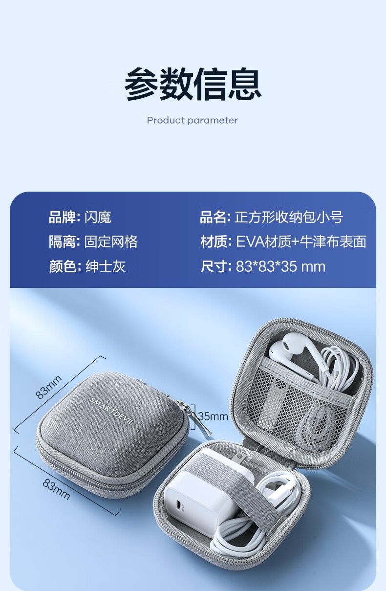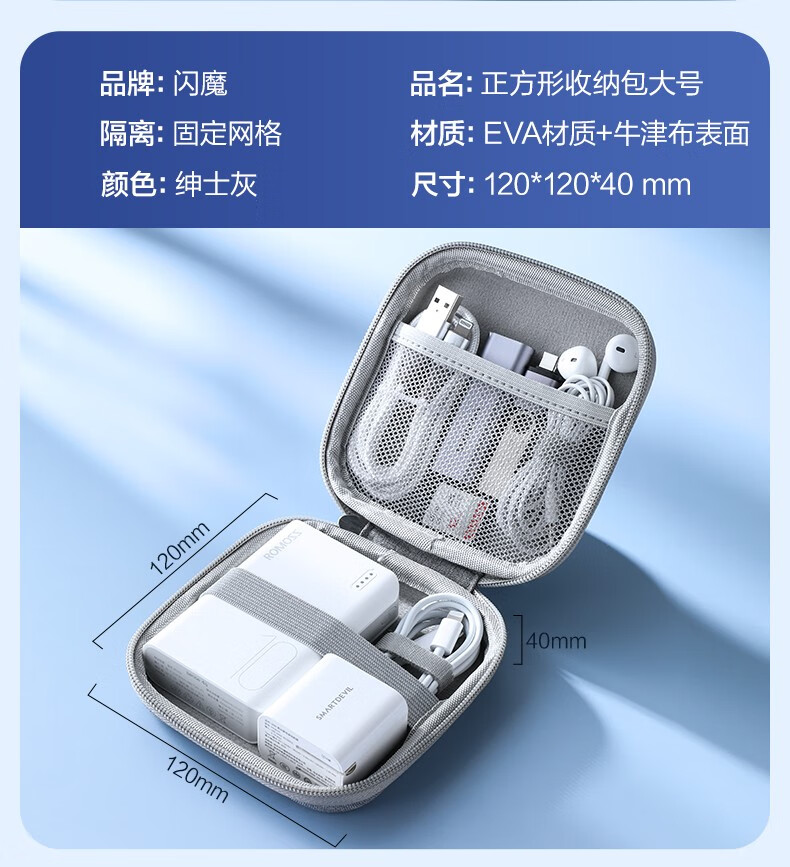 闪魔【精选好物】 数码收纳包数据线收纳便携包硬盘盒充电器耳机配件 【绅士灰-牛津布】大号正方形