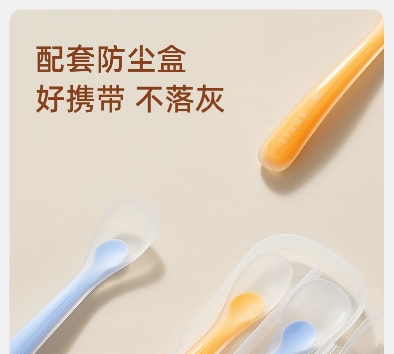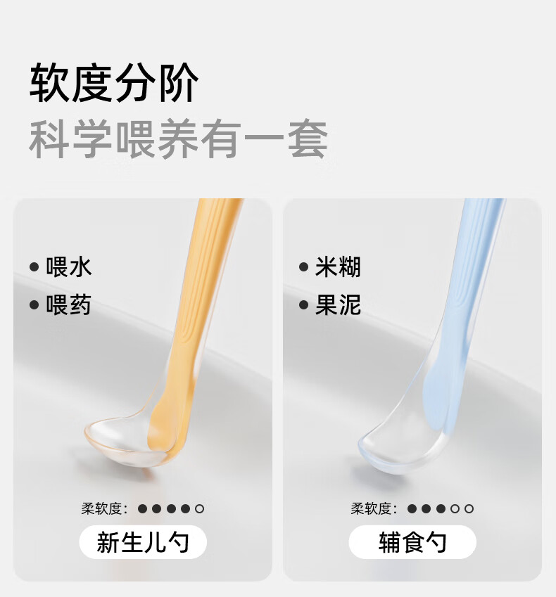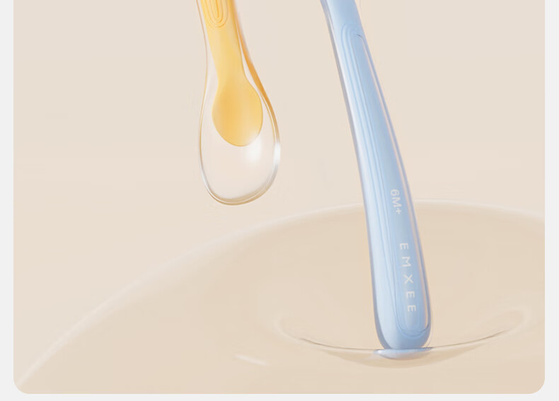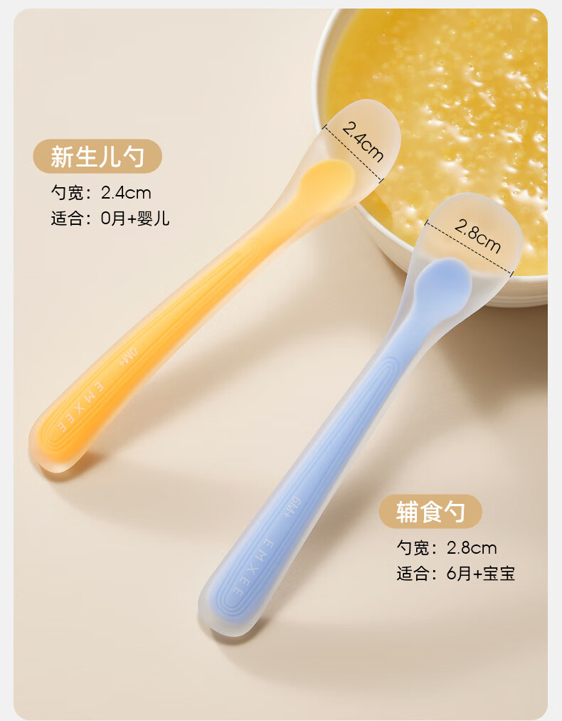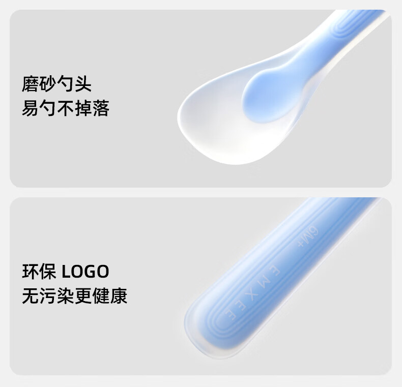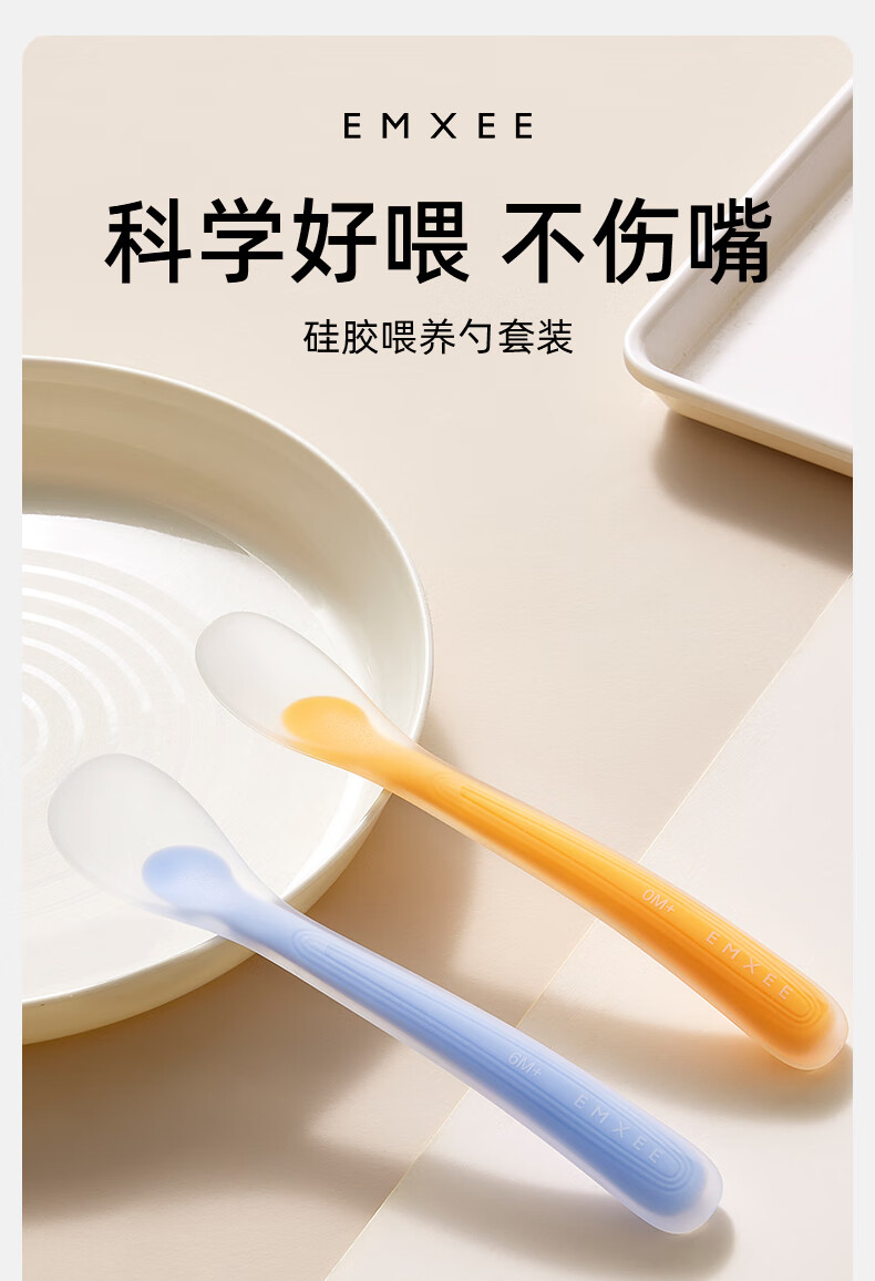 嫚熙(EMXEE)宝宝硅胶软勺餐具婴儿喂奶喂水勺子儿童吃饭辅食勺2支 晴空蓝+赤霞橙