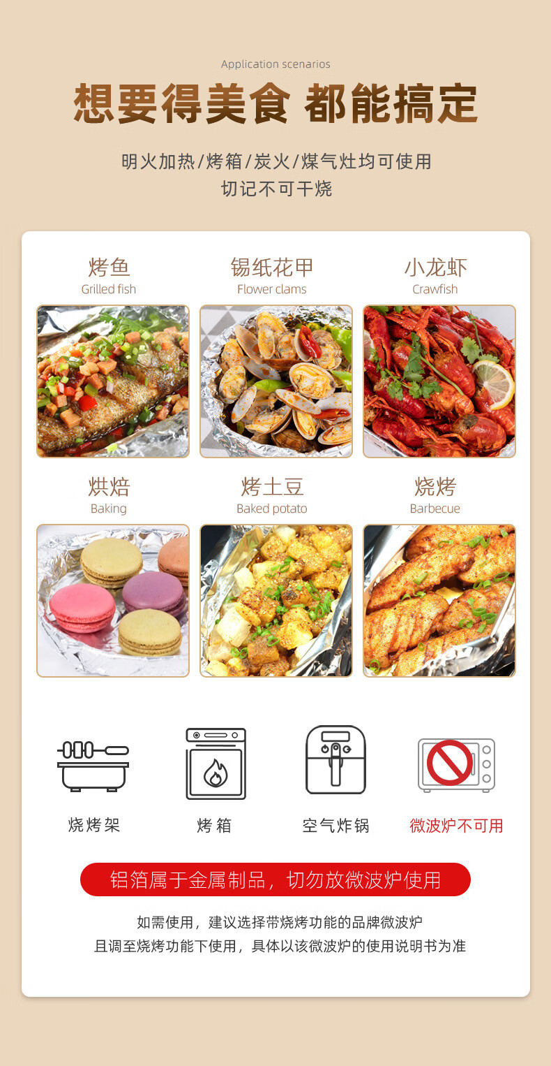 SDKYCJ加厚铝箔锡纸厨房烘焙烧烤烤箱烤鱼空气炸锅专用一次性锡纸卷 10米长*30厘米宽