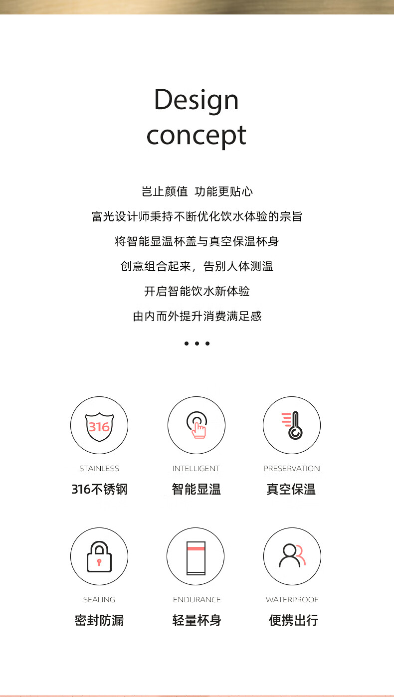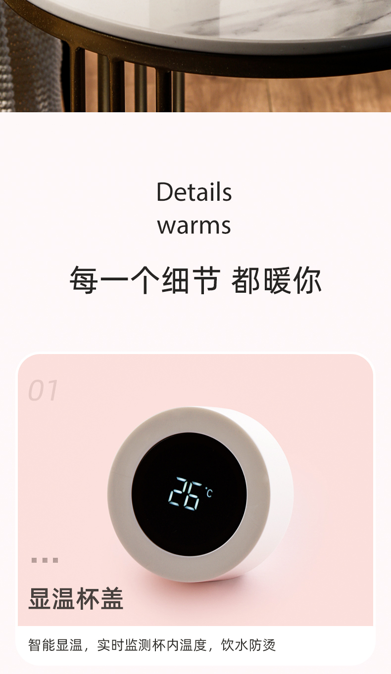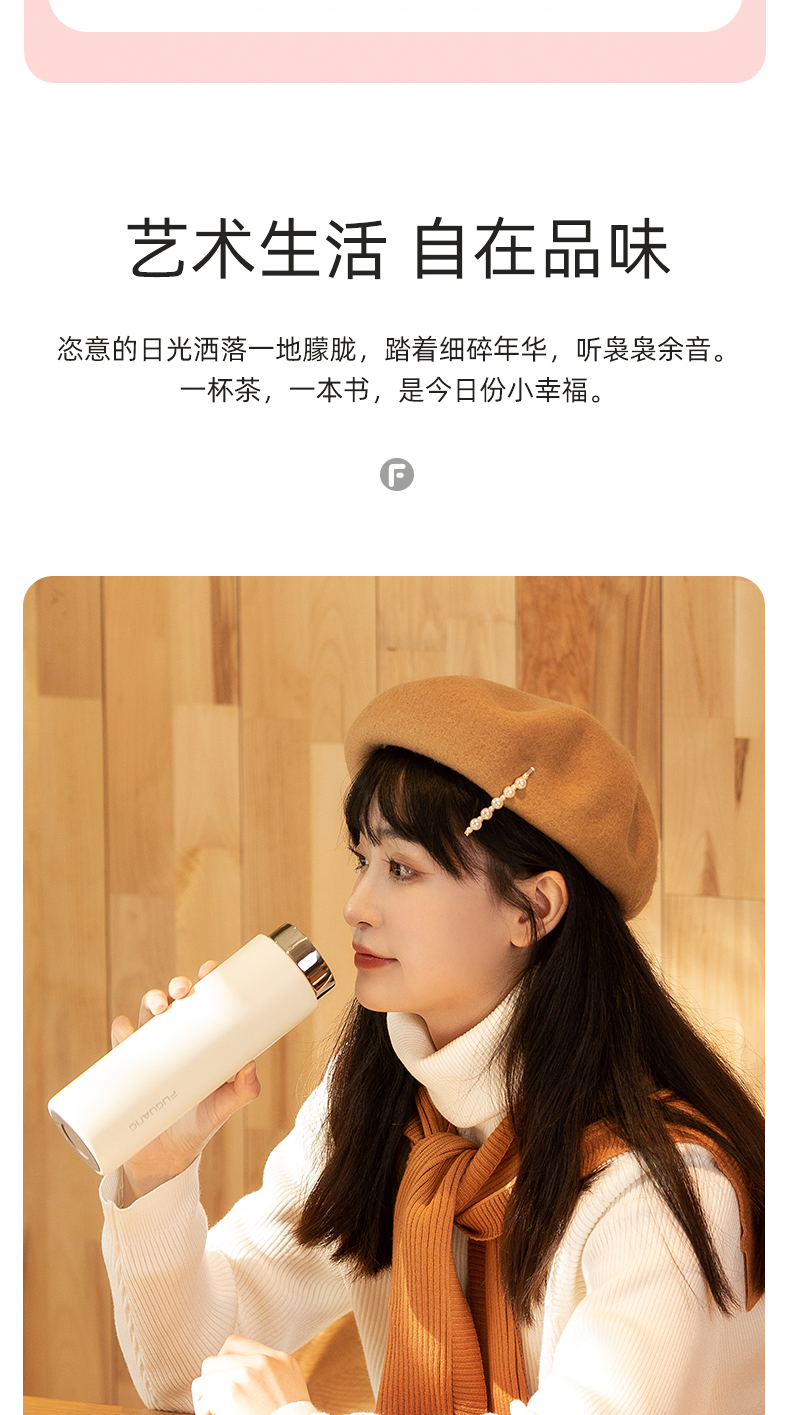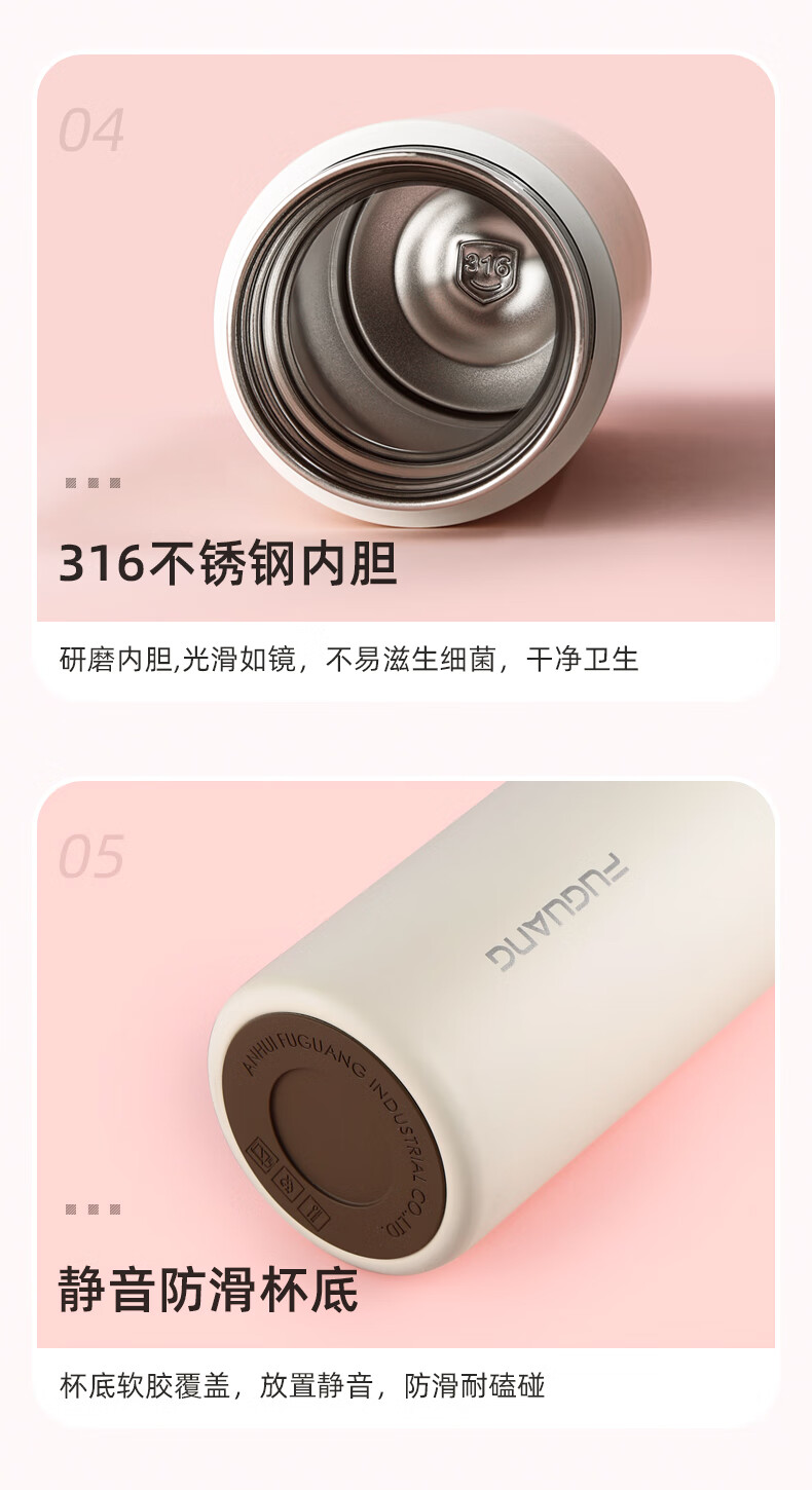 富光 保温杯 SUMMER系列智能显温杯 316不锈钢杯子男女车载水杯便携简约时尚泡茶杯带温度显示 白色380ml