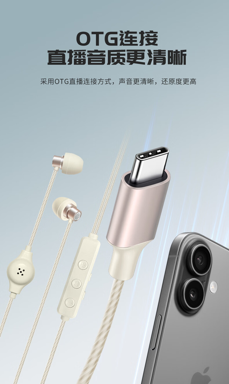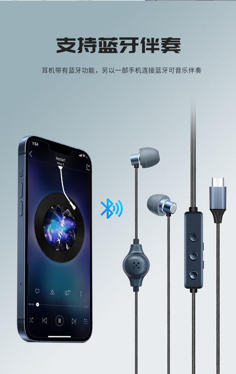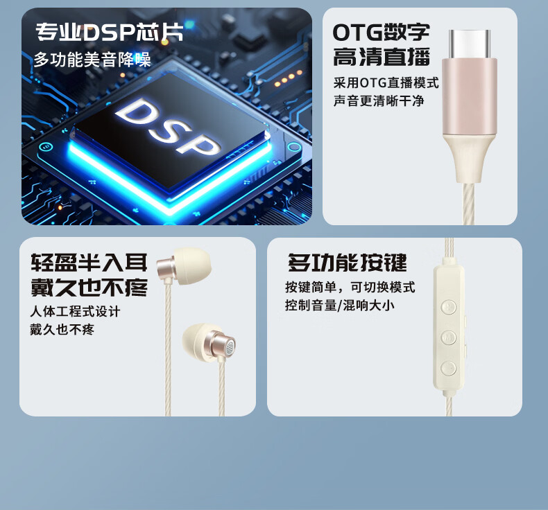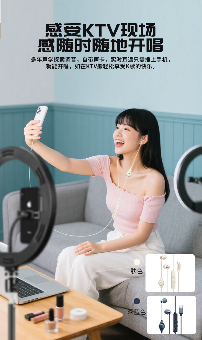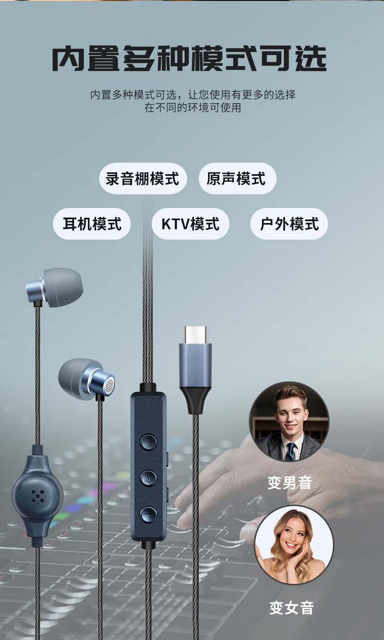 音奈尔(yinail)自带声卡耳机一体直播唱歌专用耳返有线入耳式耳麦内置多种模式适用于小米vivo华为OPPO苹果type-c 星雾蓝-直播声卡耳麦【入耳式】