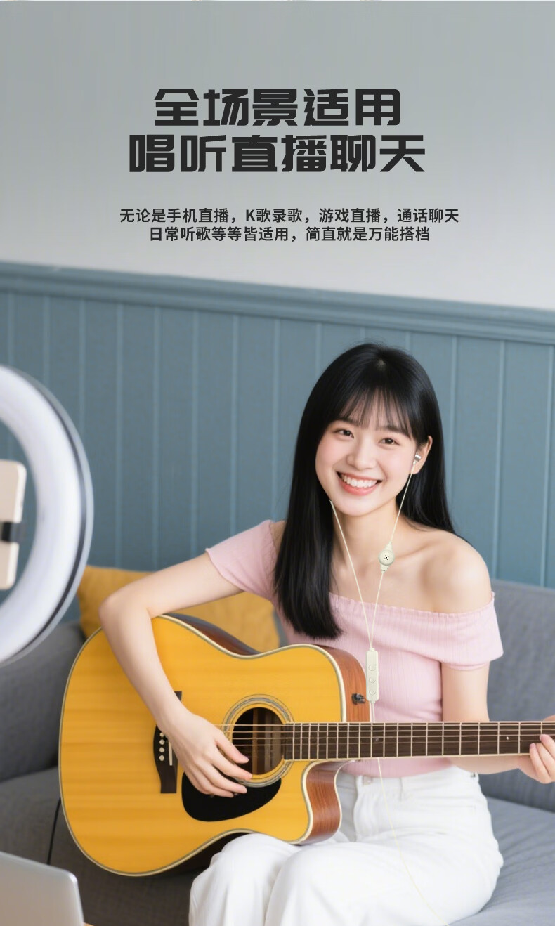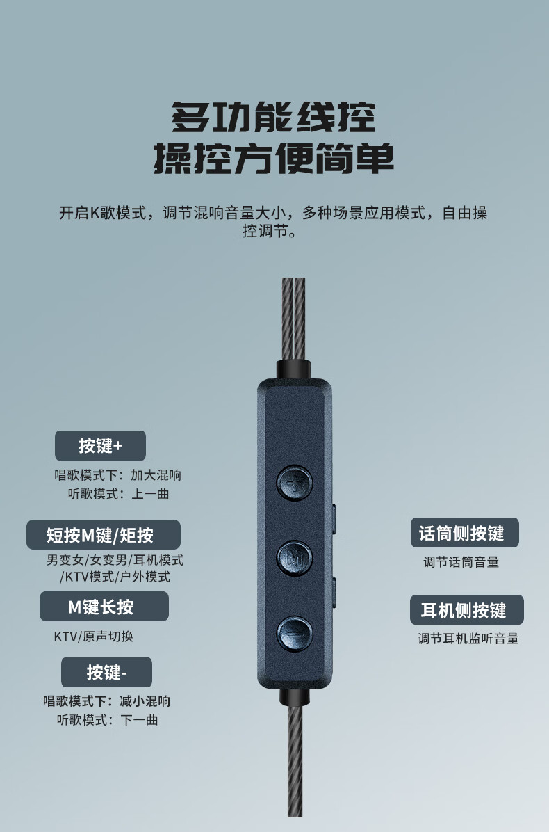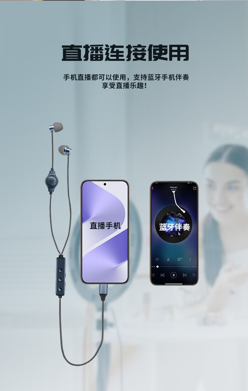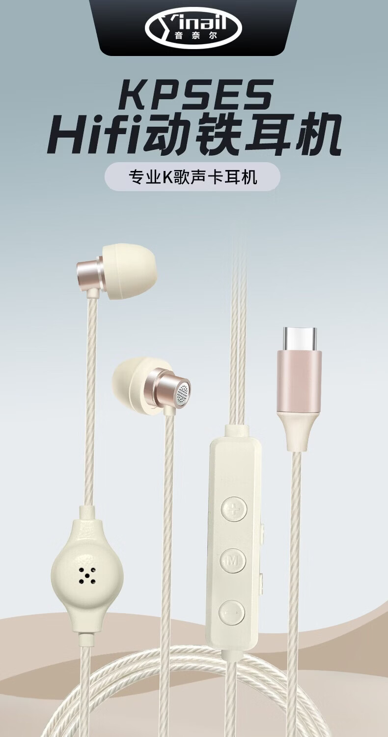 音奈尔(yinail)自带声卡耳机一体直播唱歌专用耳返有线入耳式耳麦内置多种模式适用于小米vivo华为OPPO苹果type-c 星雾蓝-直播声卡耳麦【入耳式】