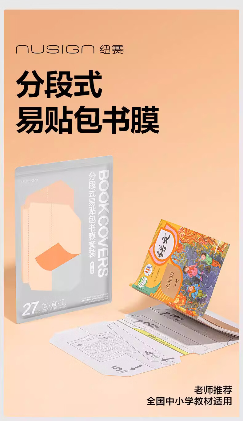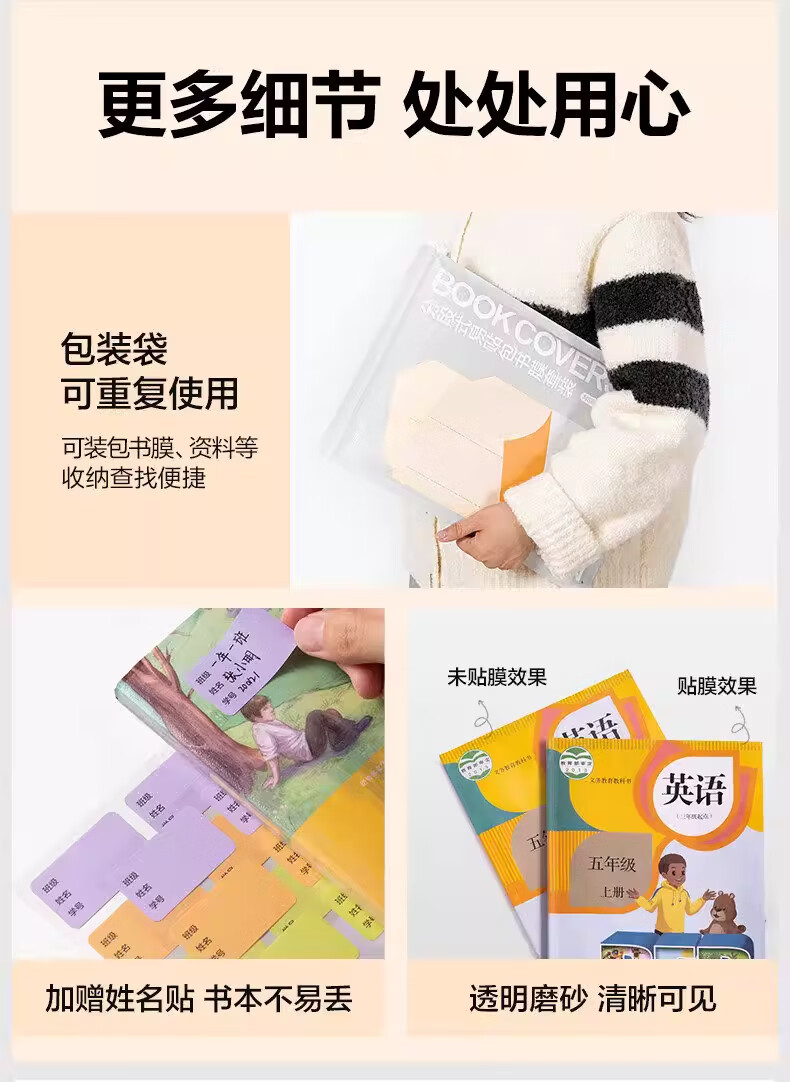 得力(deli)纽赛分段式包书皮自粘透明包书膜小学生专用16k书衣书皮保护套一二年级A4书套课本本子皮全套 A4大号10张/附姓名贴*12枚+课程表