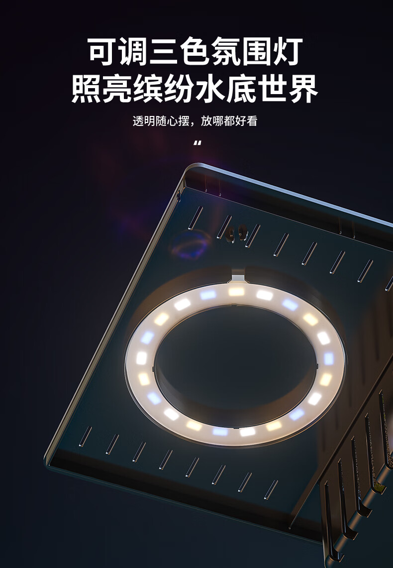 宠小岛桌面生态鱼缸小型客厅过滤制氧一体机新款家用乌龟金鱼缸 大号黑色【豪华造景款】