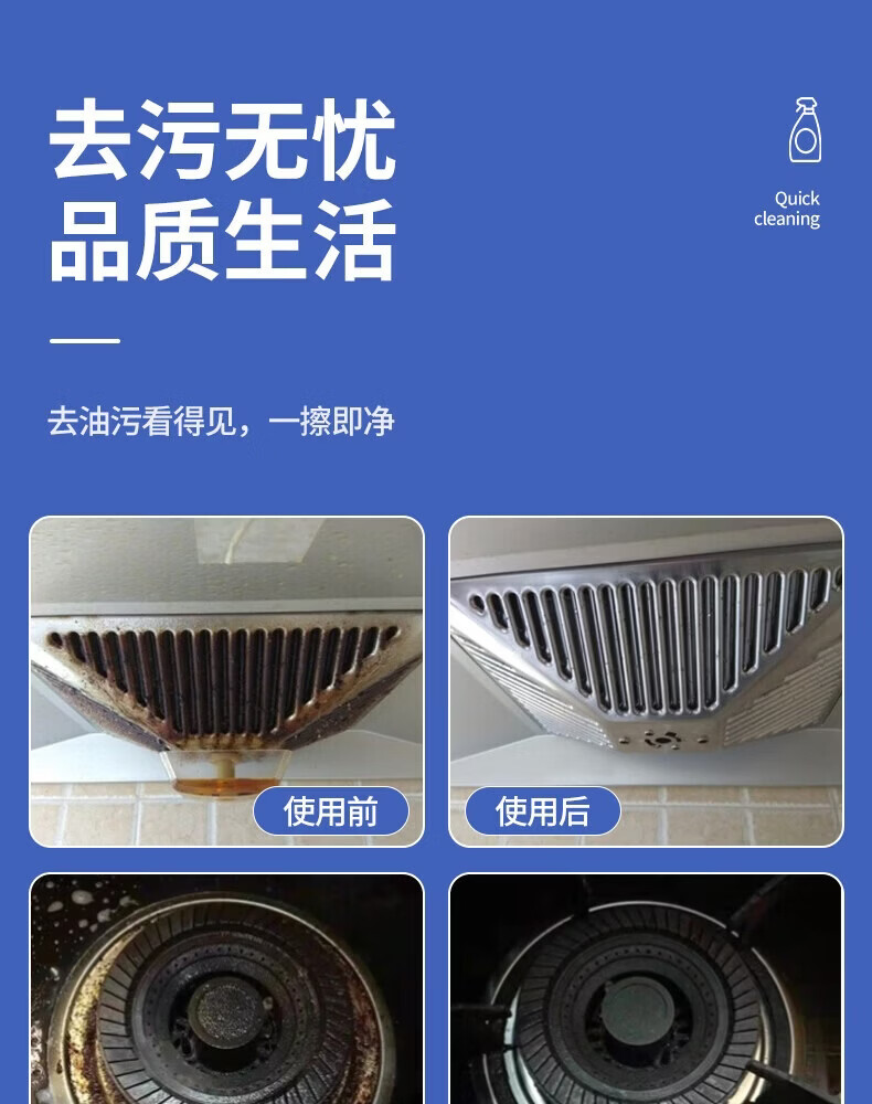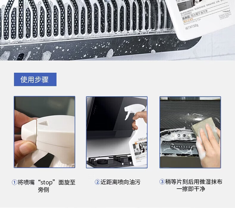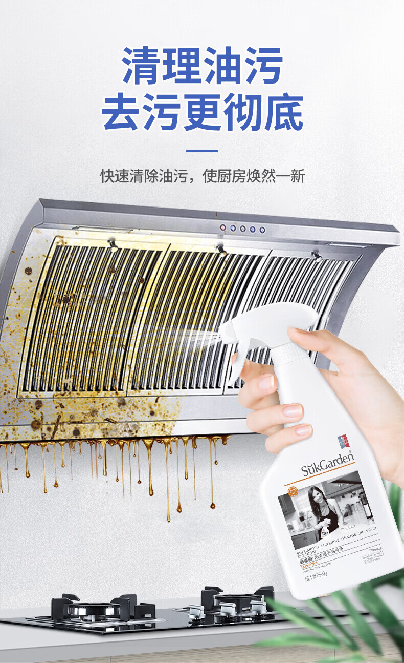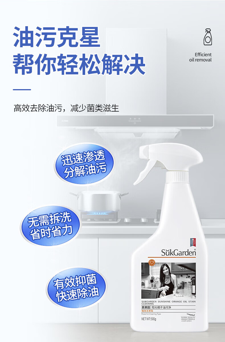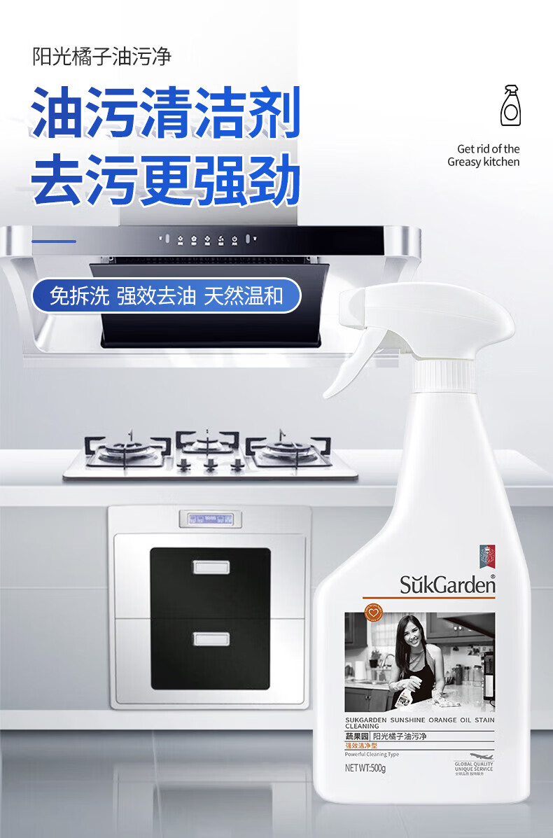 蔬果园厨房油污清洁剂 油污净清洁剂去重油污抑菌留香抽烟机灶台清洗剂 油污净500g*3+喷头