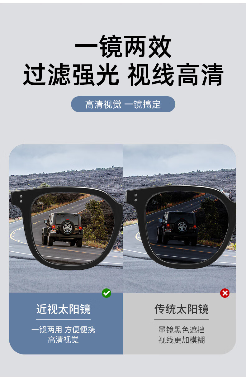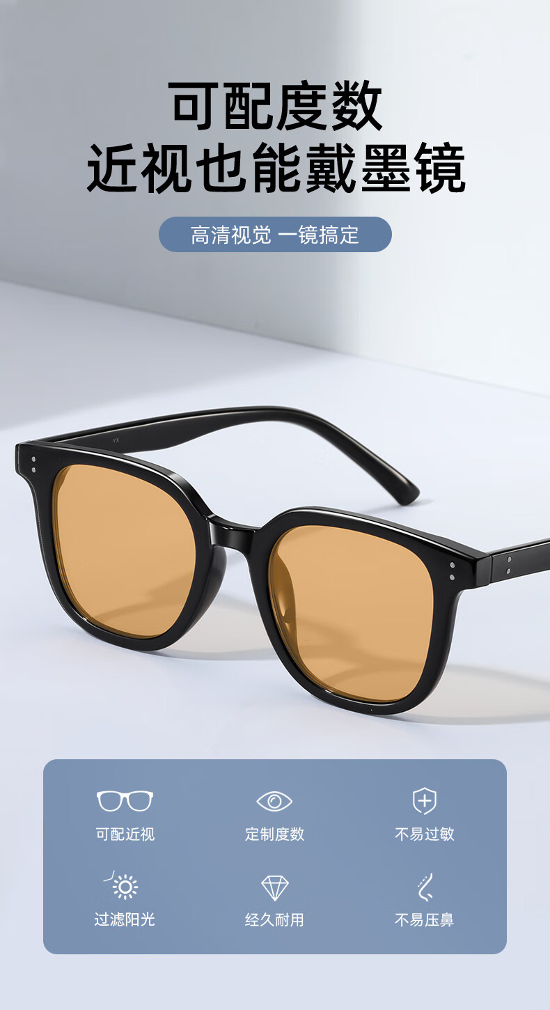 colore.in茶色近视镜墨镜男女款可配带度数偏光太阳镜户外防晒开车驾驶眼镜 黑框 配1.56染色茶片【0-400度】
