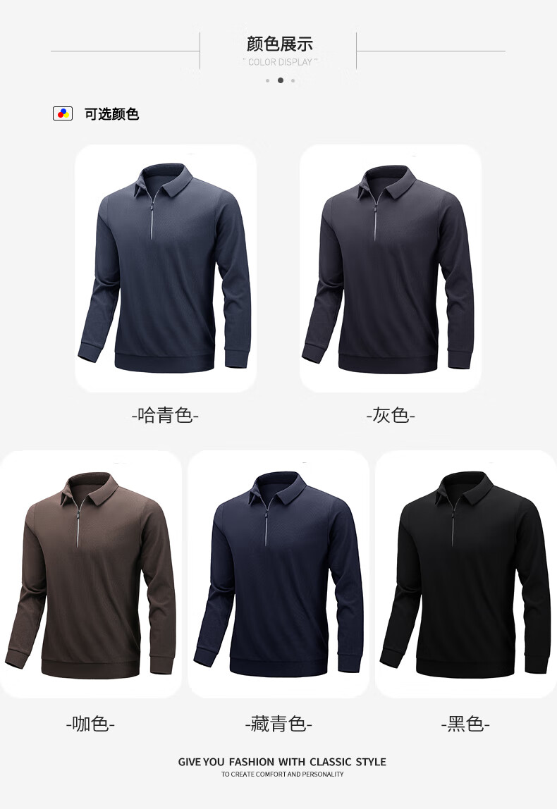 罗蒙(ROMON)长袖t恤男士2025秋季新款商务休闲翻领纯色打底衫男装上衣 天蓝 XL