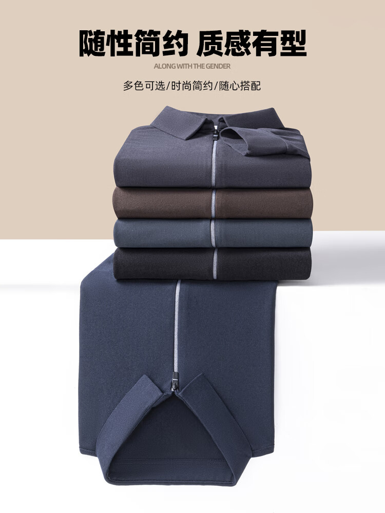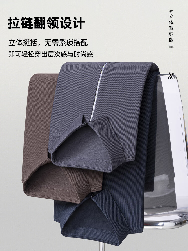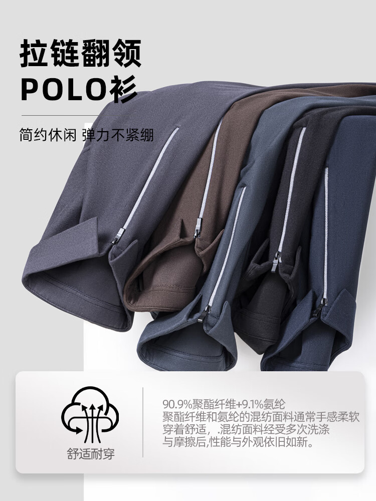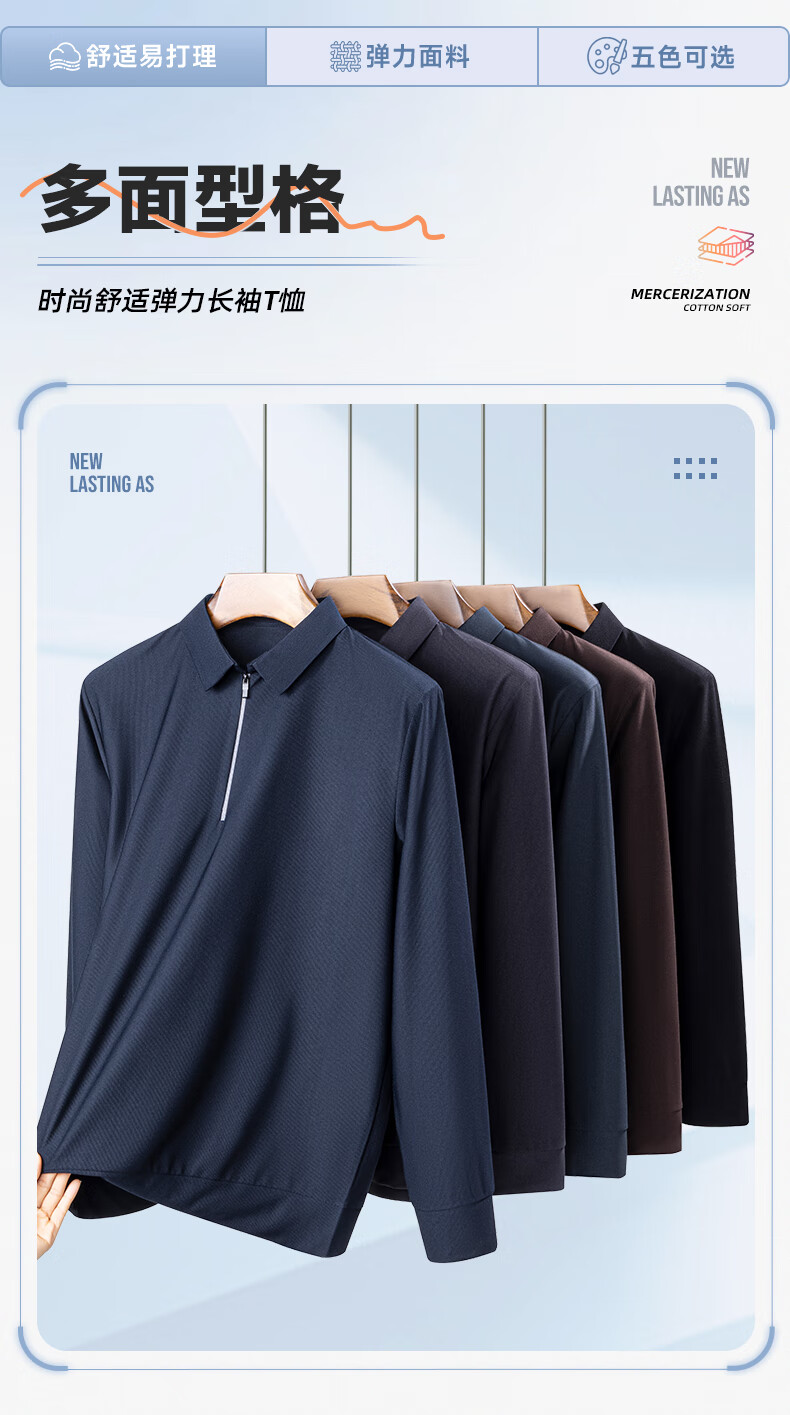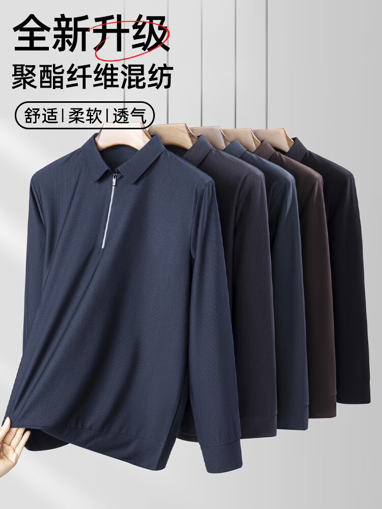 SHANSHAN杉杉长袖T恤男春秋商务简约百搭休闲纯色翻领POLO衫男士弹力上衣 咖色 2XL /185【建议170-200斤】