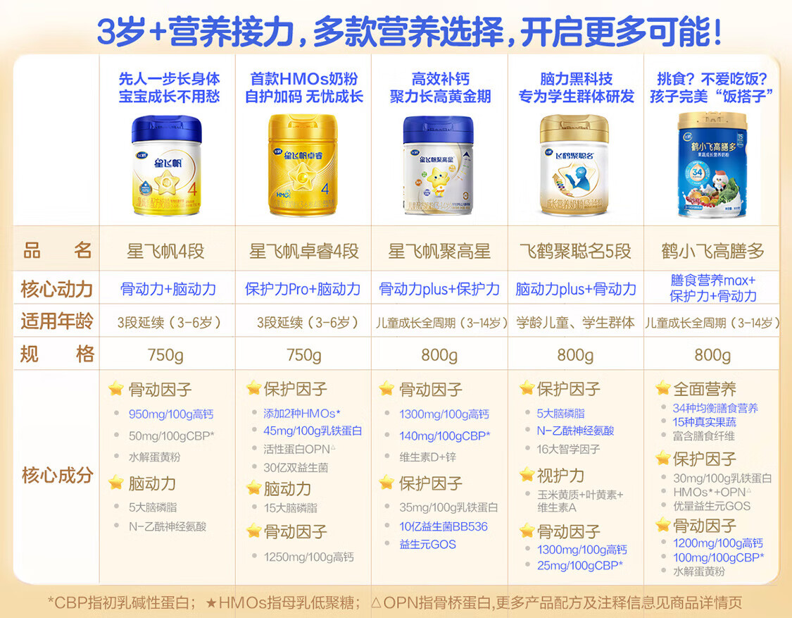 飞鹤星飞帆聚高星 乳铁蛋白高钙CBP(3-14岁)儿童奶粉800g*6 限定礼盒