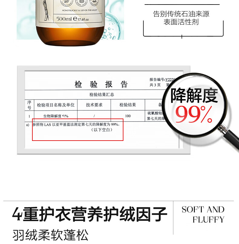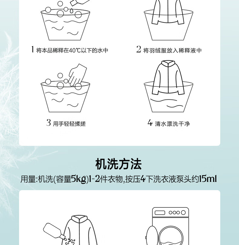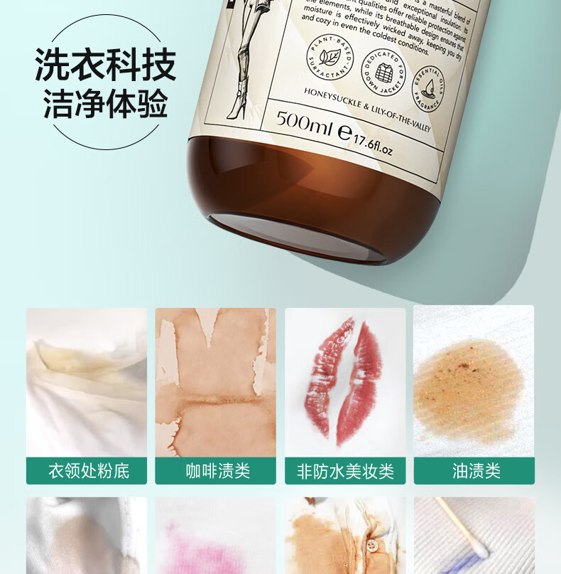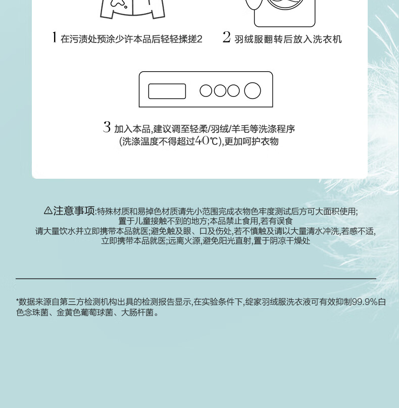 绽家羽绒服洗衣液洗涤剂专用清洗剂衣物去油柔顺去污蓬松 淡香型 500ml*1瓶
