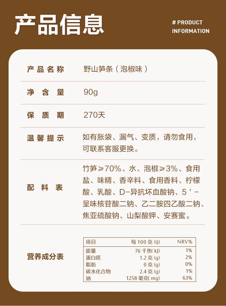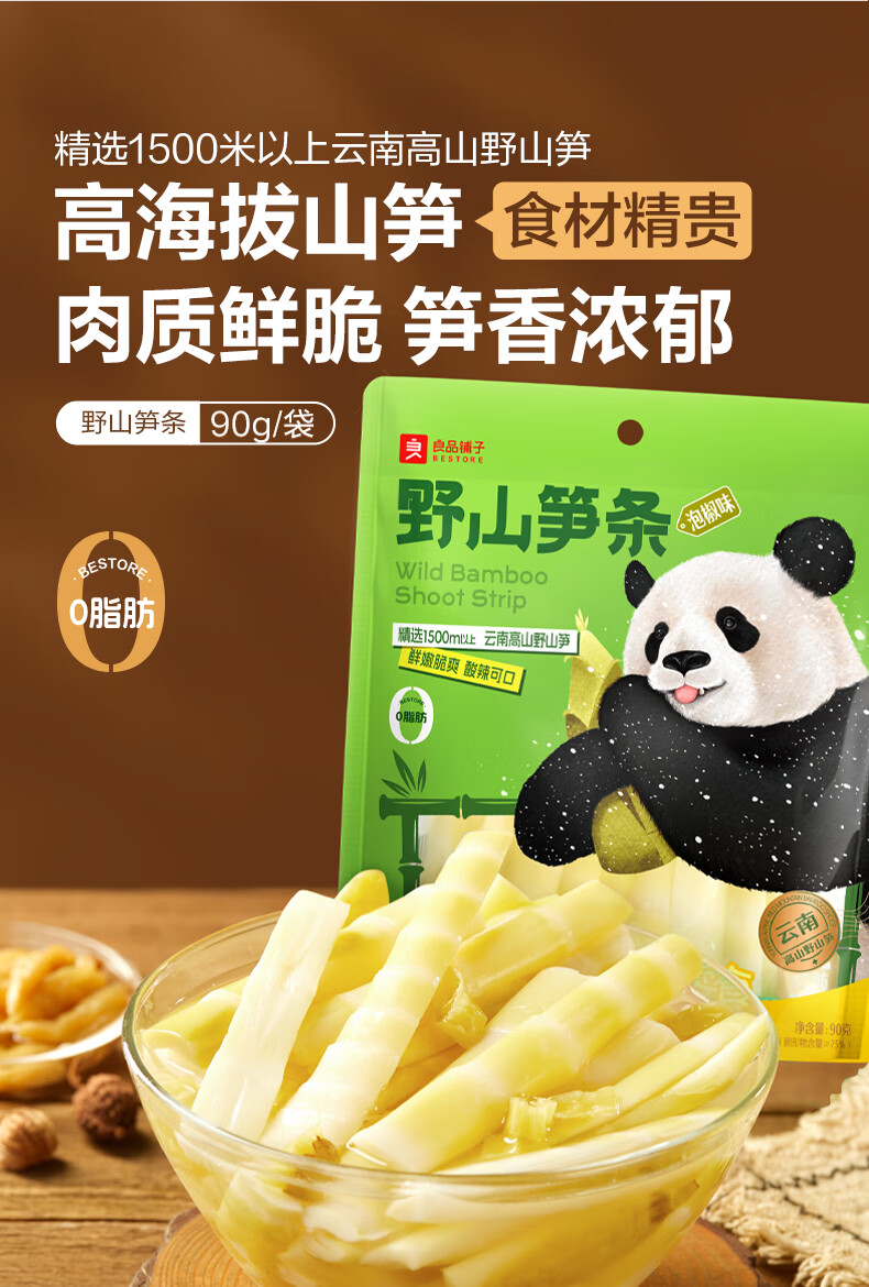 良品铺子野山笋条泡椒味90g泡椒脆笋 风味素食嫩笋条辣味解馋零食小吃