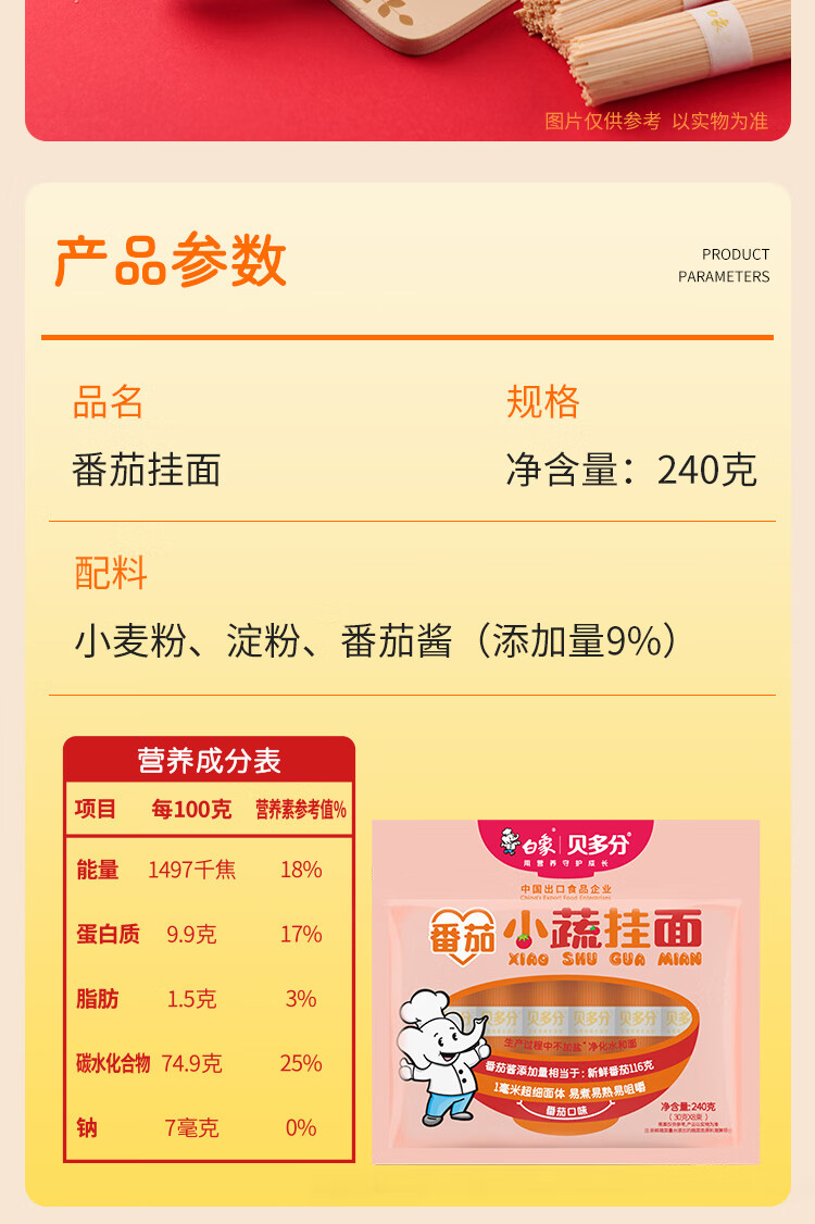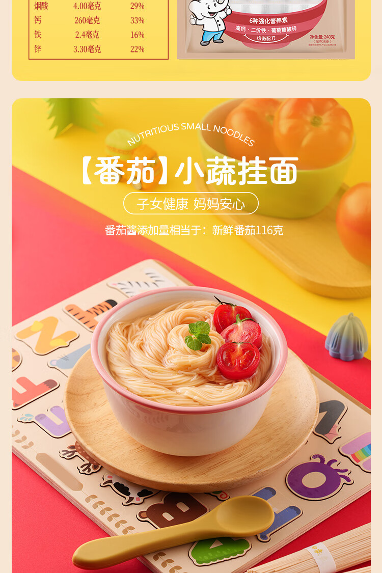 白象 挂面 小面条营养蔬菜易消化番茄菠菜胡萝卜高钙口味240g*4包